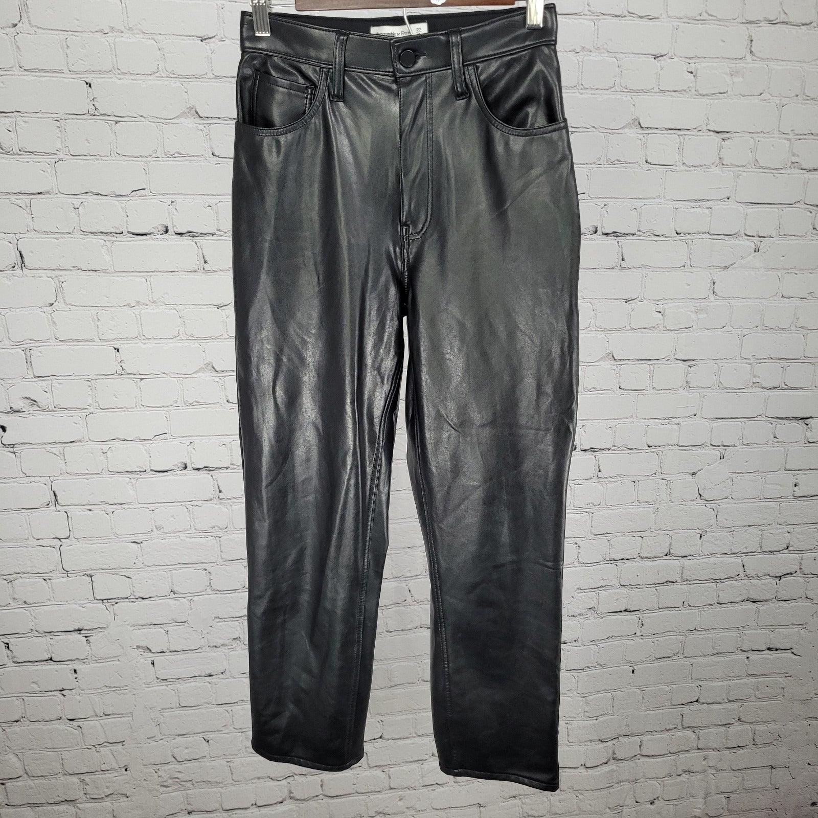 Abercrombie & Fitch Faux Leather Ankle Straight Ultra High Rise Pants 4 (25x26)