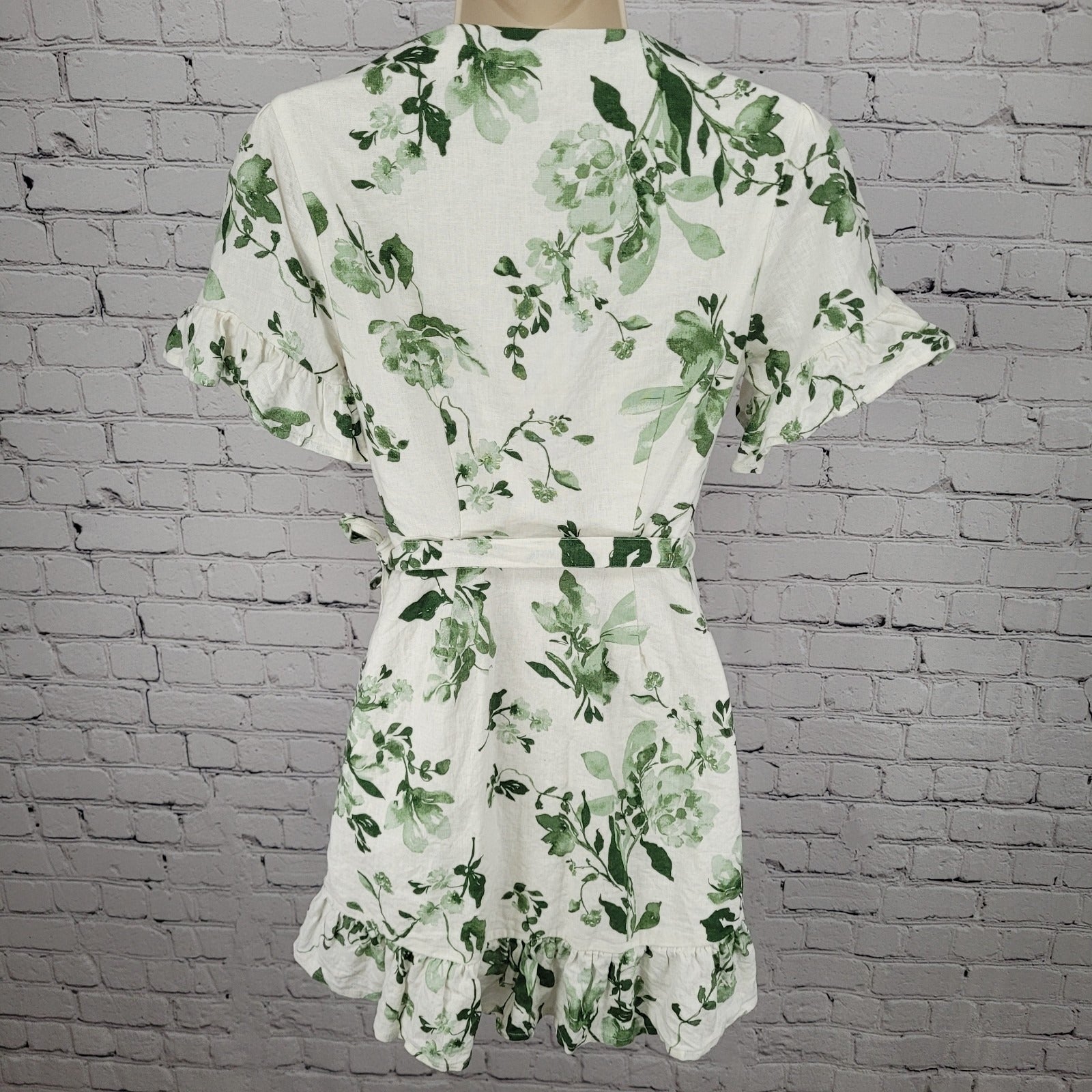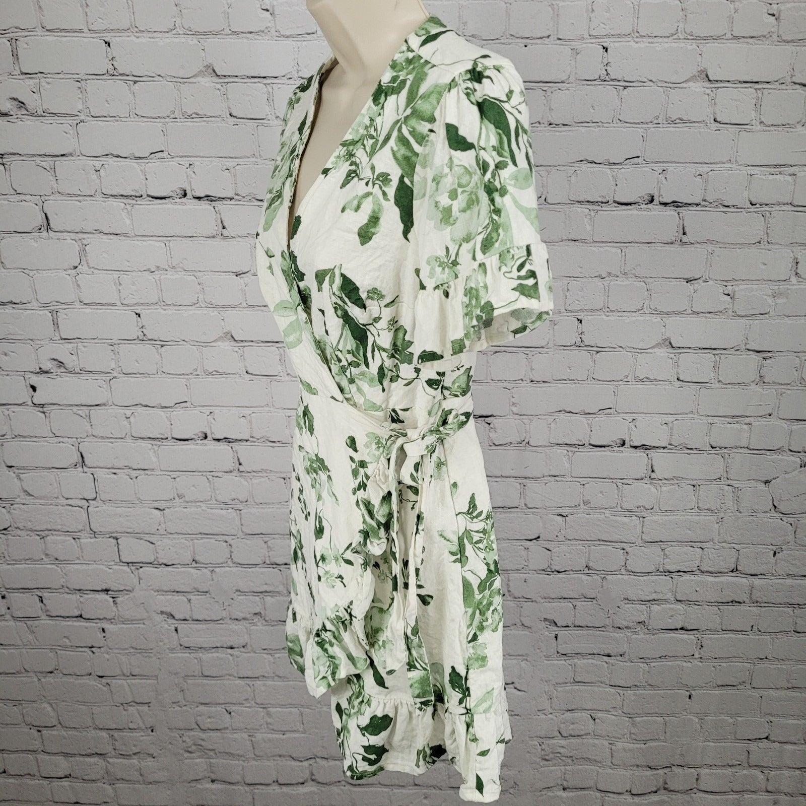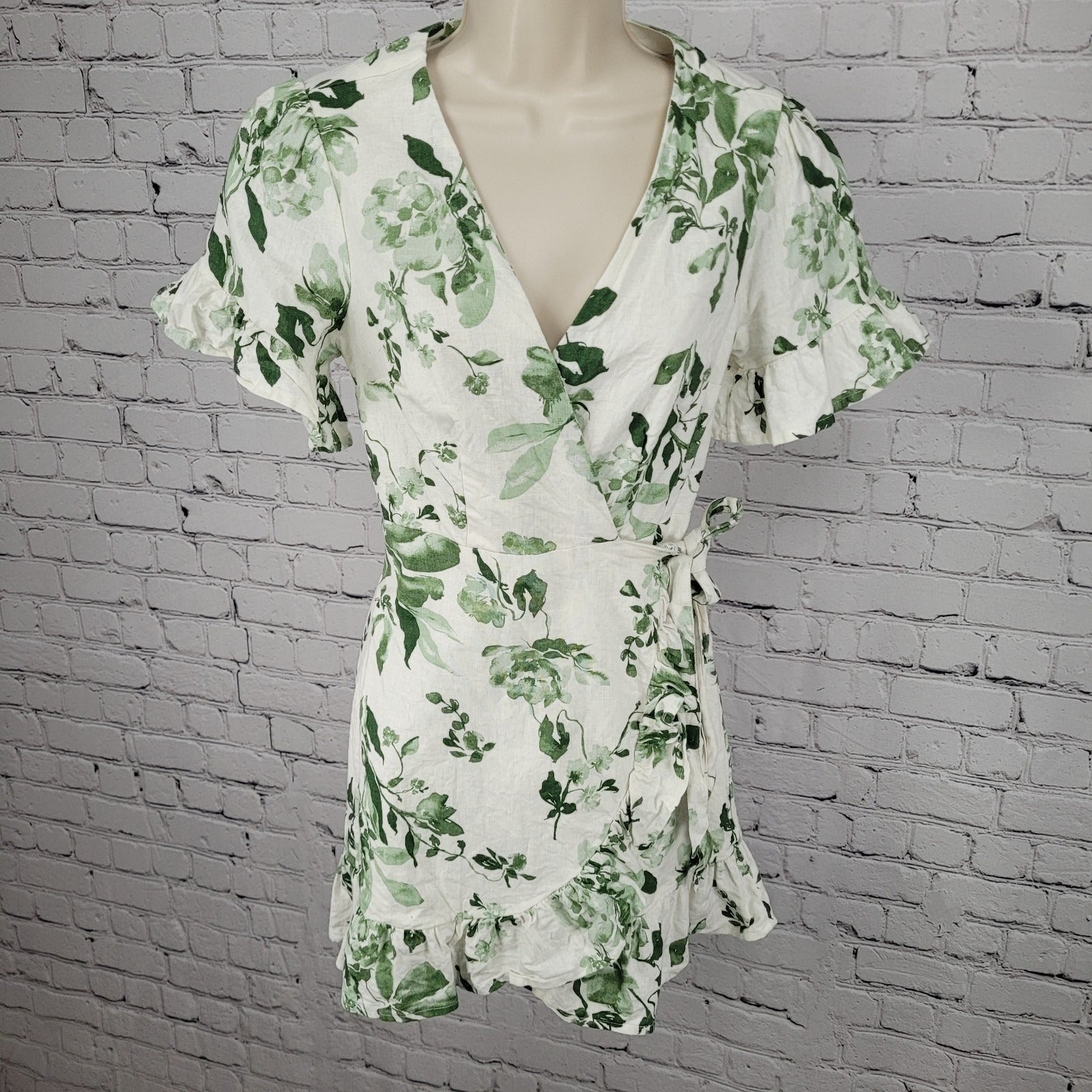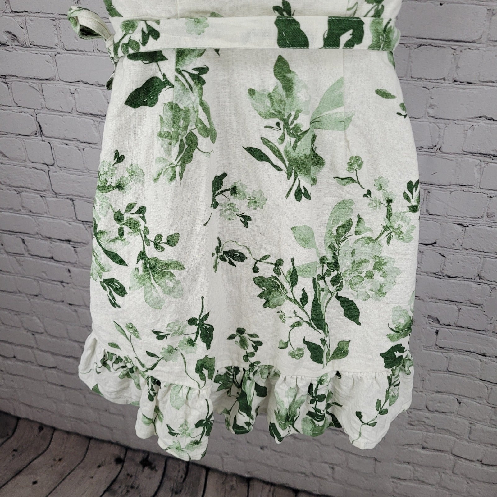 Abercrombie & Fitch White & Green Linen Cotton Floral Wrap Tie Dress Size XSP
