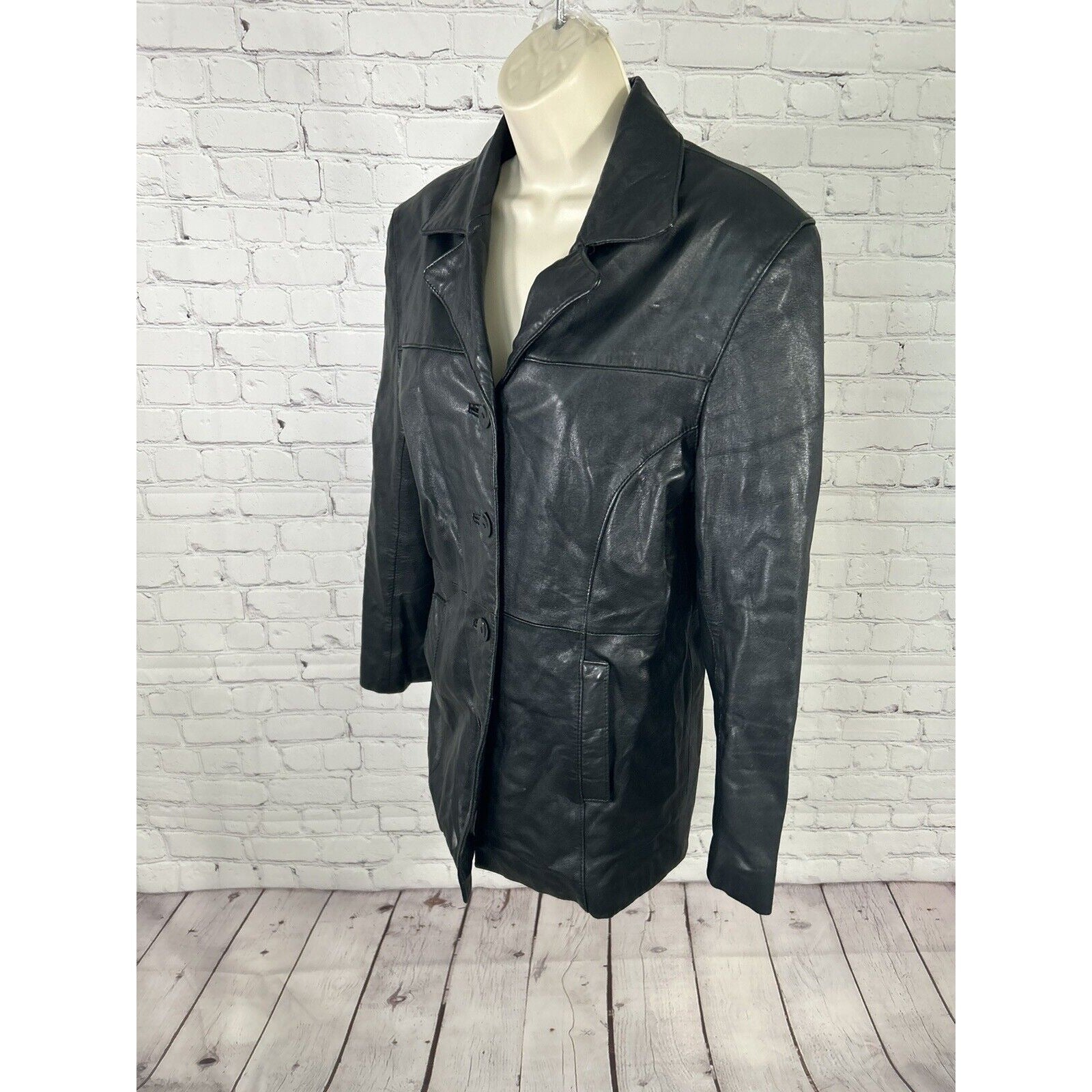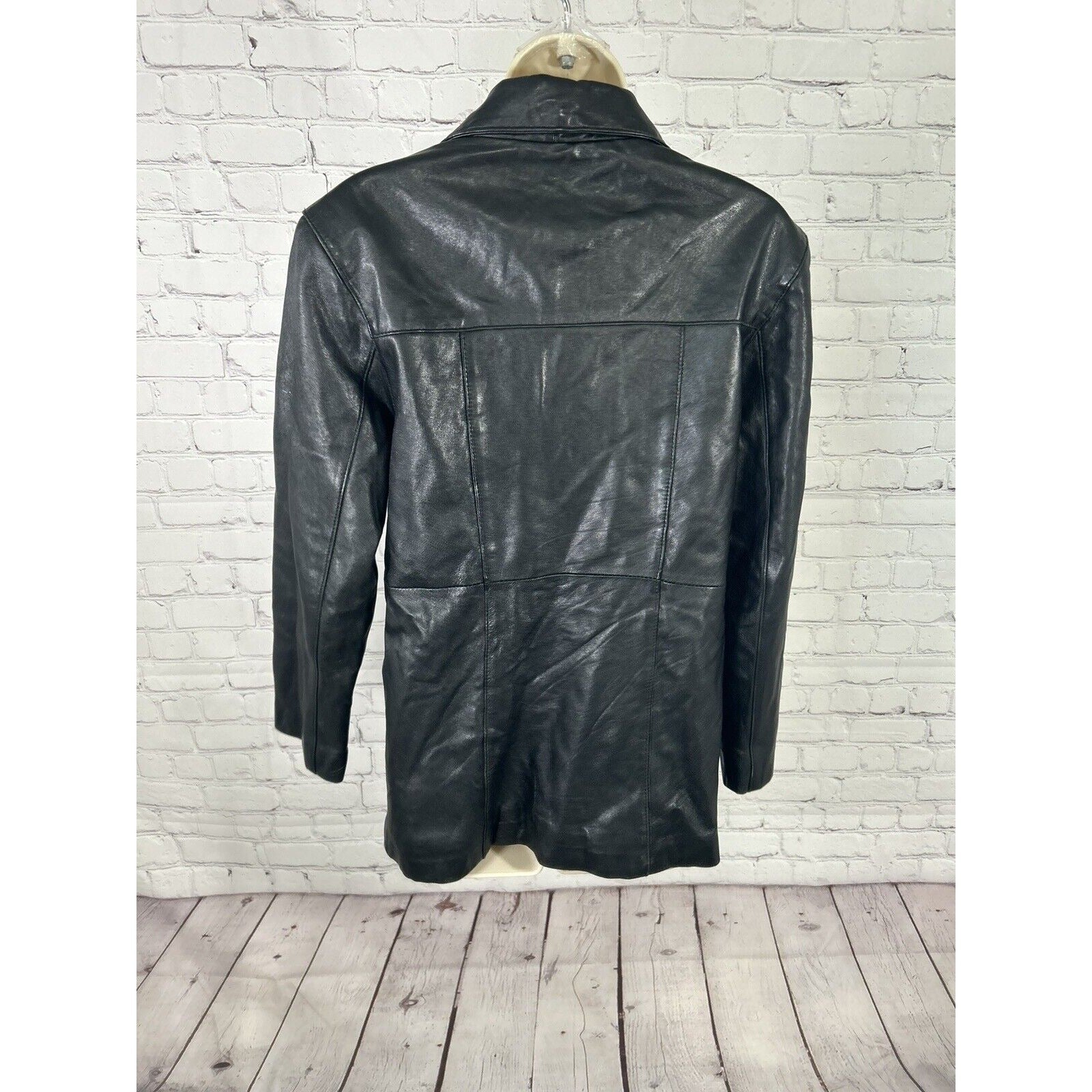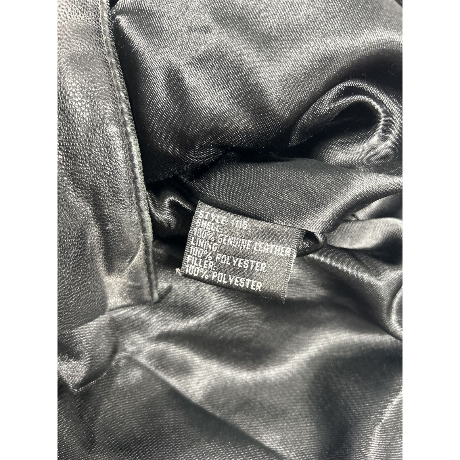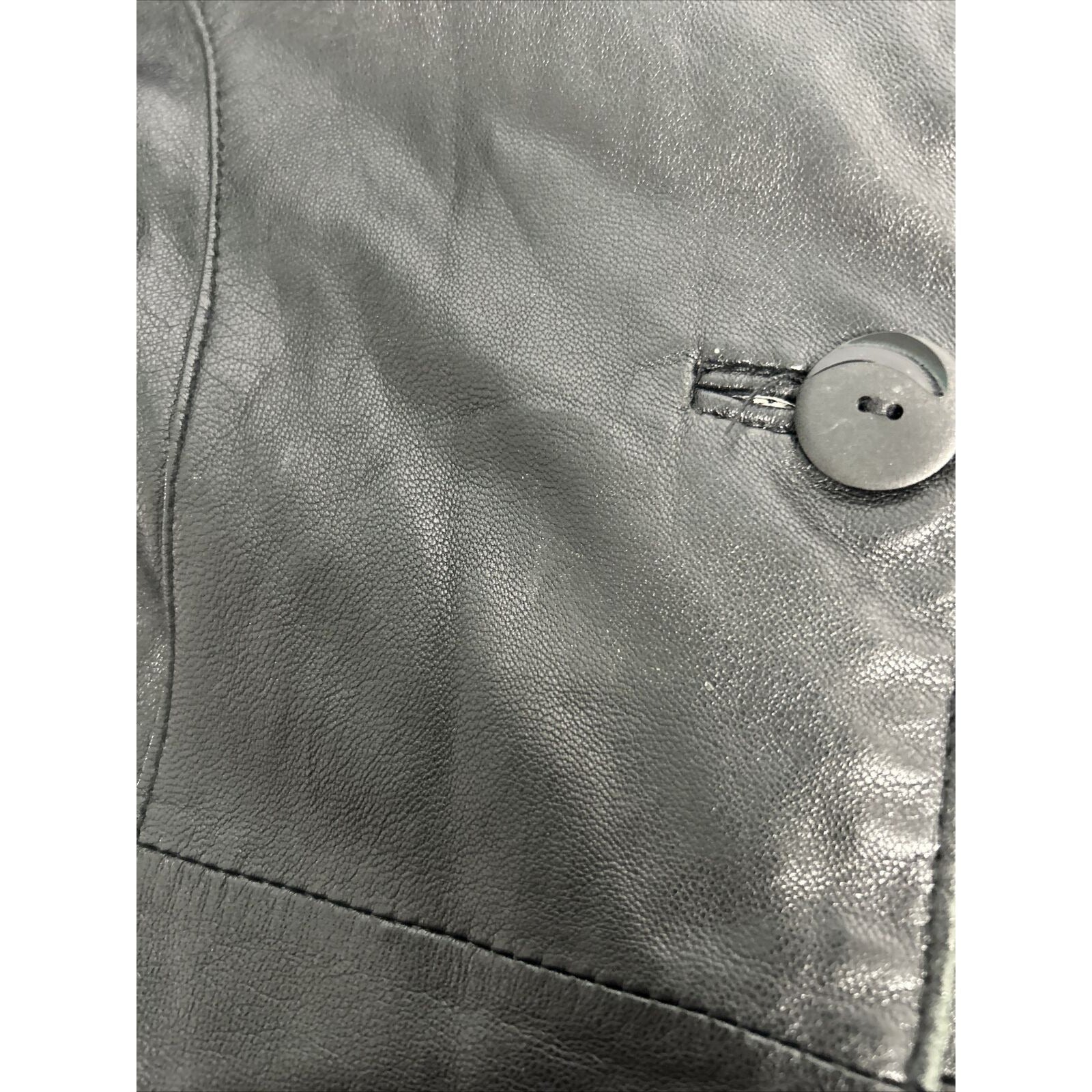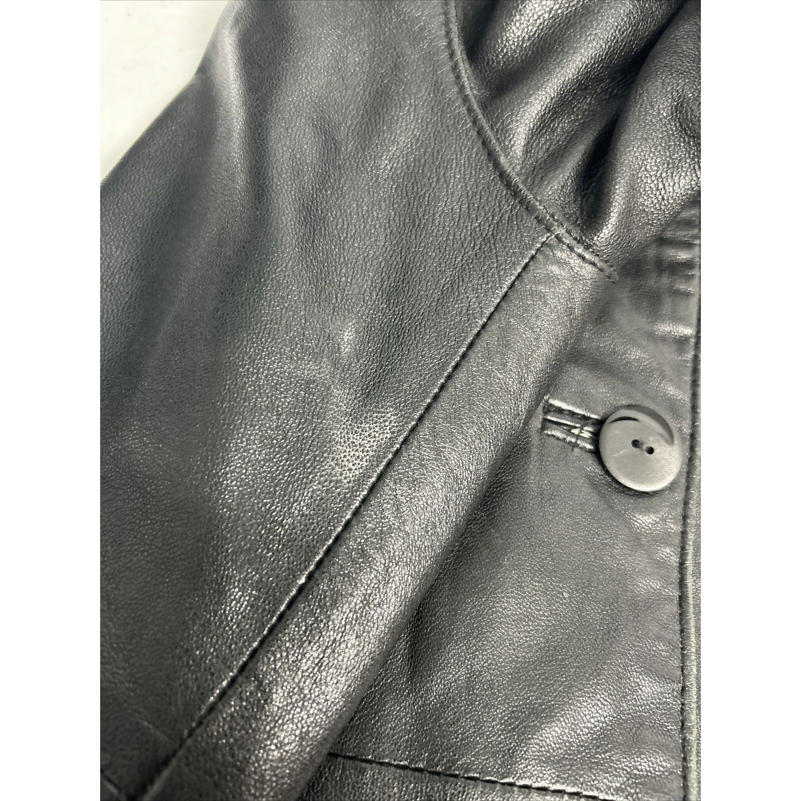 Accents By Comint Solid Black Button Up Genuine Leather Biker Jacket Women’s M