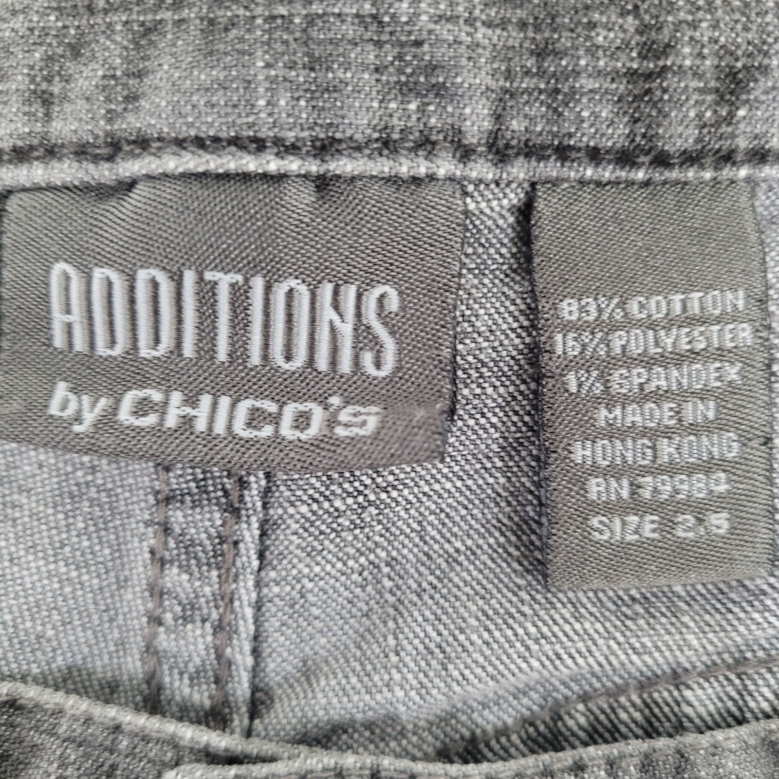 The Additions by Chico's Grey Wide Leg High Rise Crop Jeans in size 2.5 (US 14) are a stylish and versatile addition to any woman's wardrobe. Made from a comfortable cotton-spandex blend, these medium wash denim jeans feature a relaxed fit with a high rise waist and a wide-leg style. The cropped length adds a trendy touch, perfect for the summer, fall, or spring seasons. With a classic 5-pocket design and easy-care instructions. Perfect for everyday wear or dressed up for a special occasion.