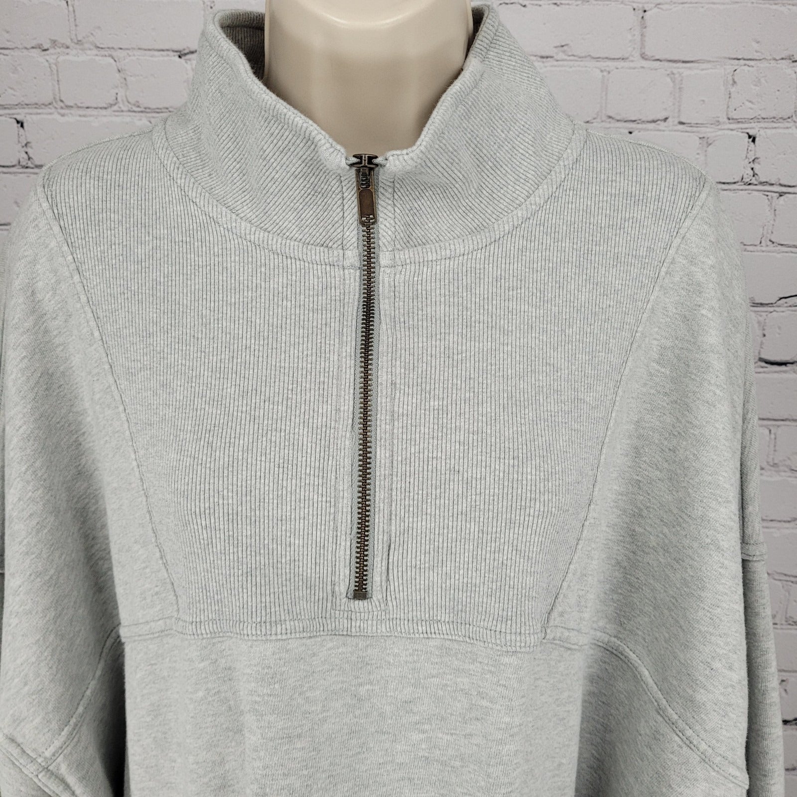Aerie Heather Grey 100% Cotton 1/4 Zip Pullover Pockets Oversized Sweatshirt XXL