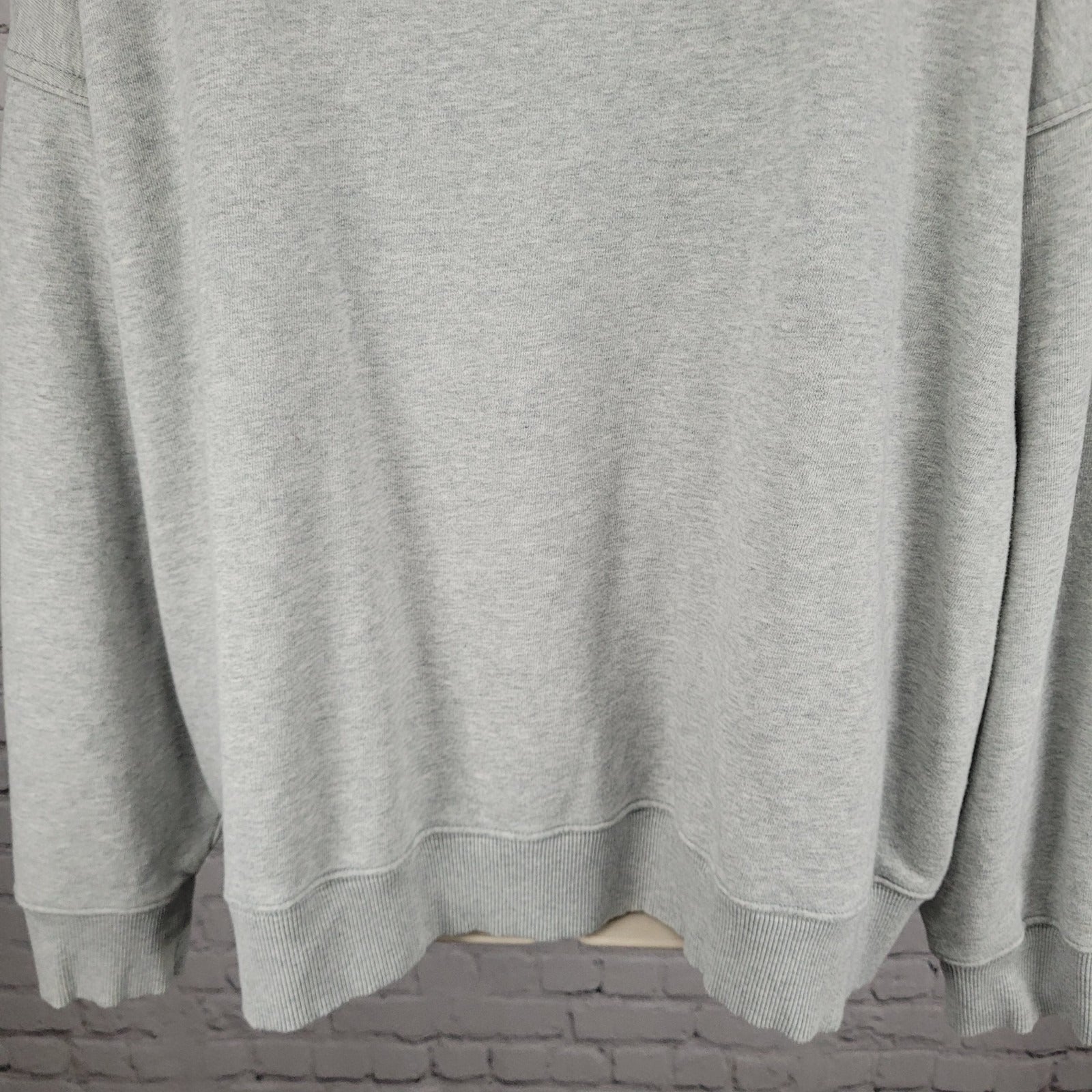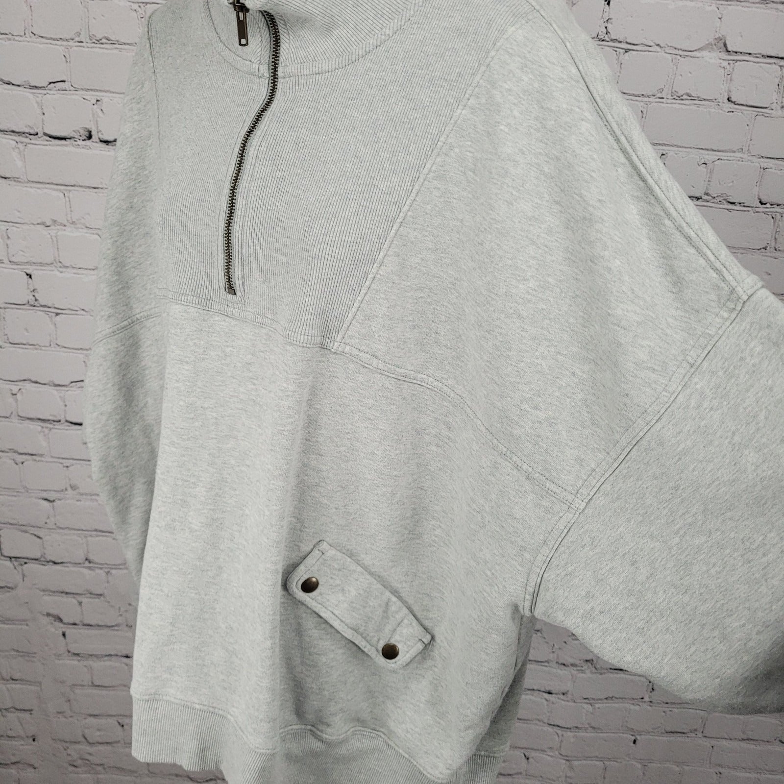 The Aerie Heather Grey 100% Cotton 1/4 Zip Pullover Sweatshirt in XXL is a relaxed fit, oversized sweatshirt perfect for travel, activewear, or casual occasions. Made from soft and cozy 100% cotton, this sweatshirt features a solid gray color with a mock neck and long dolman sleeves. The 1/4 zip closure adds a trendy touch, while the pockets provide functionality. Easy to care for with machine washable instructions, this classic style sweatshirt is a versatile addition.