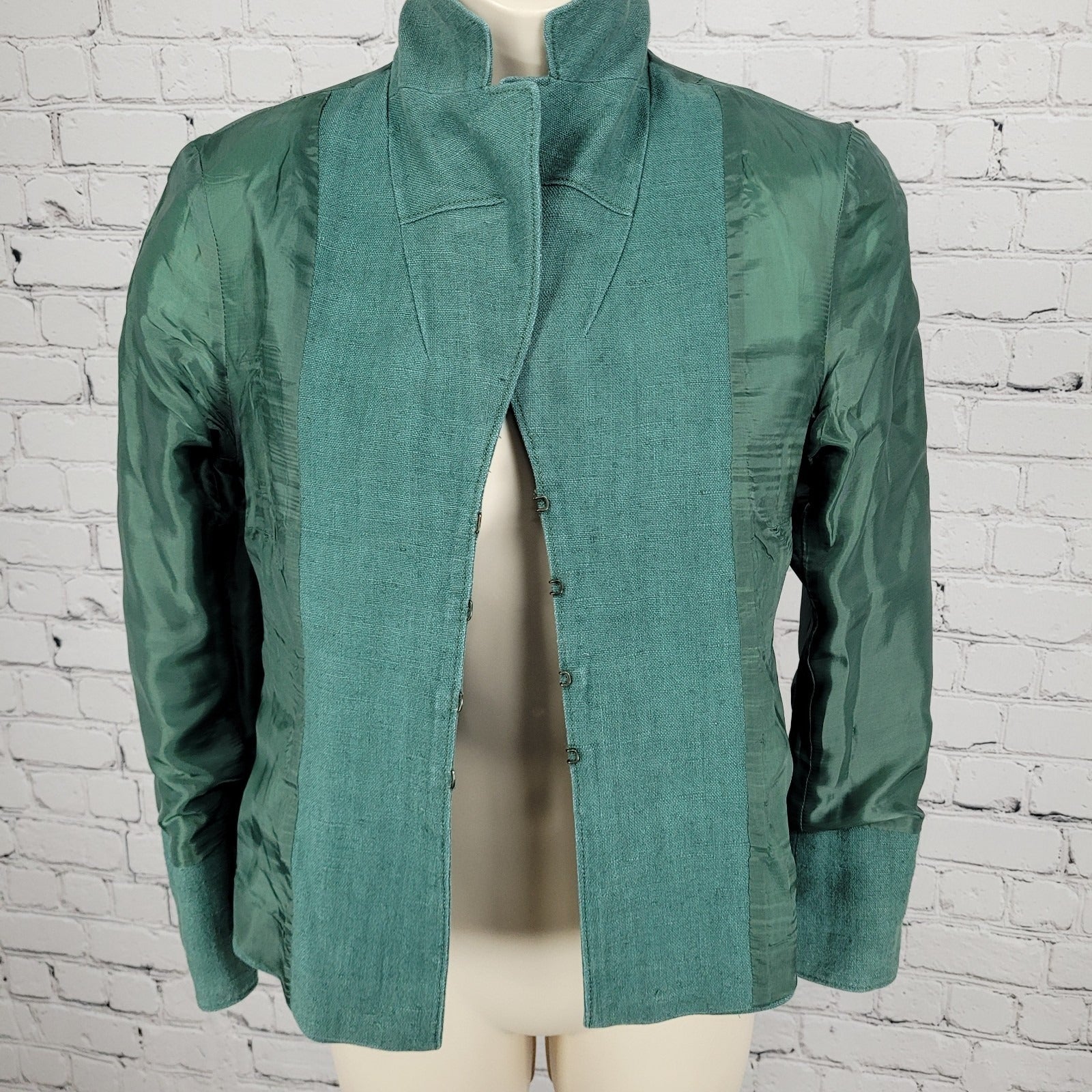 Akris Punto Green 100% Linen Hook Loop Closure Notch Suit Jacket Size 4