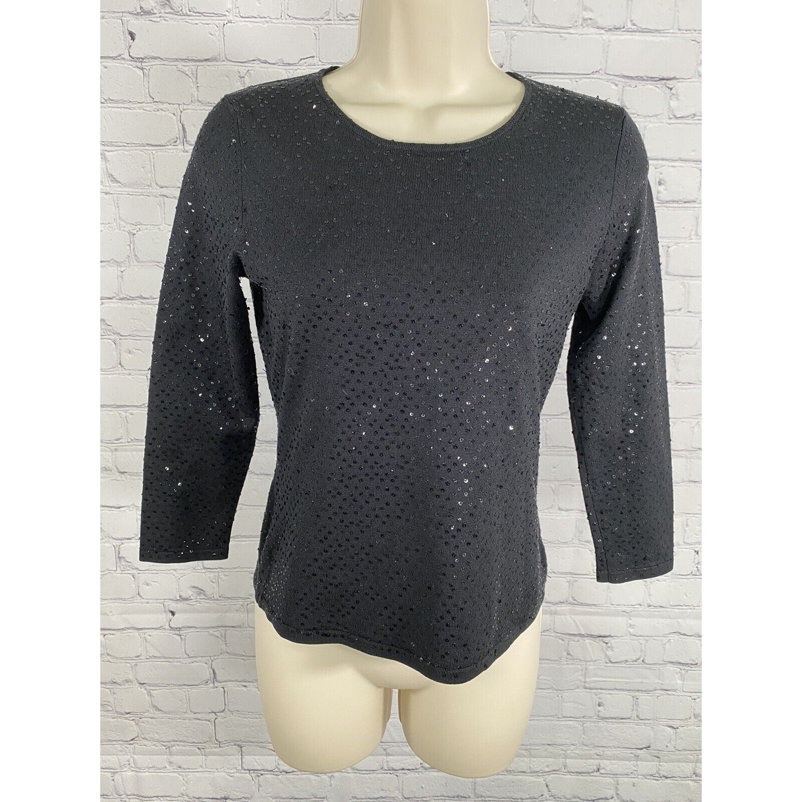 Ann Taylor 3/4 Sleeve Pullover Sequined Black Shirt Sweater Blouse XS.