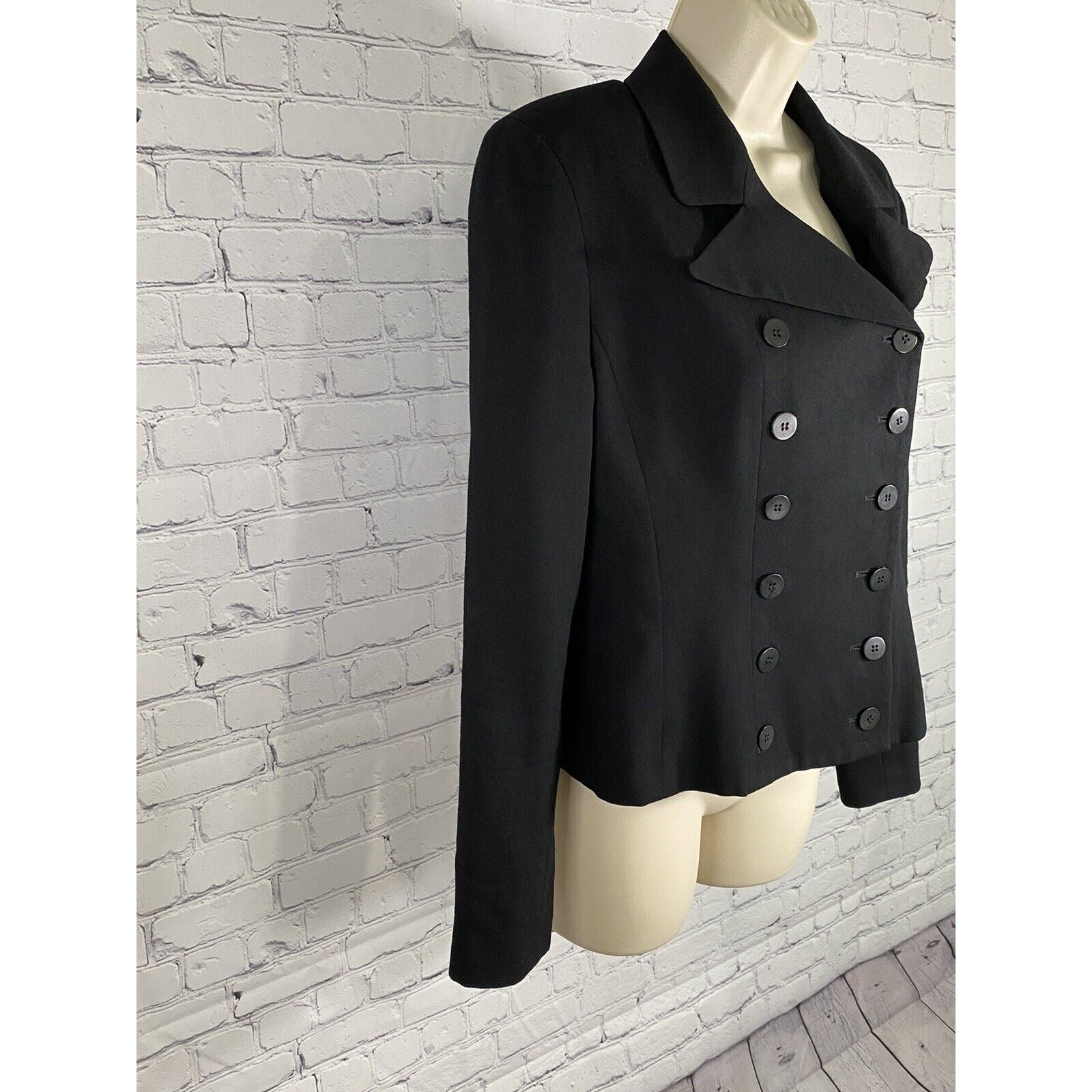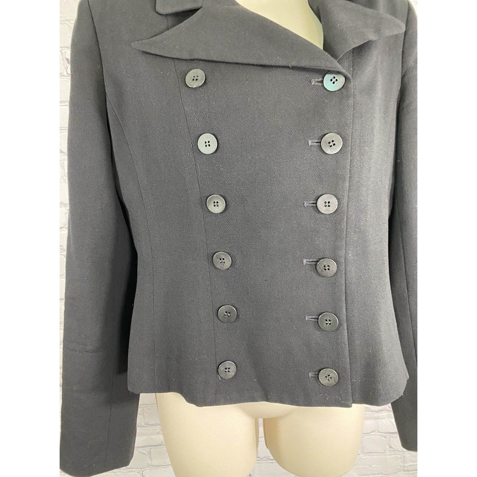 Ann Taylor Black 100% Wool Double Breasted Peak Lapel Blazer Jacket Womens 4.