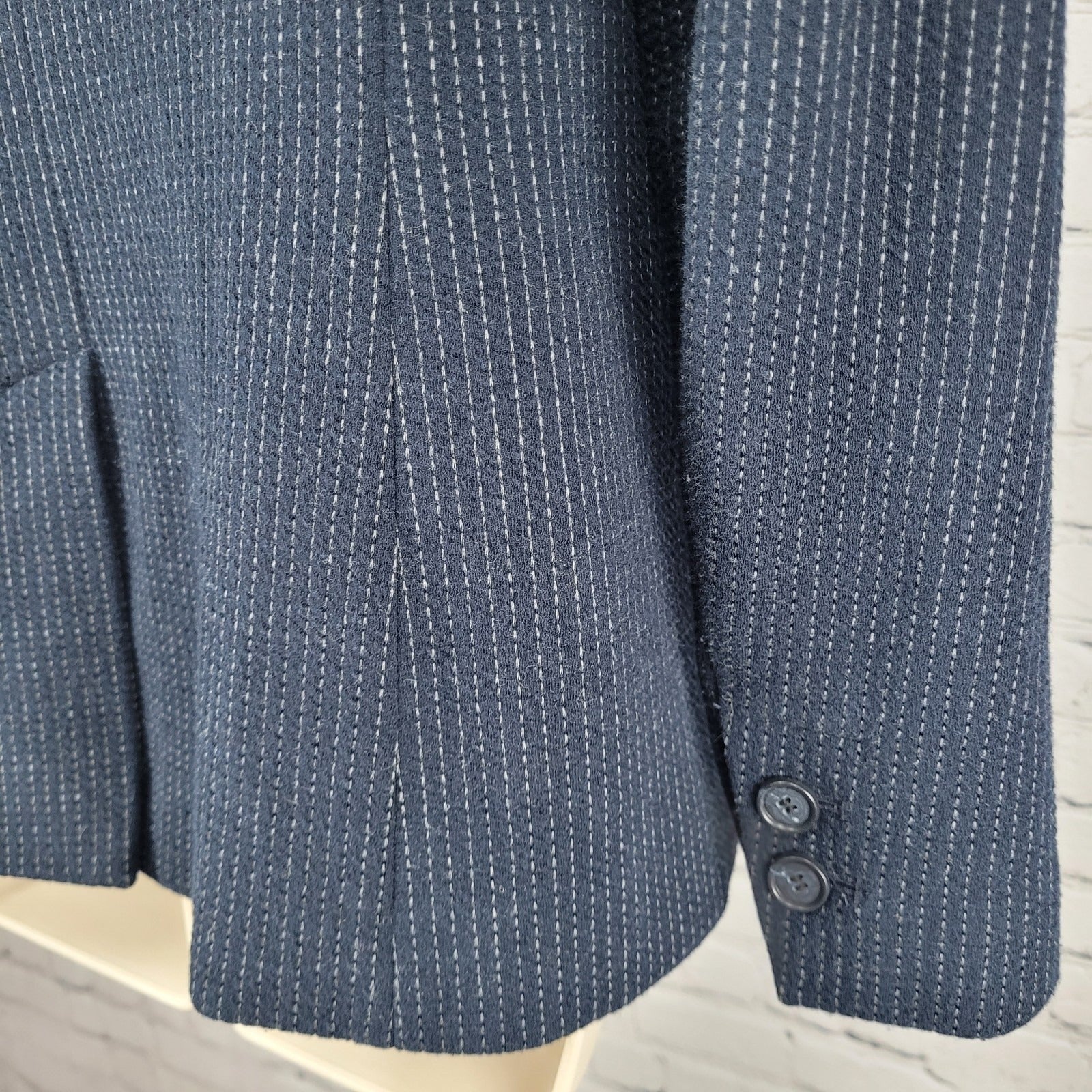 The Ann Taylor Loft Navy Pinstriped 1 Button Vented Stretch Blazer Jacket in size 0 is a versatile piece suitable for various occasions such as travel, weddings, parties, casual outings, workwear, and business meetings. This stylish blazer features a classic notch lapel, two-button sleeve detail, and a flattering mid-length cut. Made from a comfortable cotton blend material with added stretch for flexibility, this blazer is lined with 100% polyester for a polished finish. Machine washable for easy care.