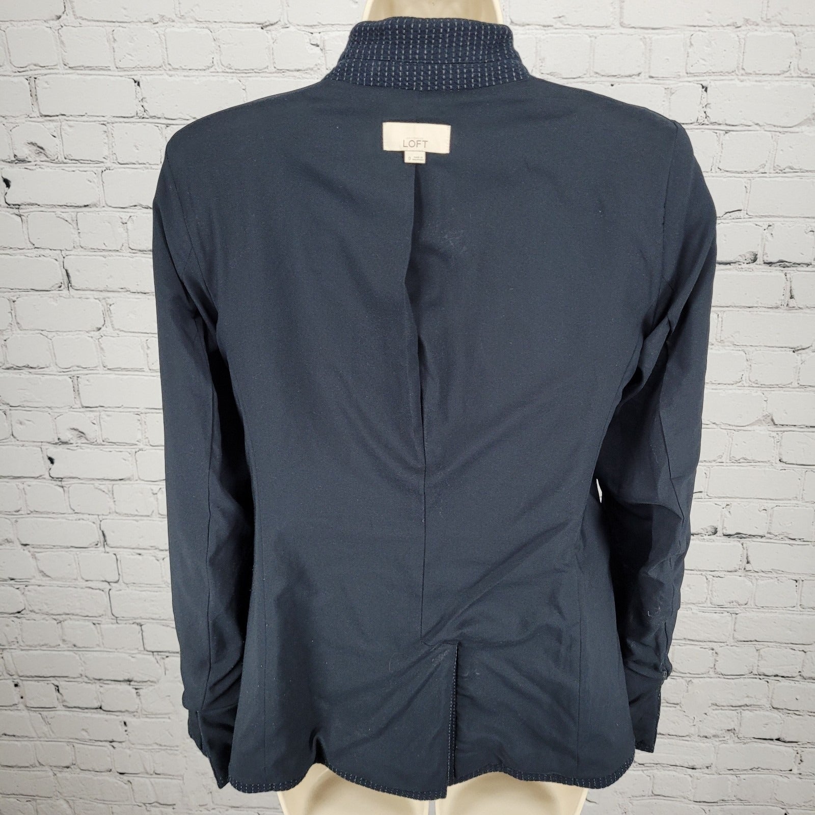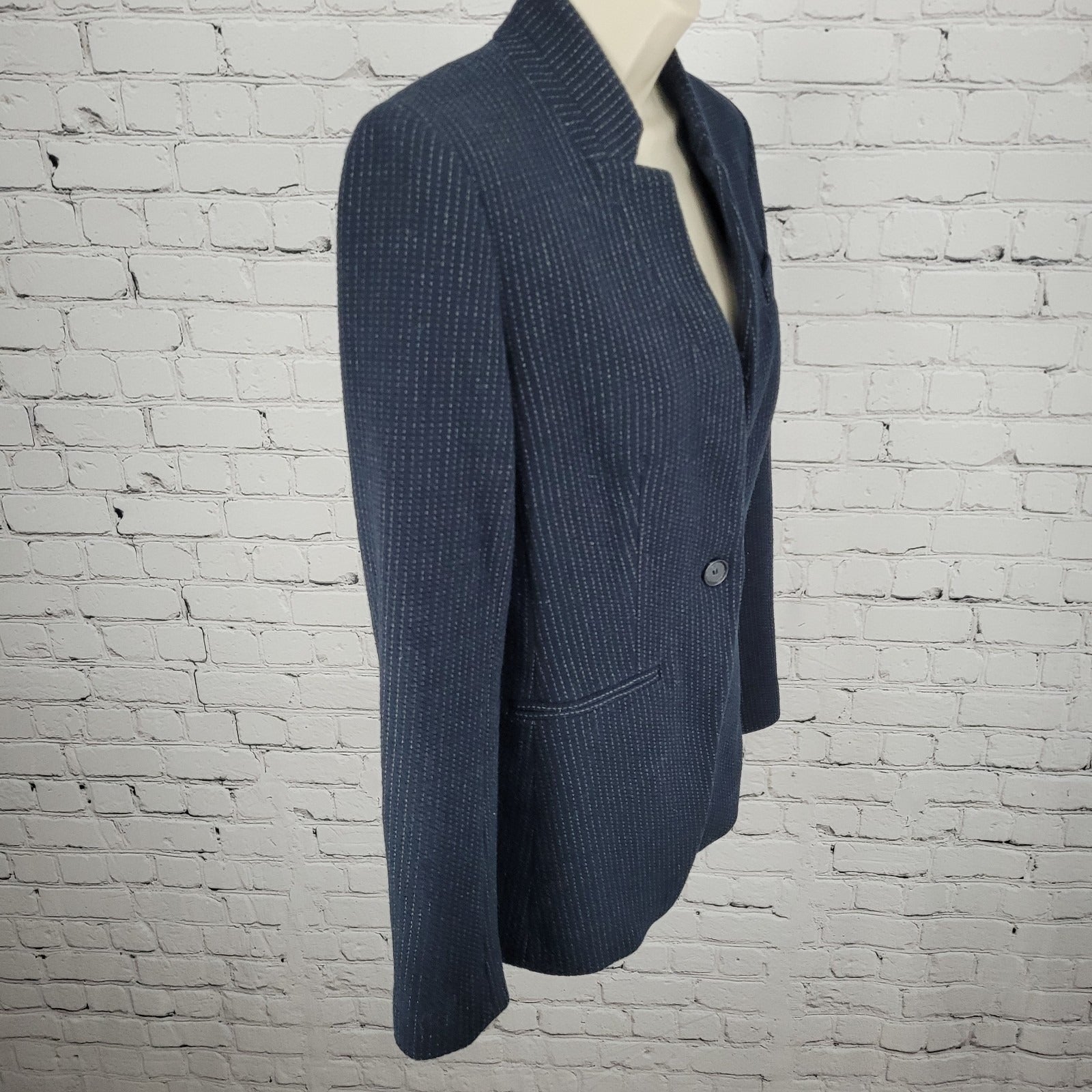 Ann Taylor Loft Navy Pinstriped 1 Button Vented Stretch Blazer Jacket Size 0