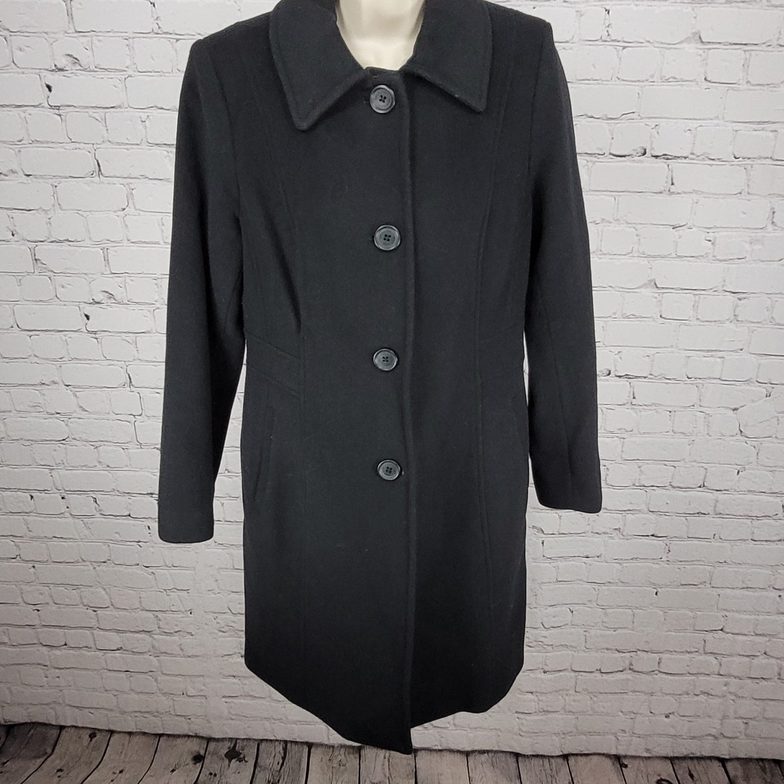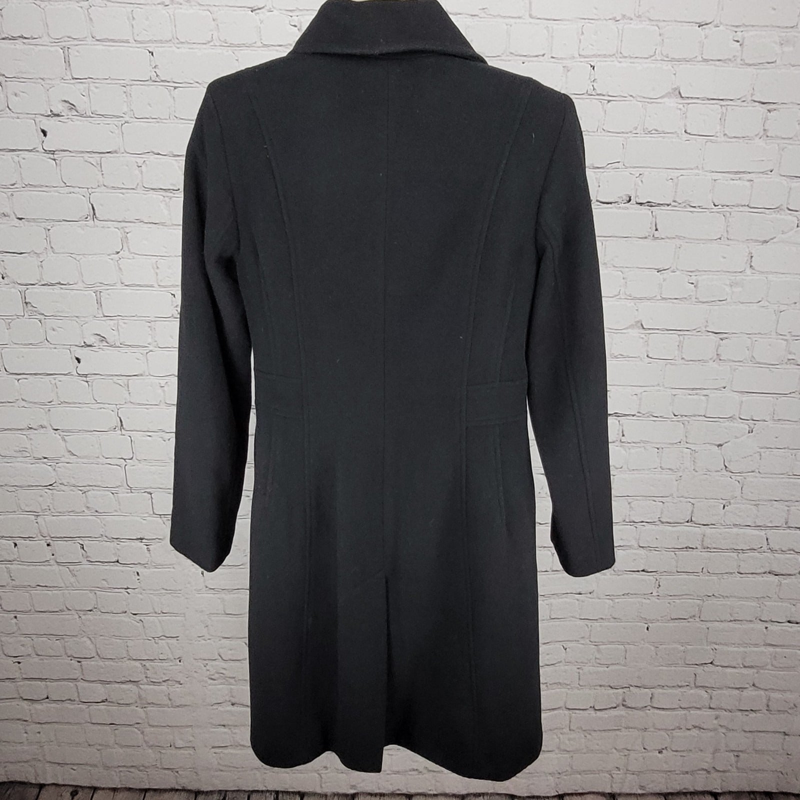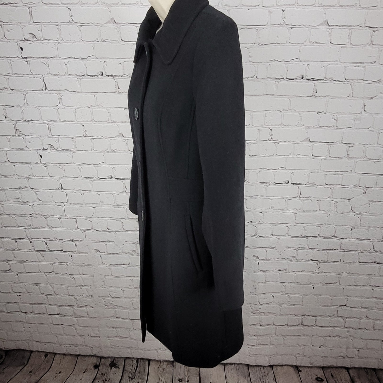Anne Klein Black Wool Cashmere Blend Buttoned Lined Pockets Over Coat Size 6