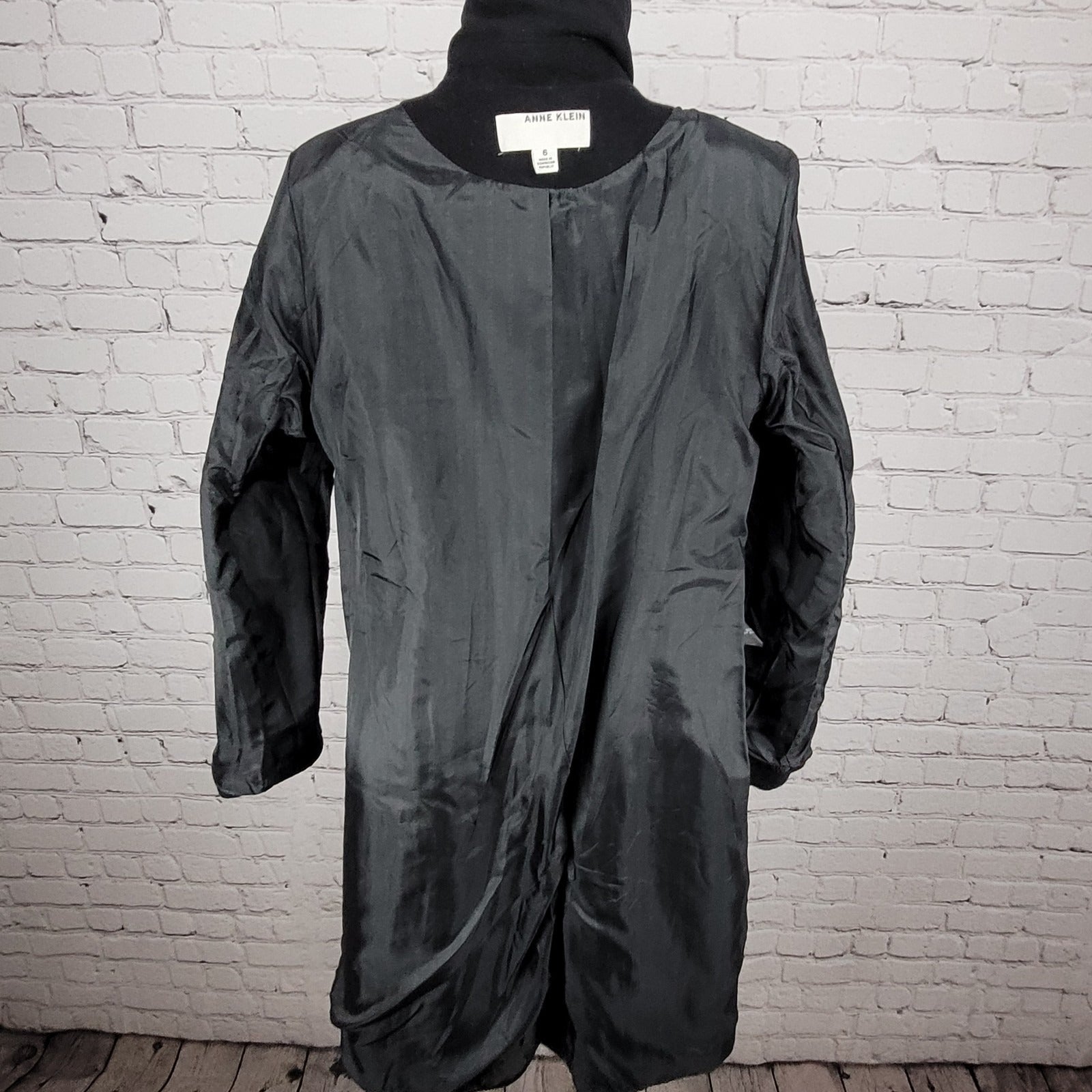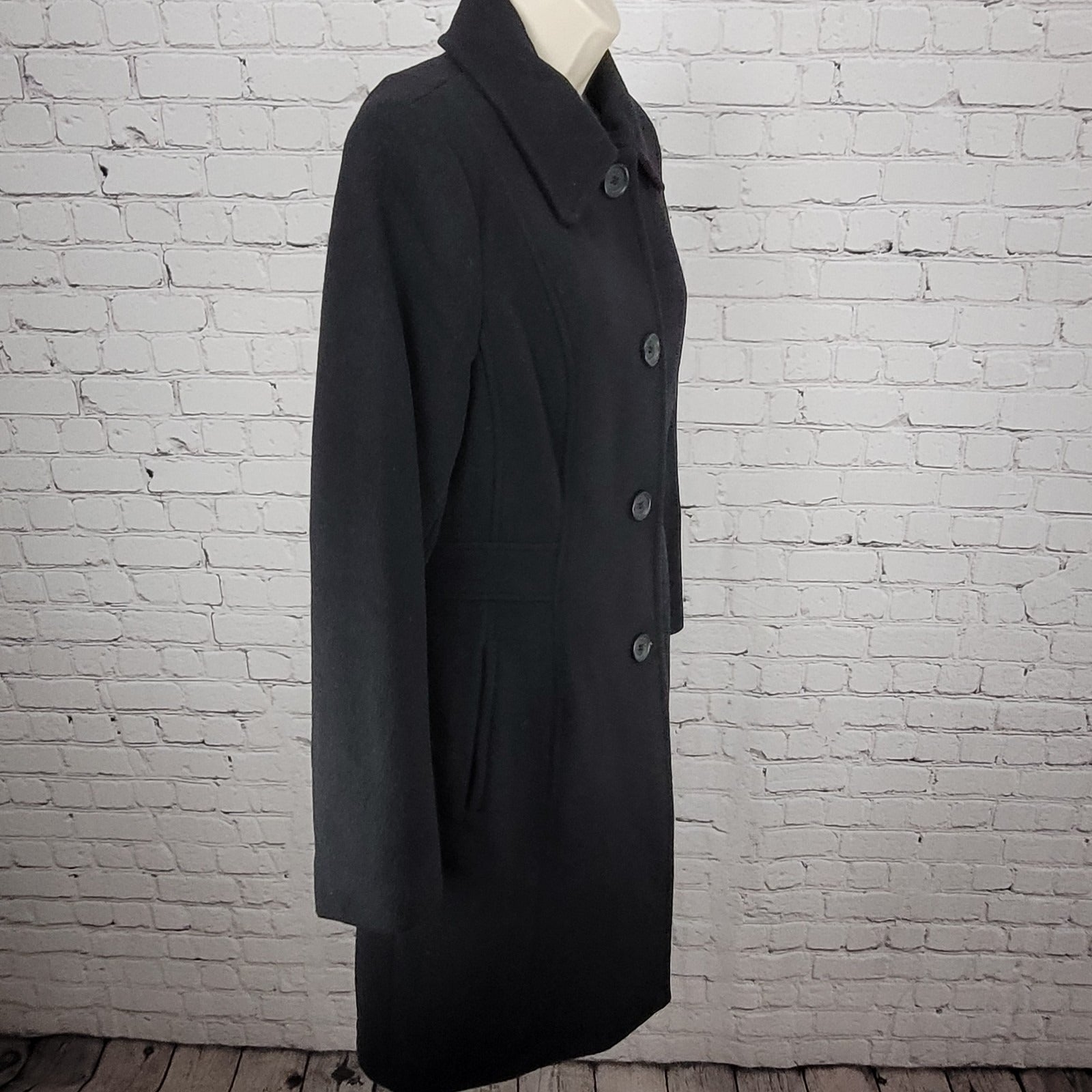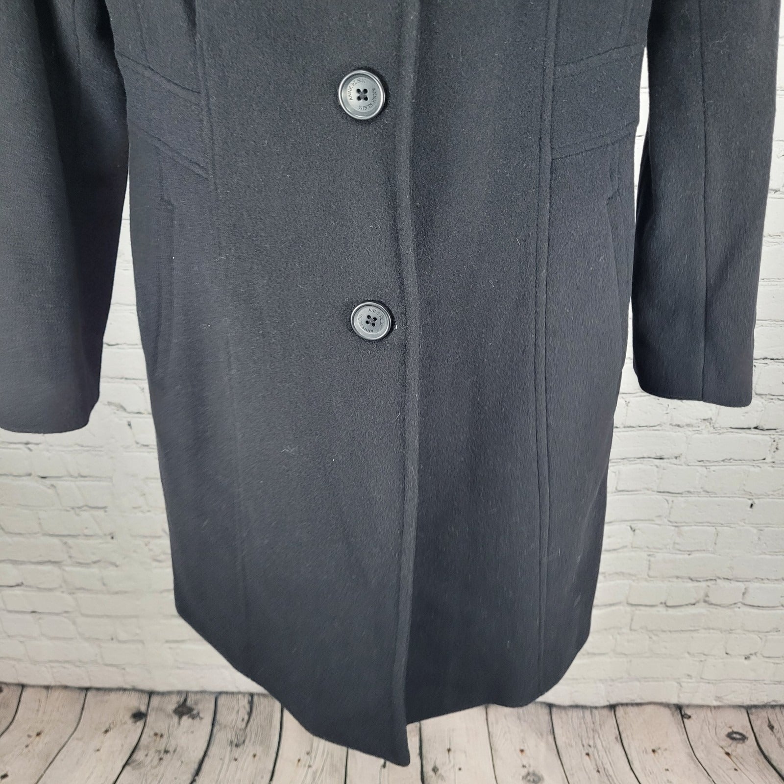 Anne Klein Black Wool Cashmere Blend Buttoned Lined Pockets Over Coat Size 6