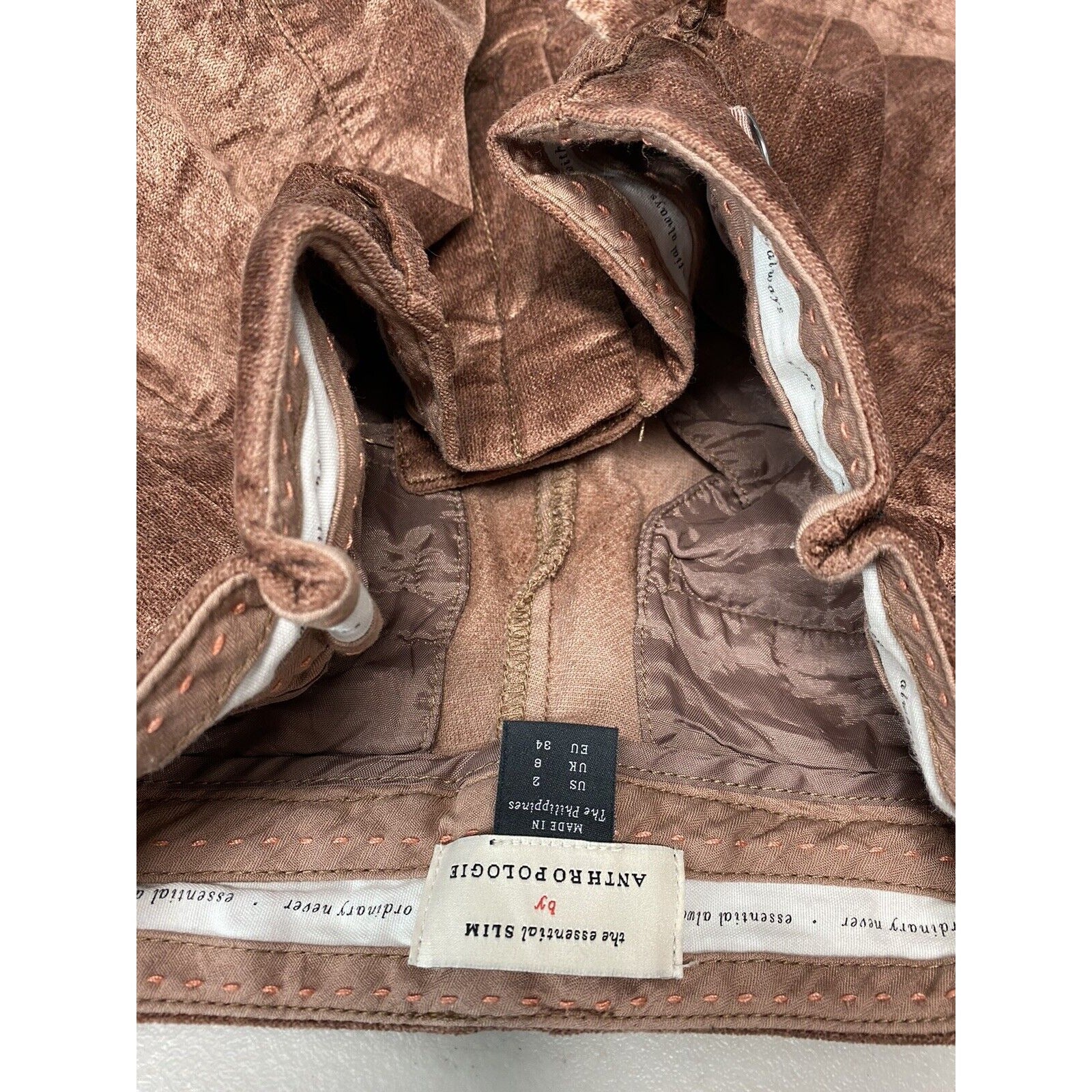 Anthropologie Brown Crushed Velvet The Essential Slim Skinny Leg Pants 2.