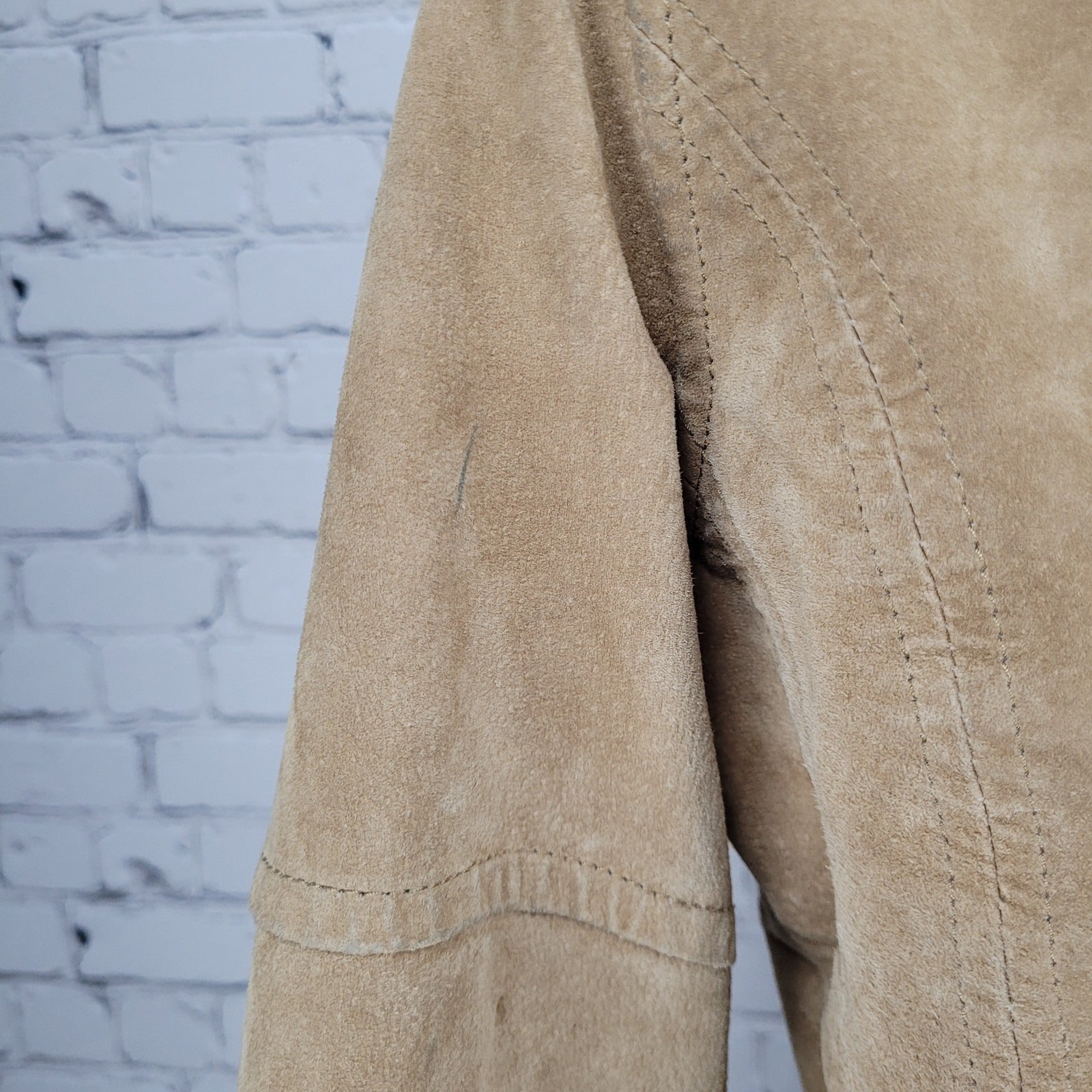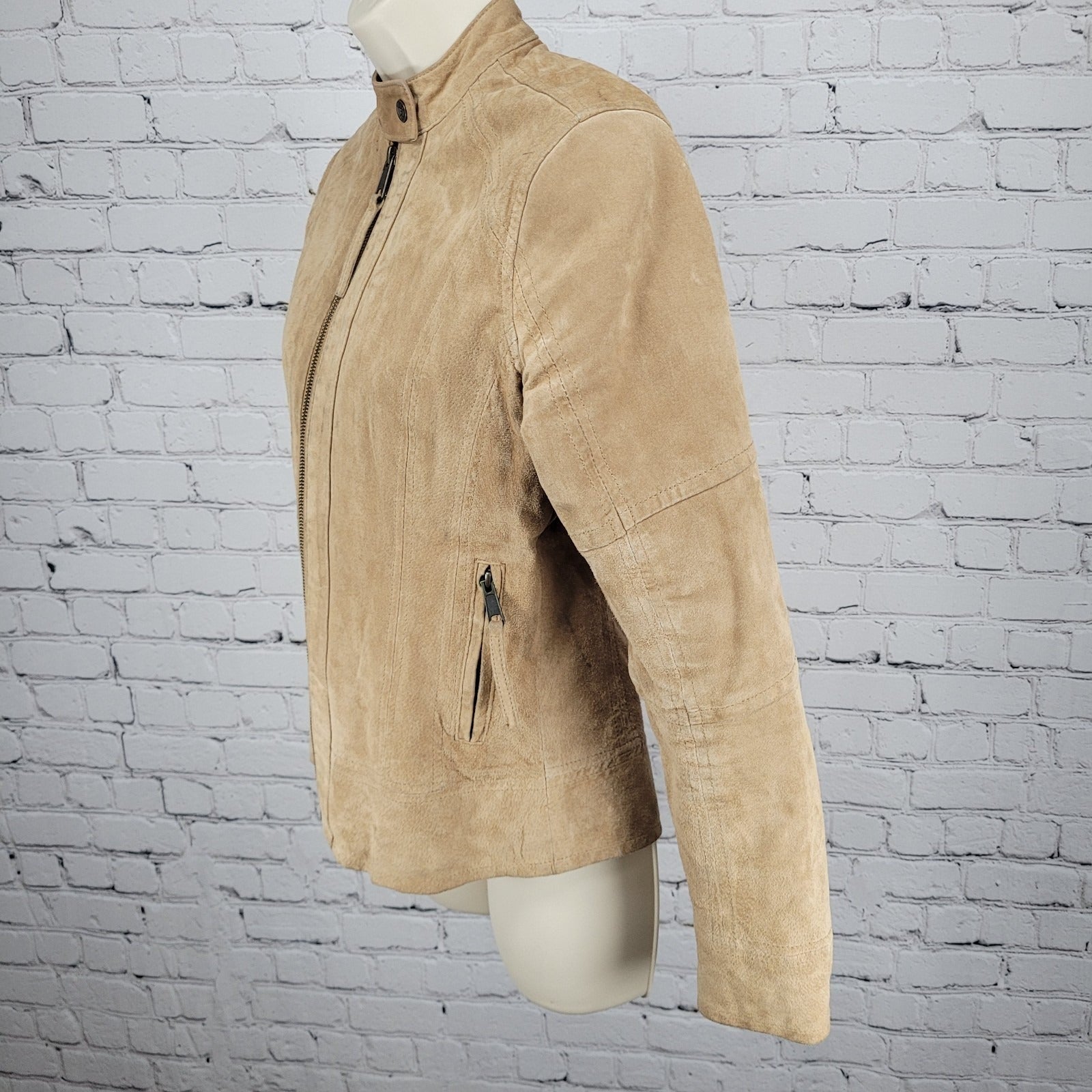 Ariat Tan 100% Genuine Pig Leather Suede Zipped Pockets Lined Jacket Medium M