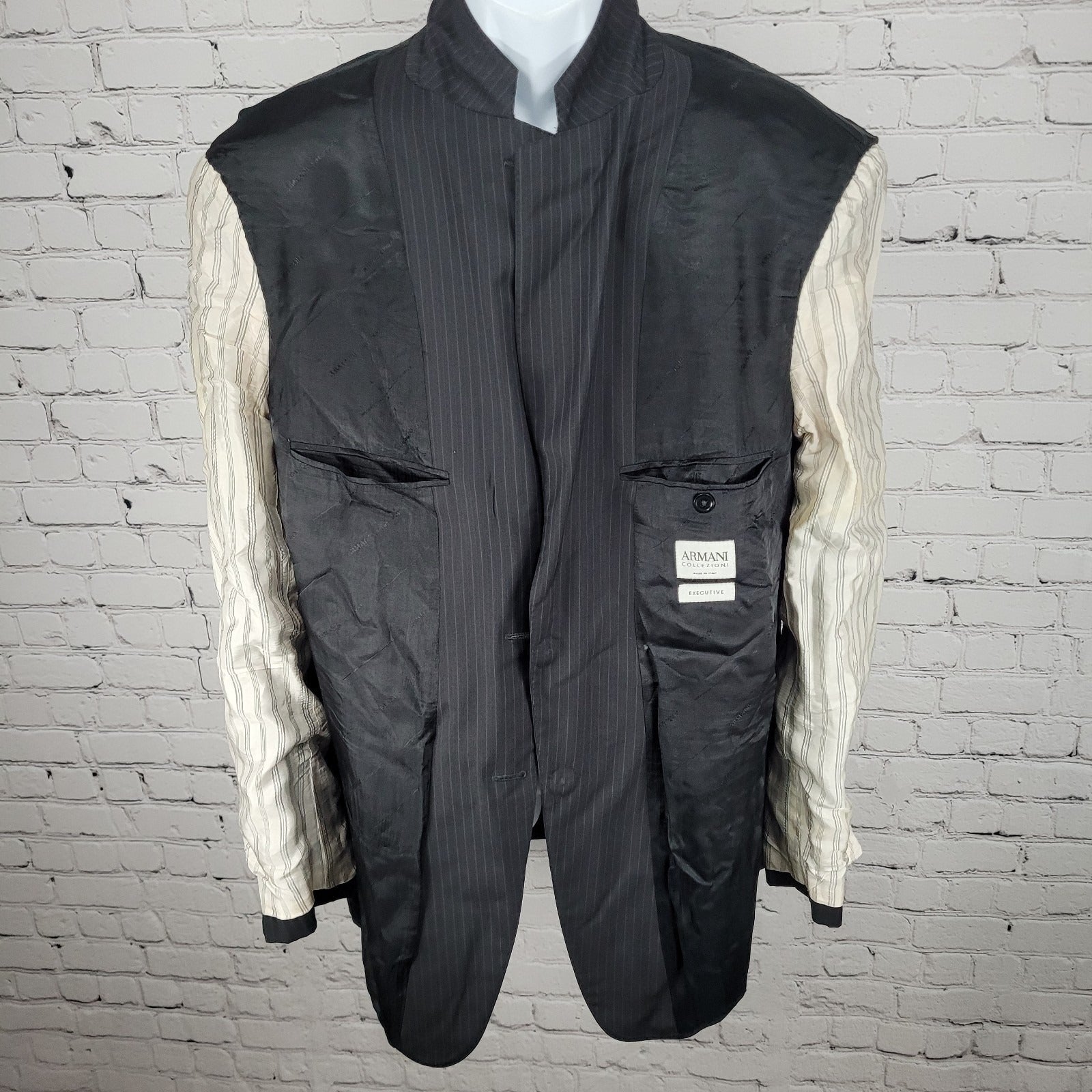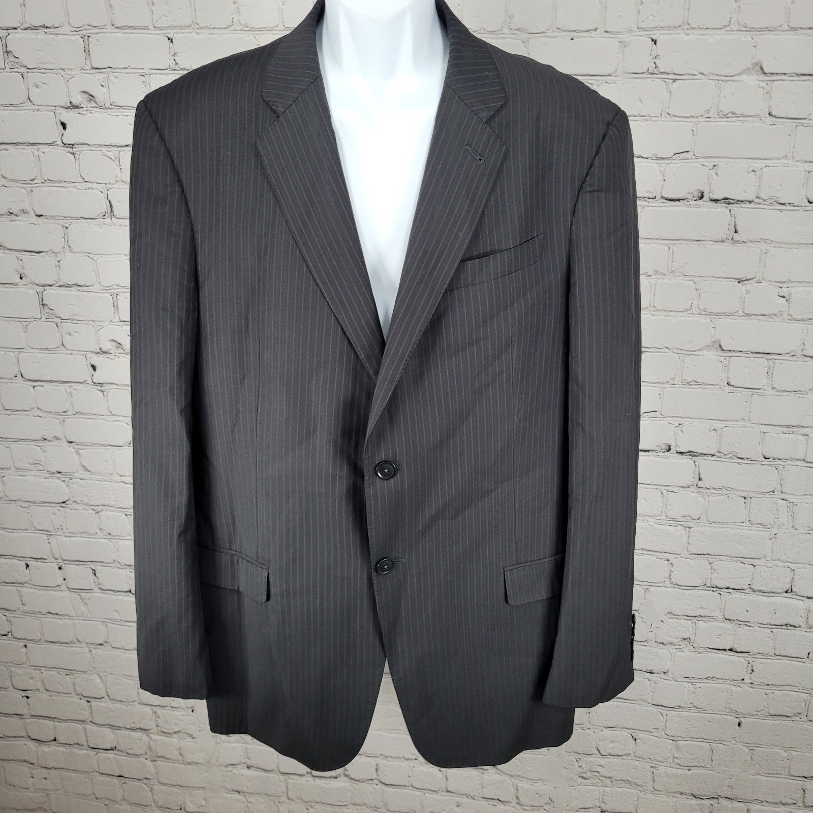 Armani Collezioni Black 100% Wool Executive Pinstripe Blazer Italy Made Size 44L