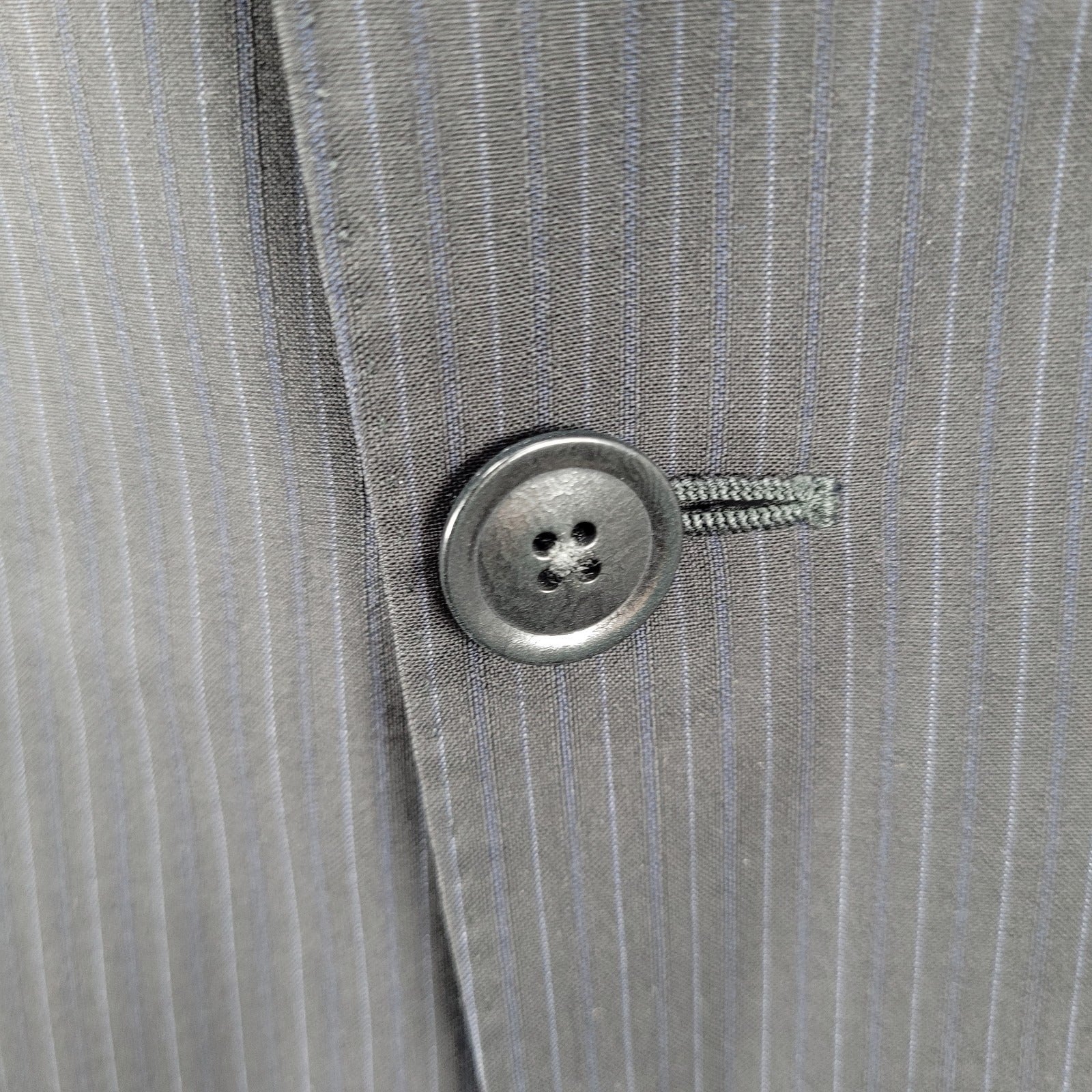 The Armani Collezioni Black 100% Wool Executive Pinstripe Blazer is a sophisticated and stylish piece made in Italy. This long blazer features a classic pinstripe pattern, a double-vented back, and a notch lapel. With a chest size of 46 inches and a size 44 fit, it is perfect for formal occasions, business meetings, or even a wedding. It is crafted from high-quality wool and is designed with inner pockets for added convenience. This timeless blazer exudes elegance and luxury, making it a versatile addition to any man's wardrobe.