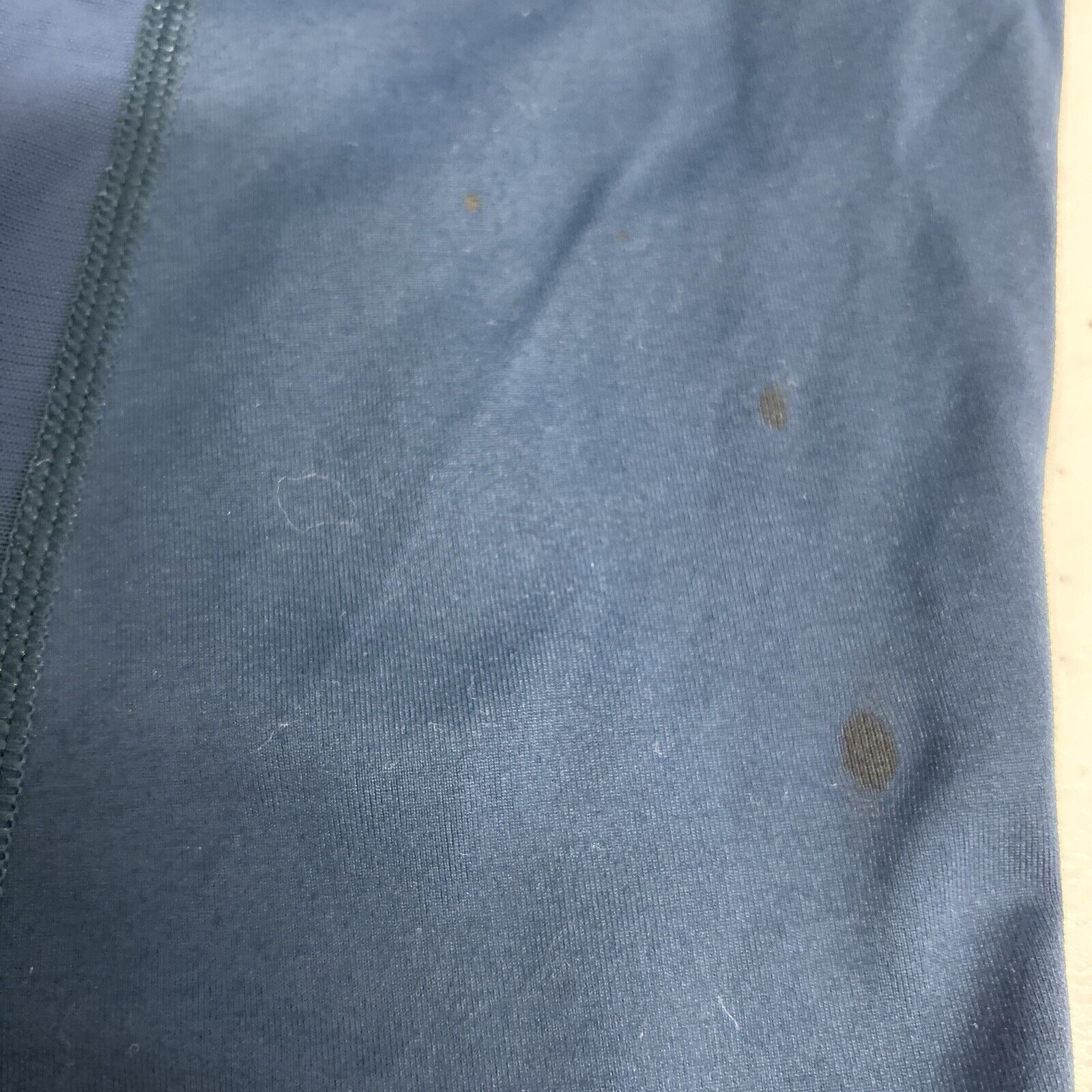 Hole in lowest part of zipper pocket. Several stains on the lower part of both legs as pictured.