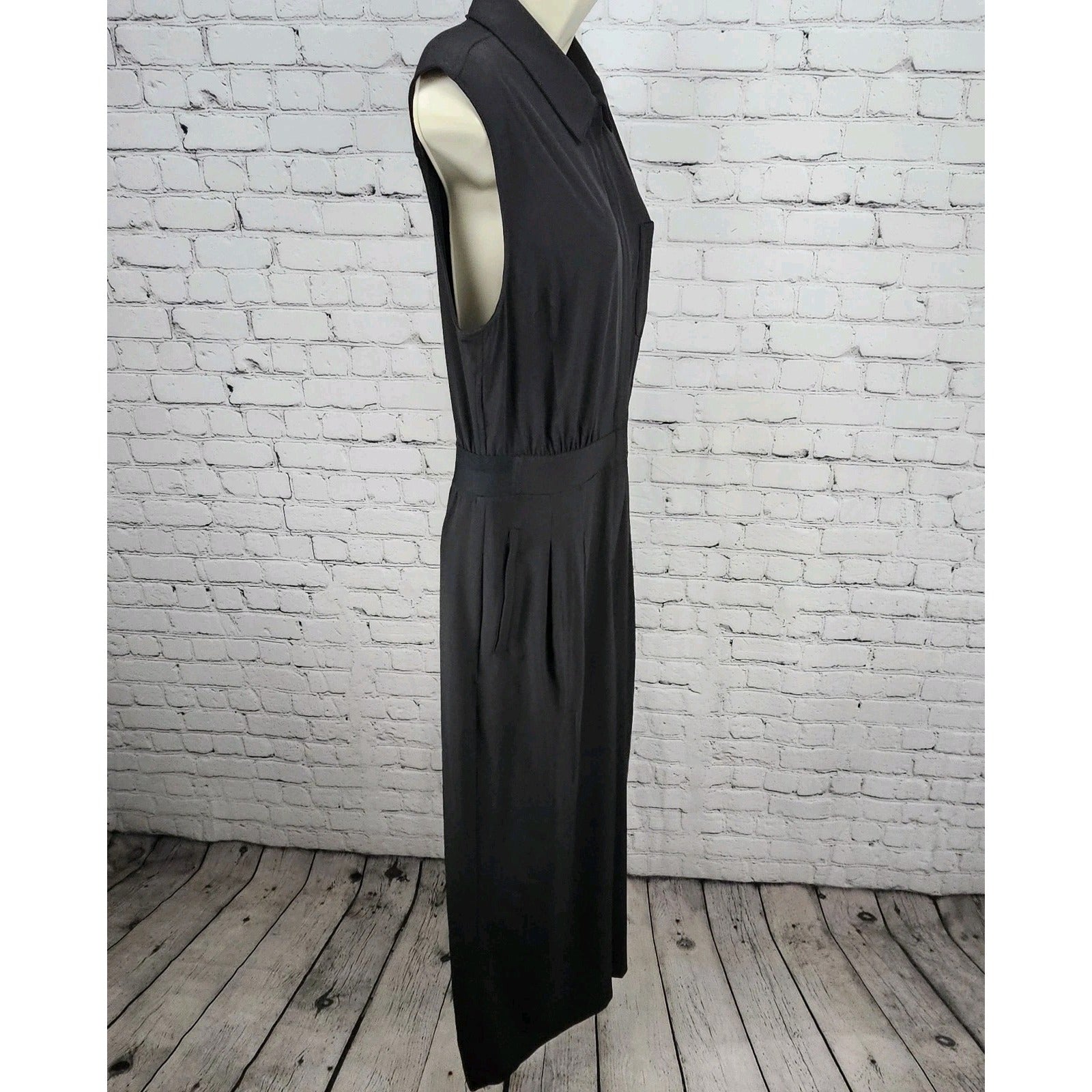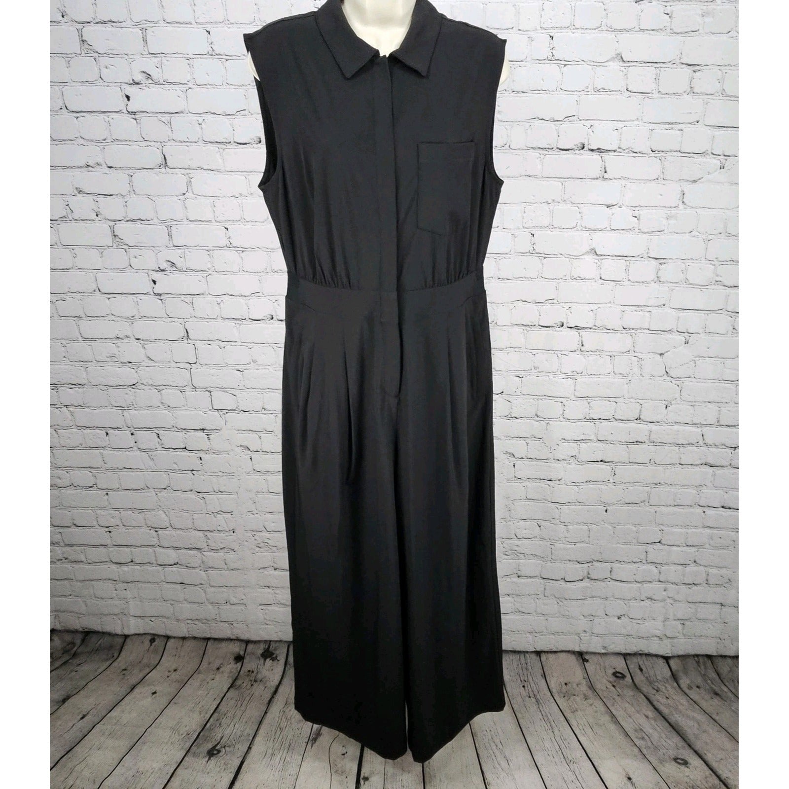 Athleta Black Pleated Wide Leg Front Zip Sleeveless Stretch 1 Piece Jumper 10P