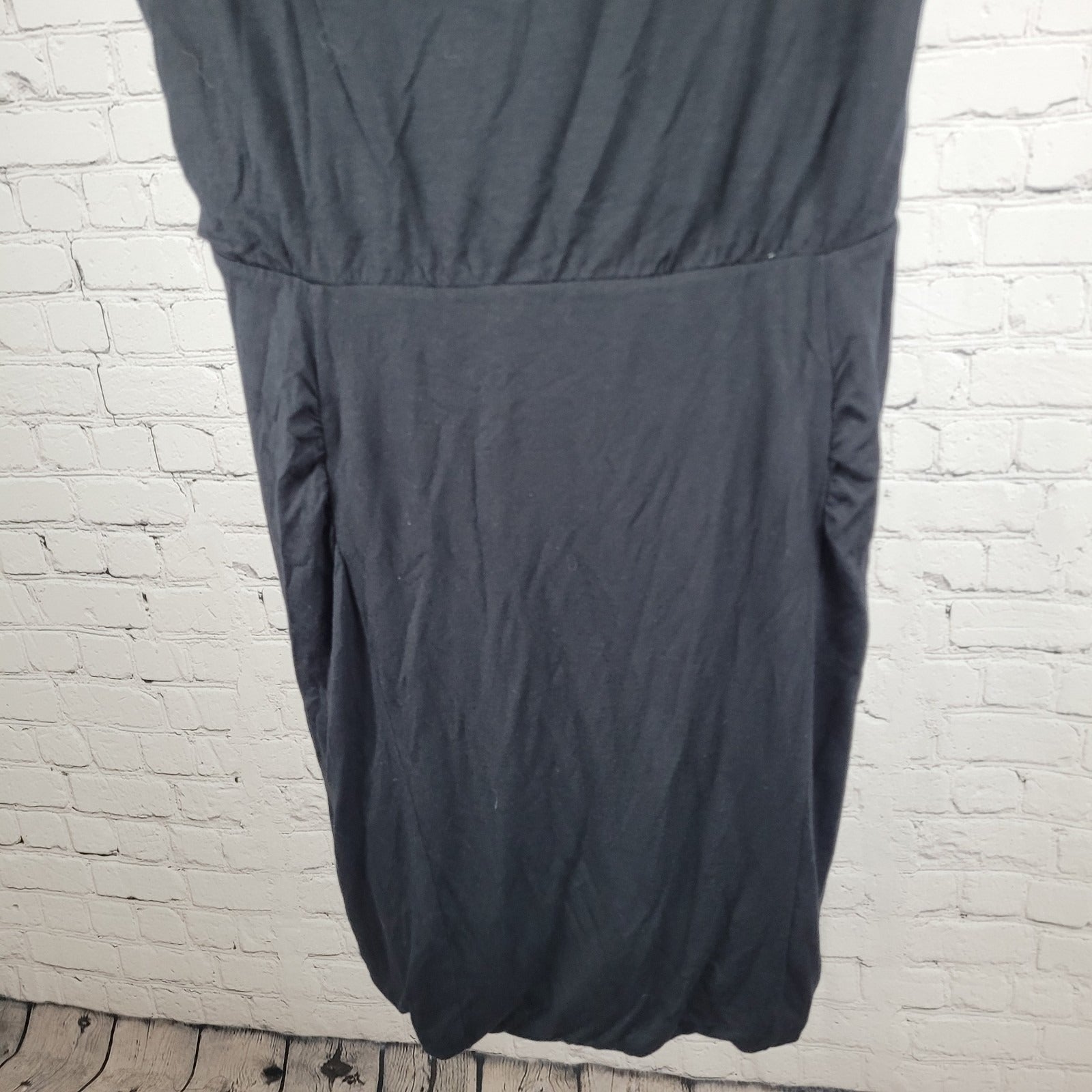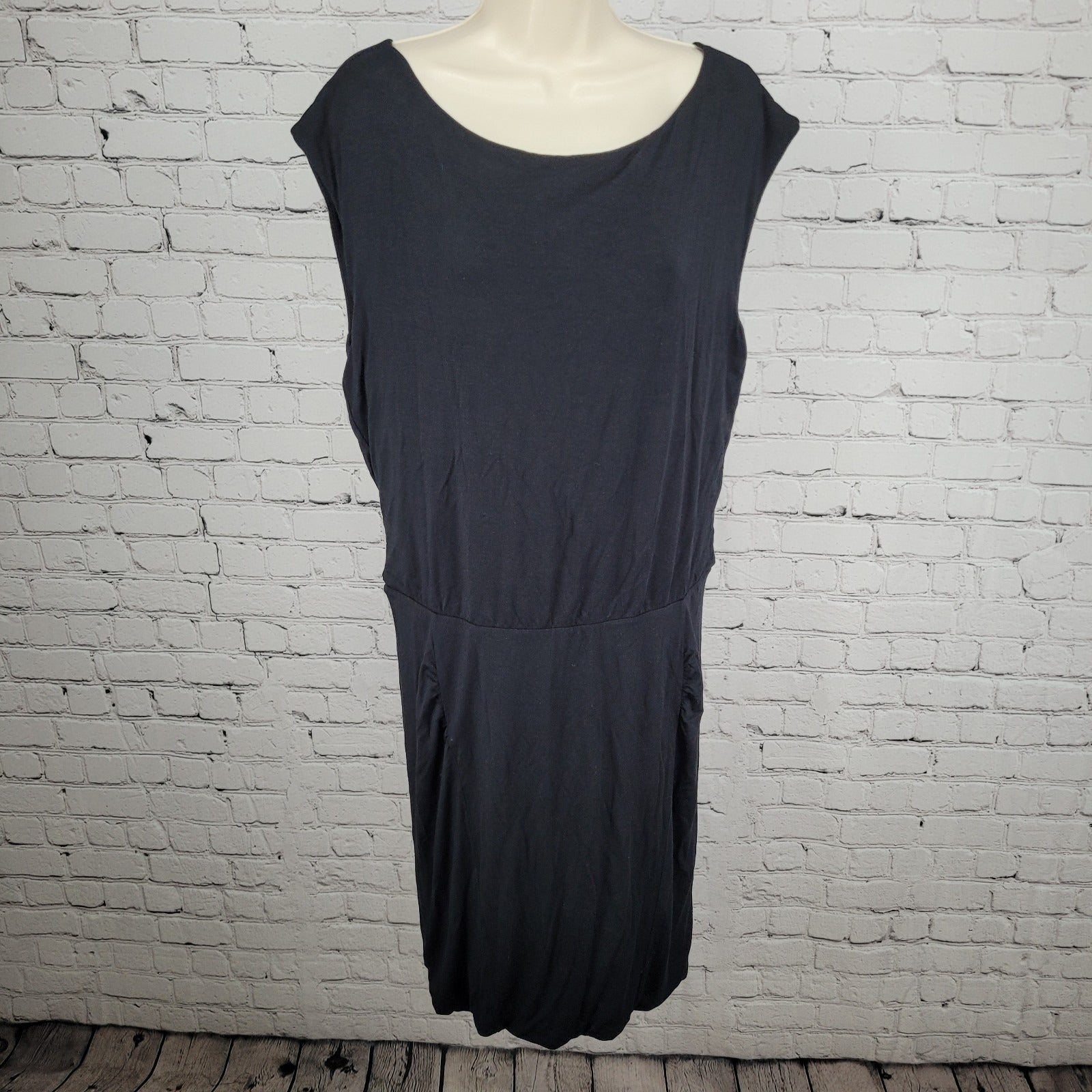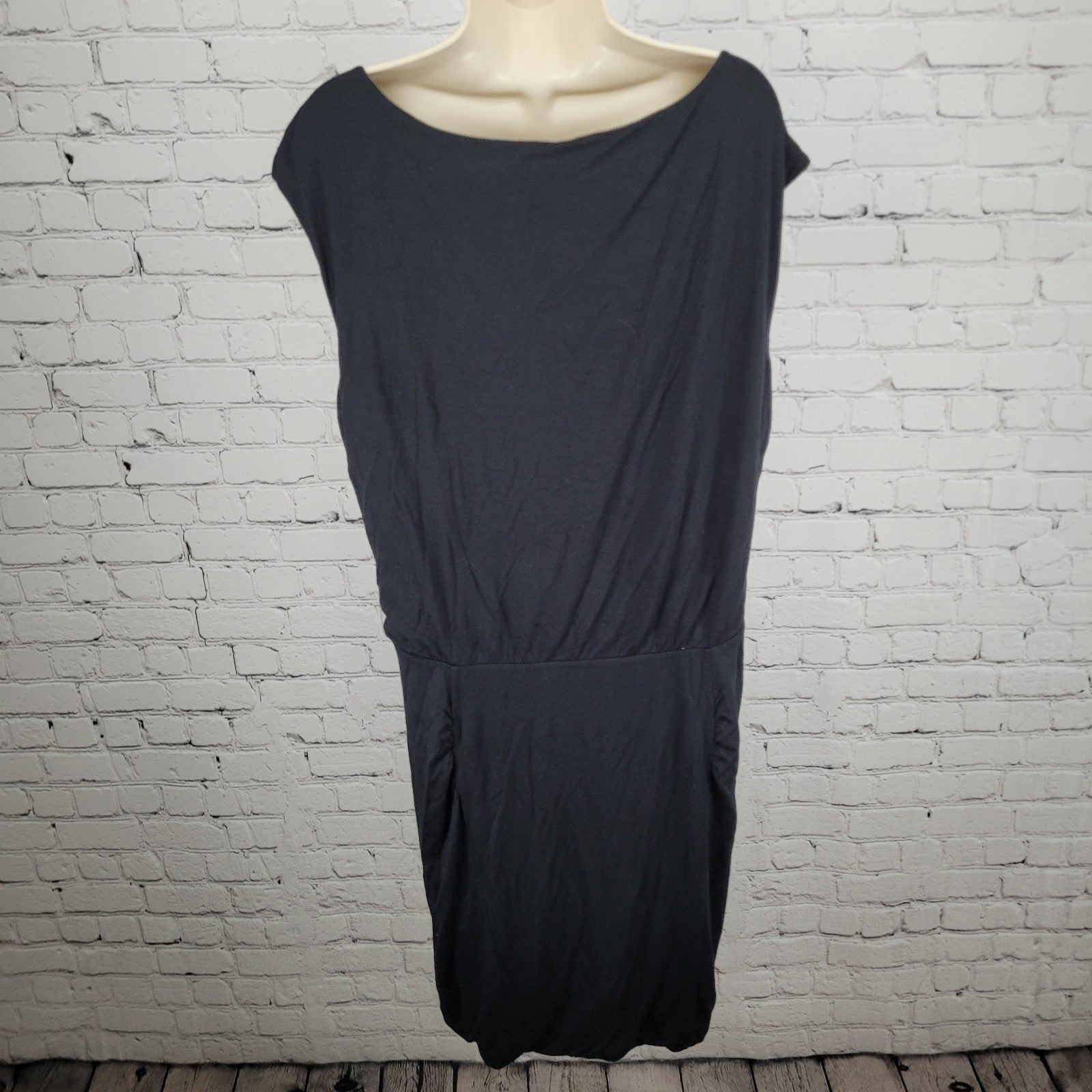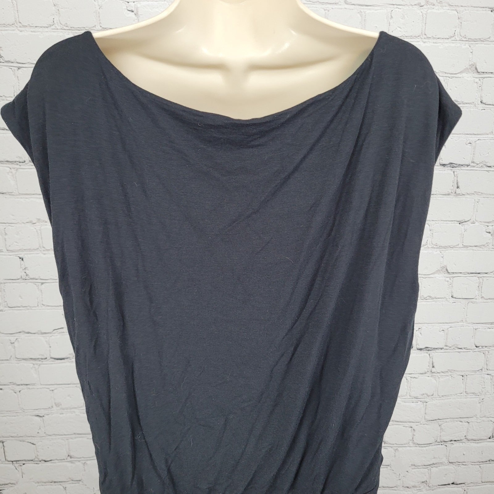 Athleta Black Wool Blend Soft Stretch Athleisure Ruched Dress Size Large L