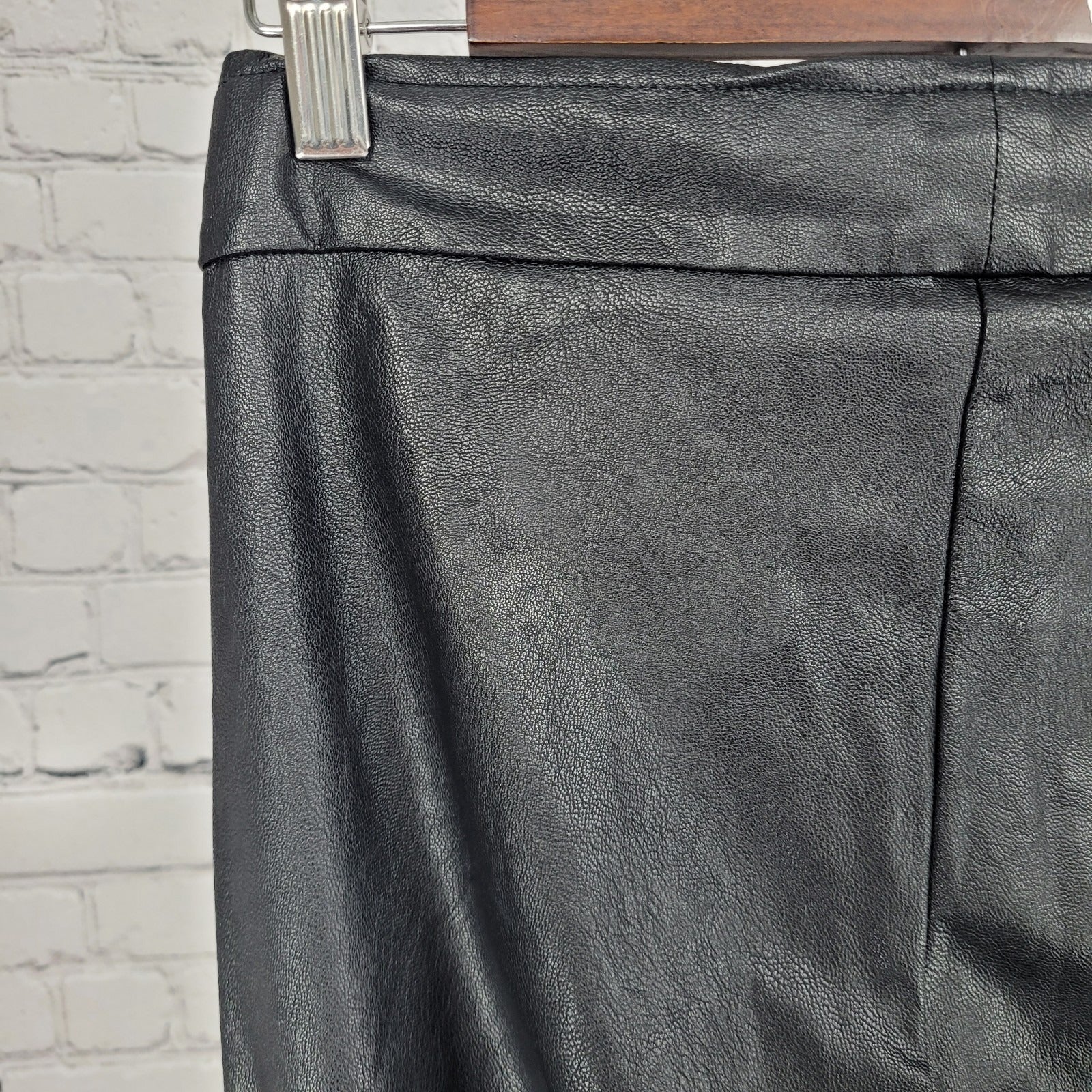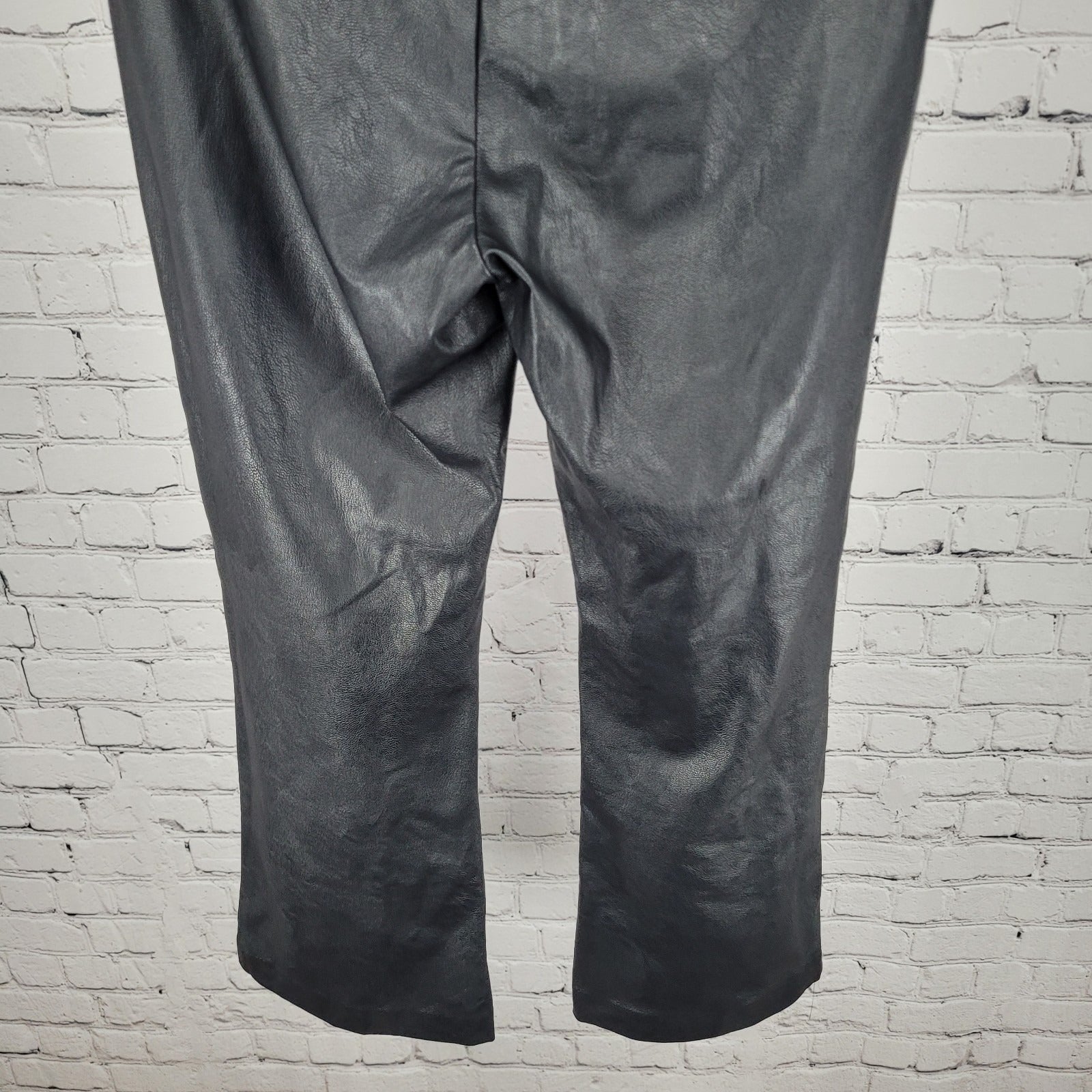 Avenue Montaigne Black Leo Faux Leather Stretch Crop Pants USA Size 2 (27x25)