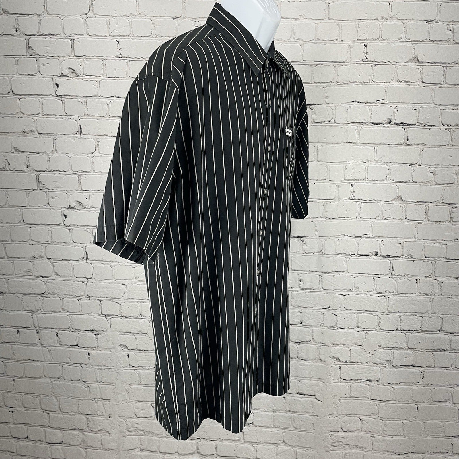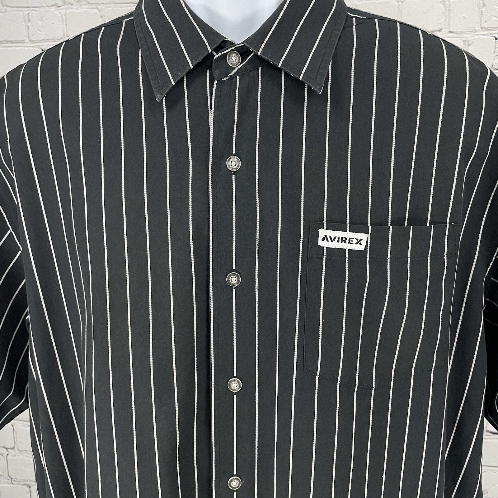 Avirex Black Striped Button Up Lightweight Short Sleeve Shirt Pocket Size XXL