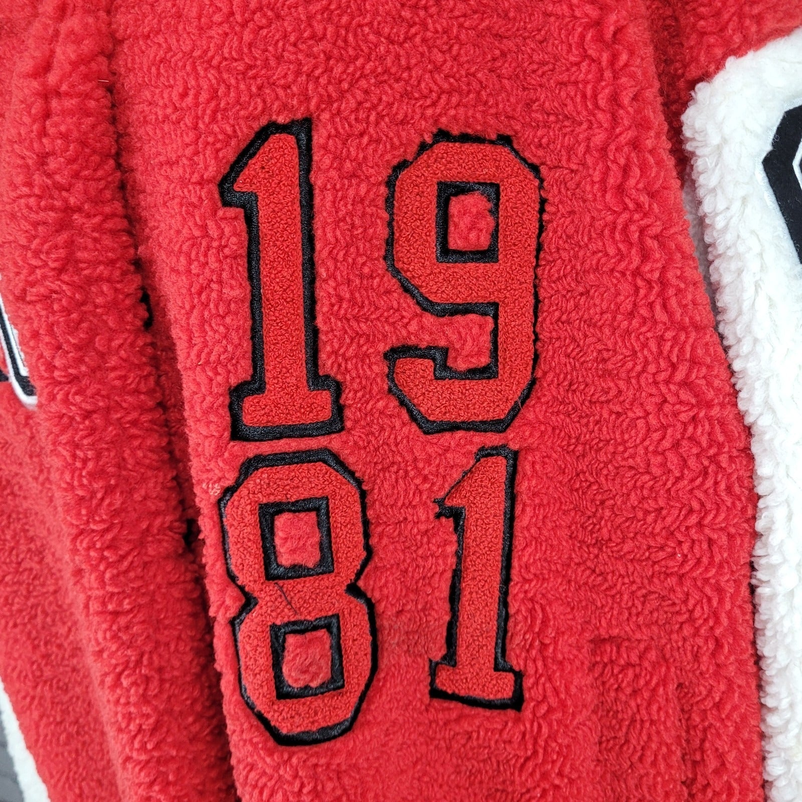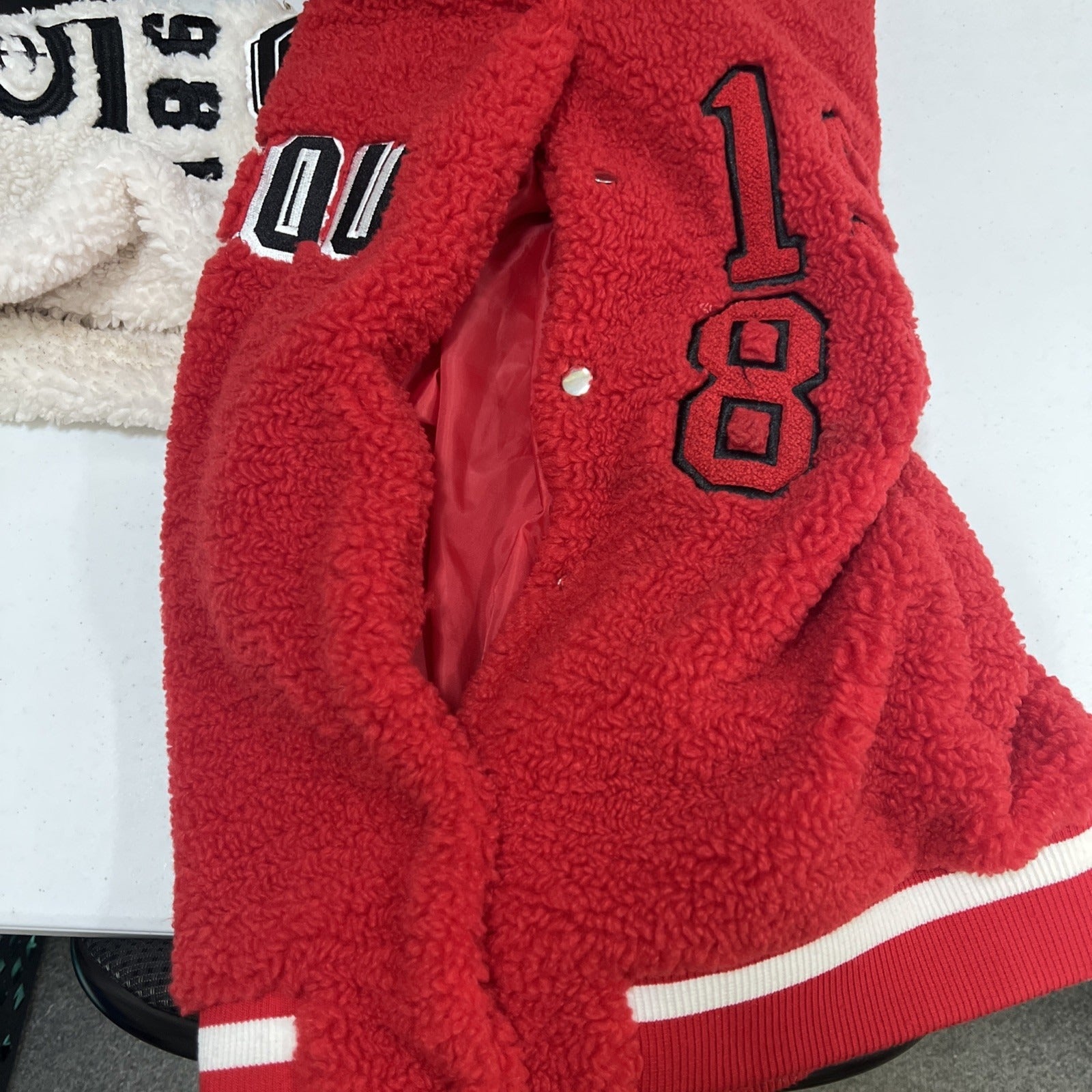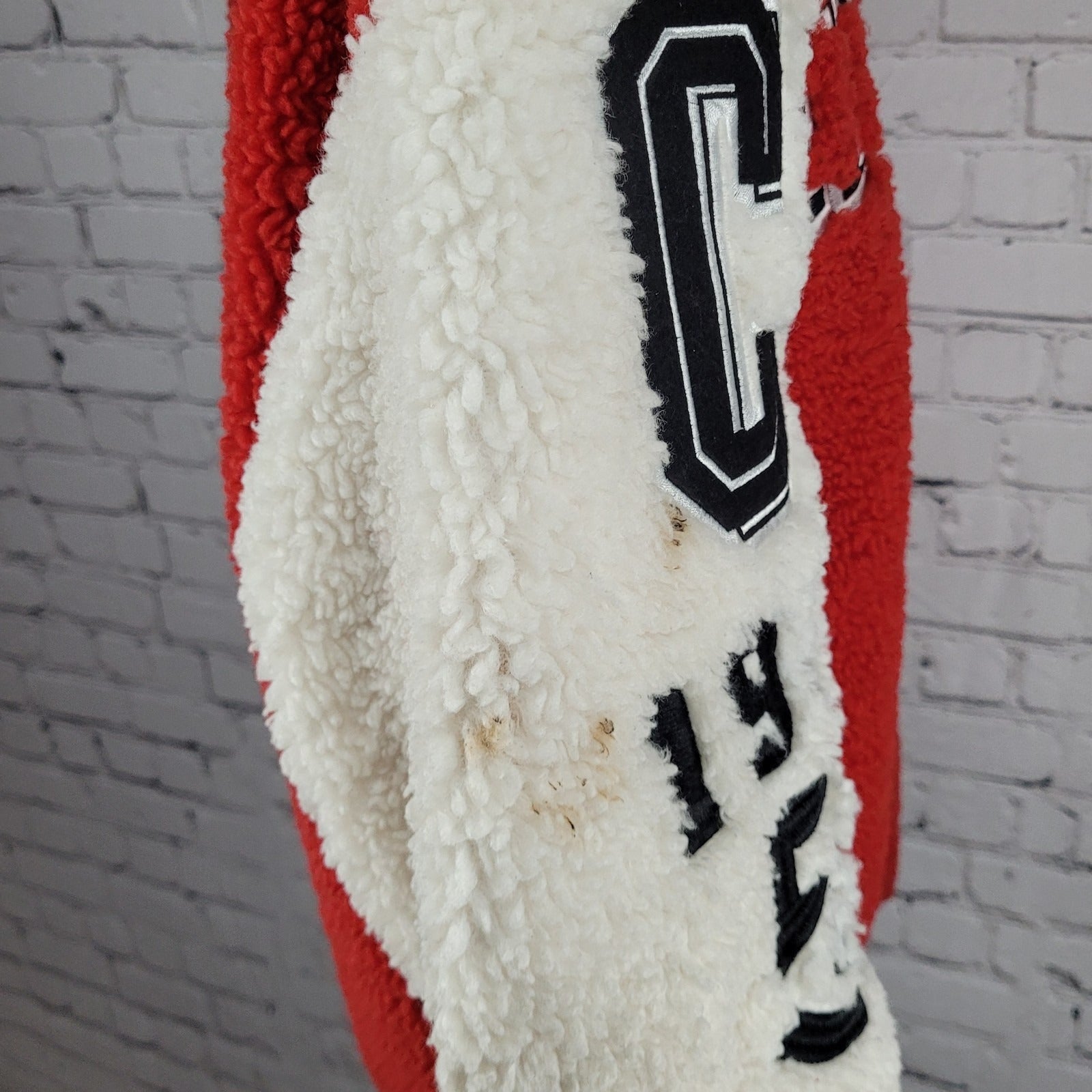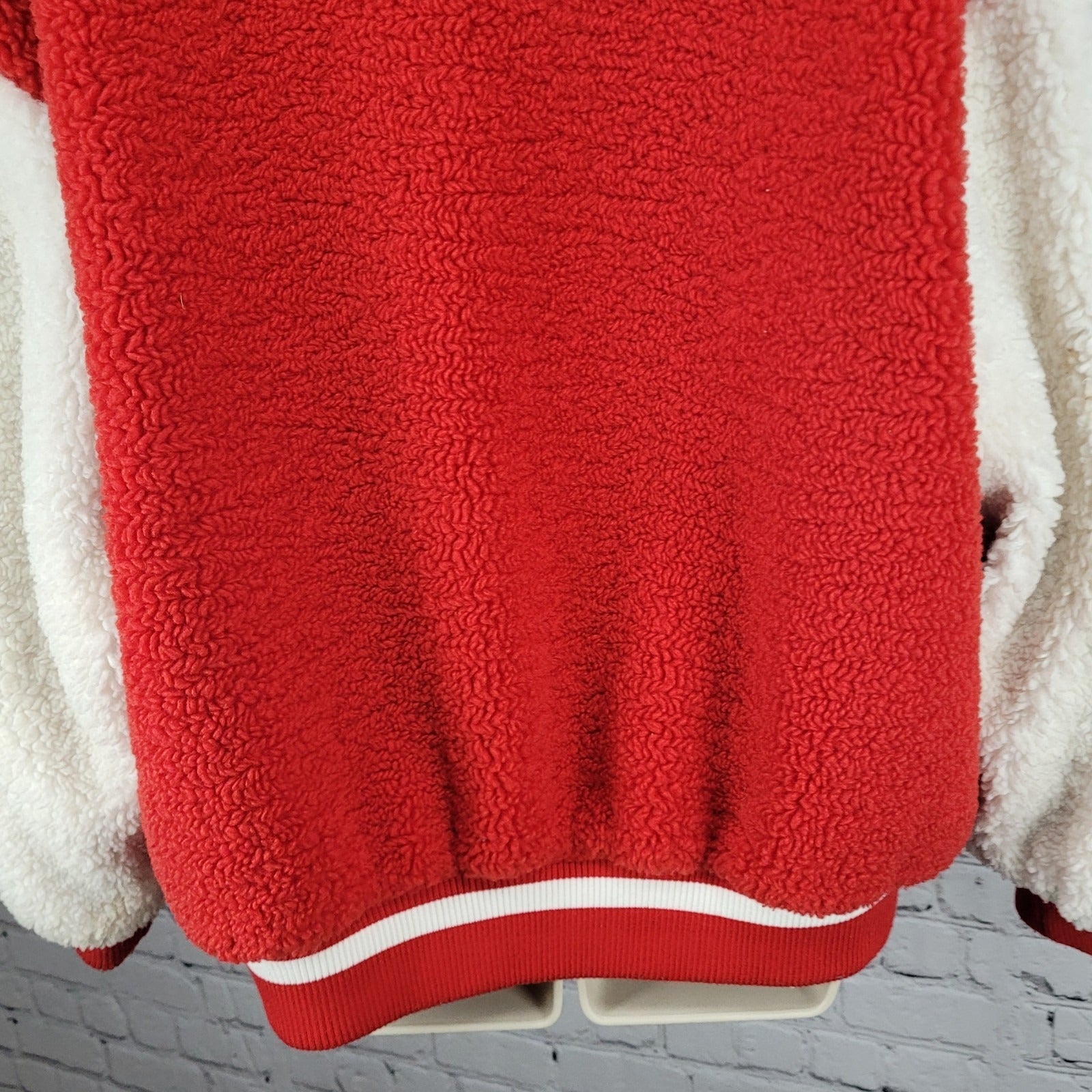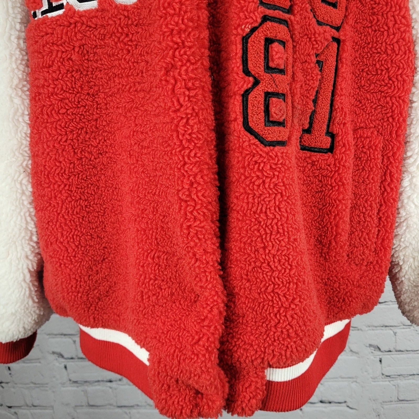Azalea Wang Red White Sherpa Solo Bomber Retro Varsity Snap Jacket Large L