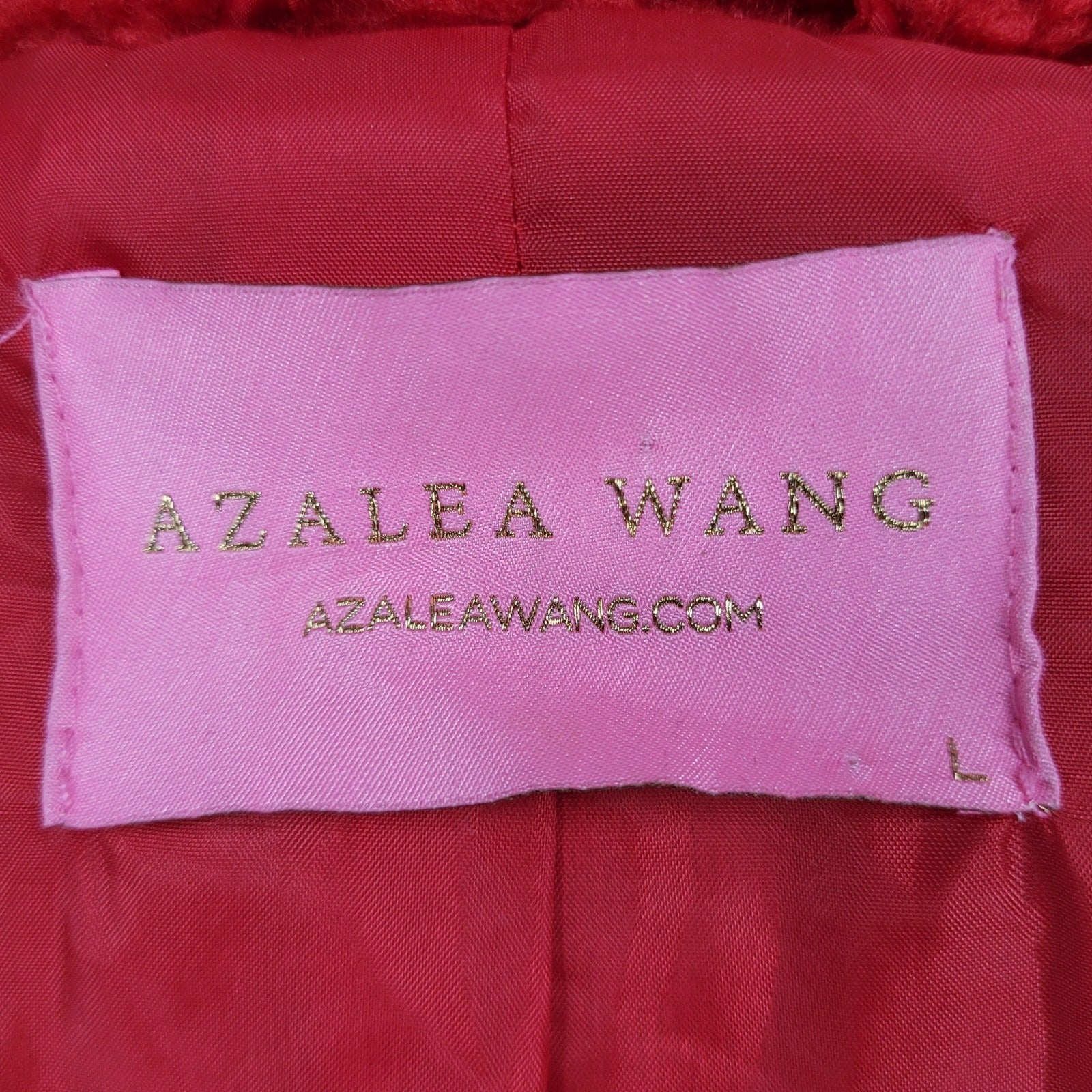 The Azalea Wang Red White Sherpa Solo Bomber Retro Varsity Snap Jacket in size Large is a stylish outerwear option for women. Made from polyester, this short-length jacket features a solid red color with embroidered logo accents. The long sleeve design and snap closure make it perfect for casual or travel occasions in the winter, fall, or spring seasons. The lined jacket also includes pockets for added functionality, adding a touch of retro style to any wardrobe with its varsity jacket design.