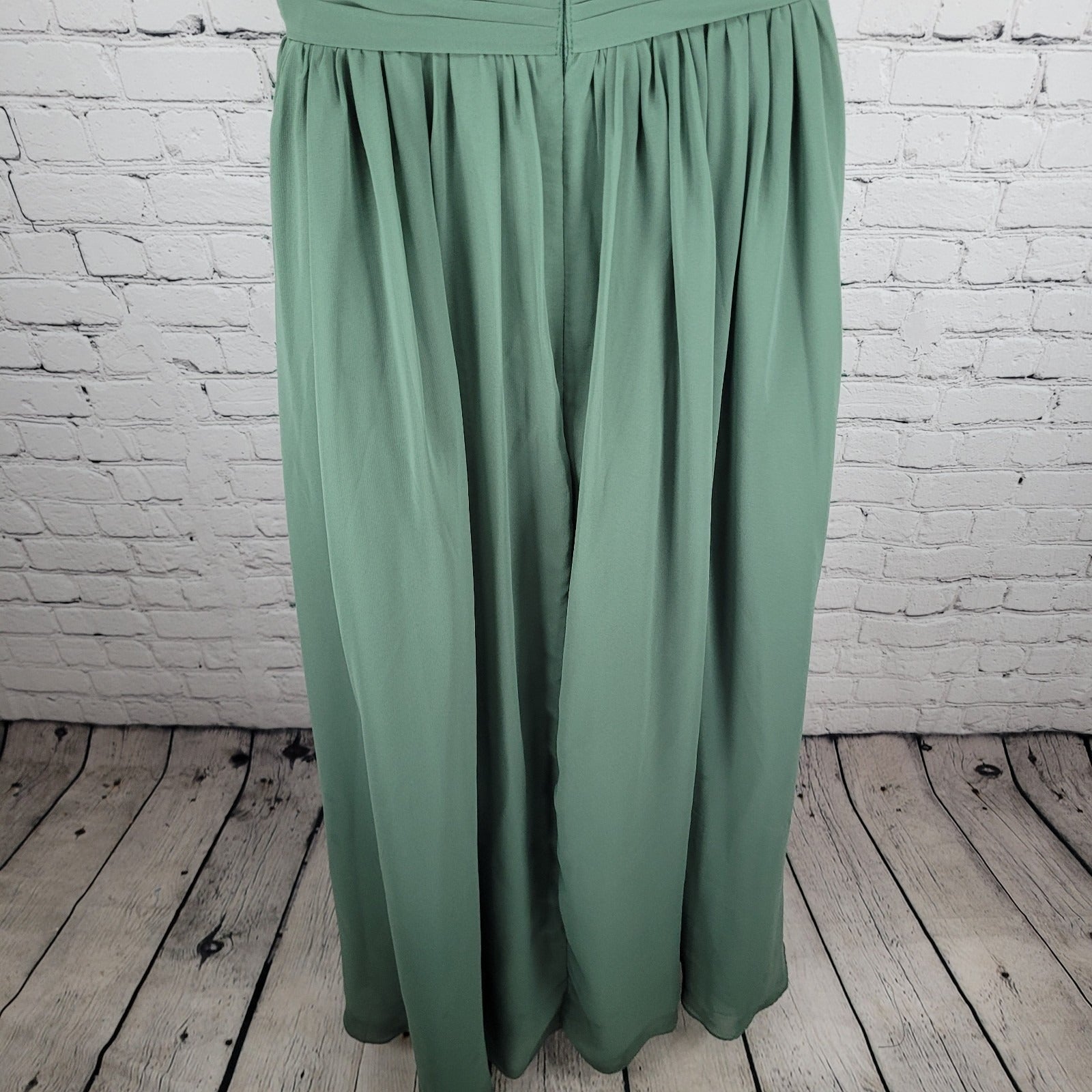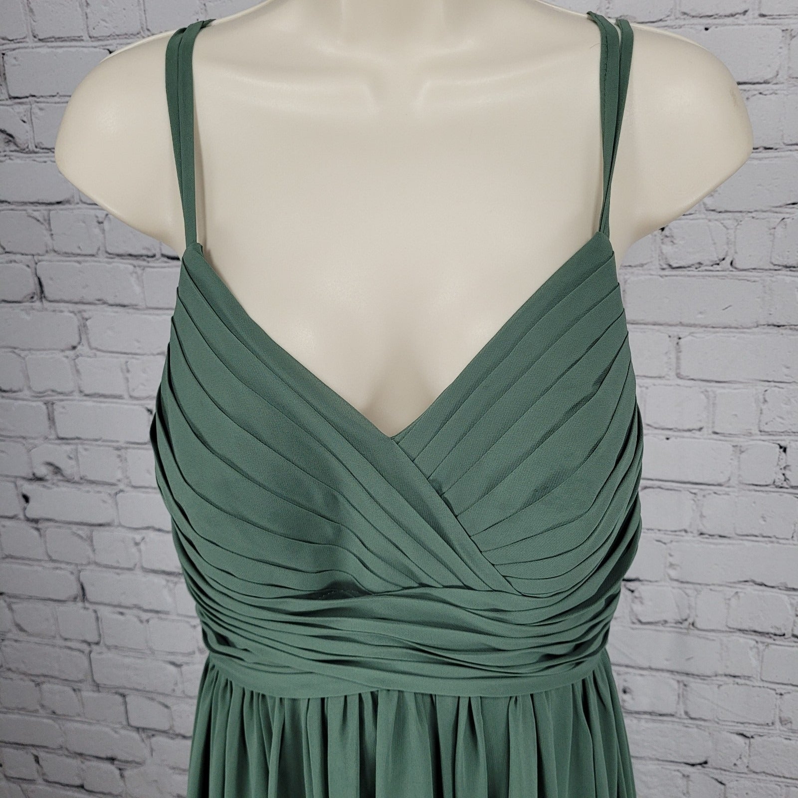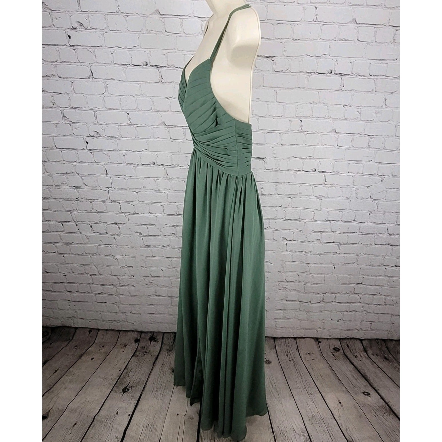 Azazie Green Chiffon Strappy Empire Waist Side Slit Bridesmaid Dress Size C