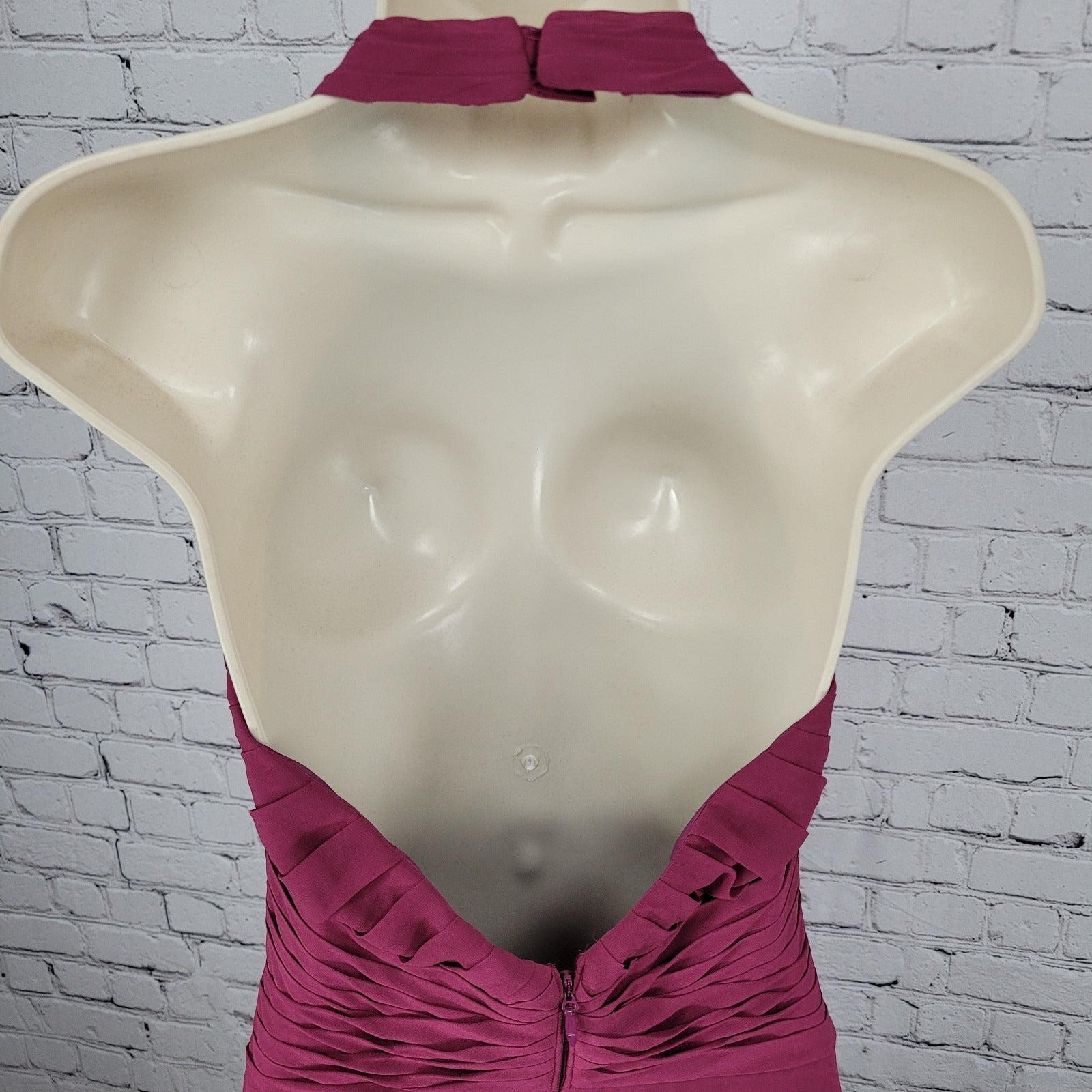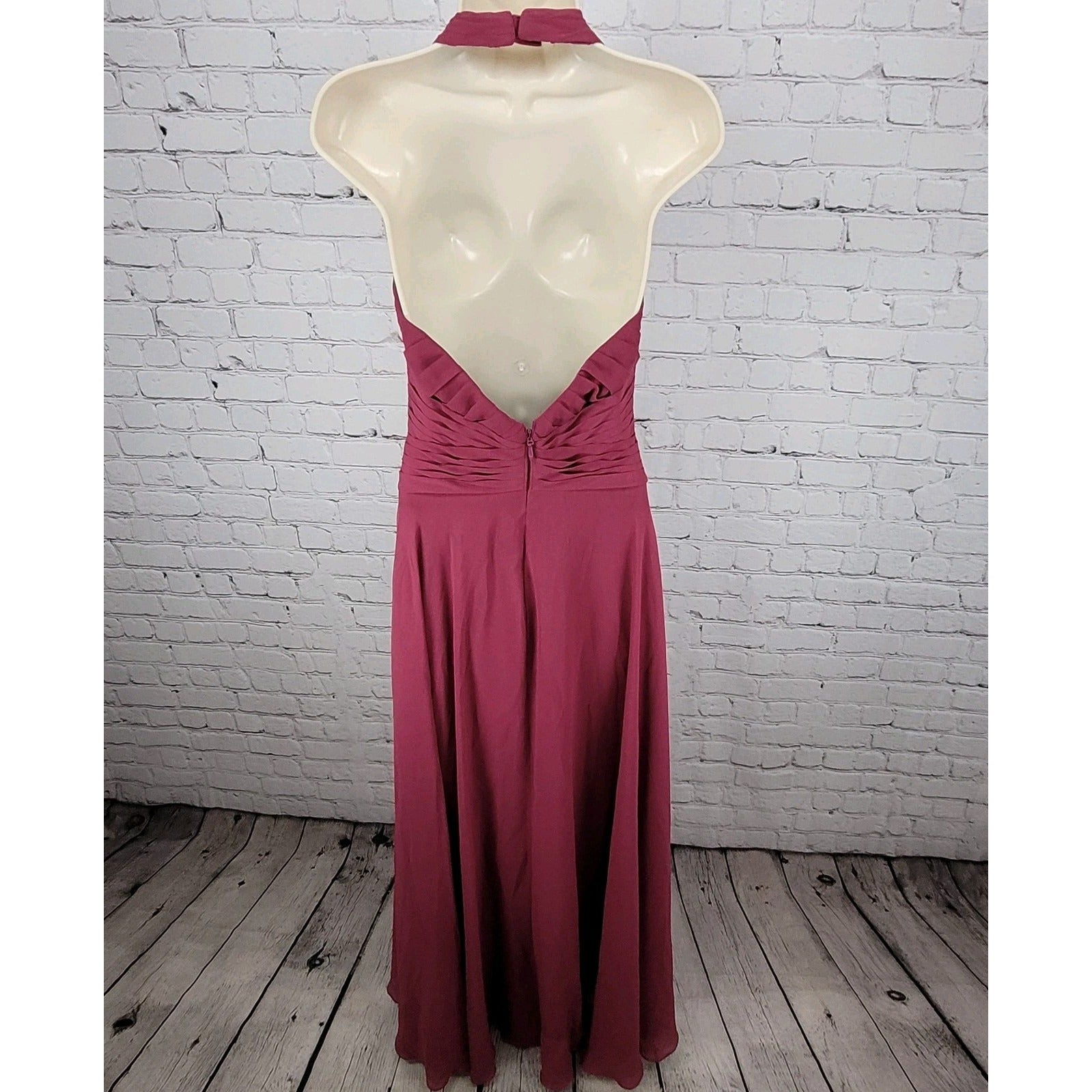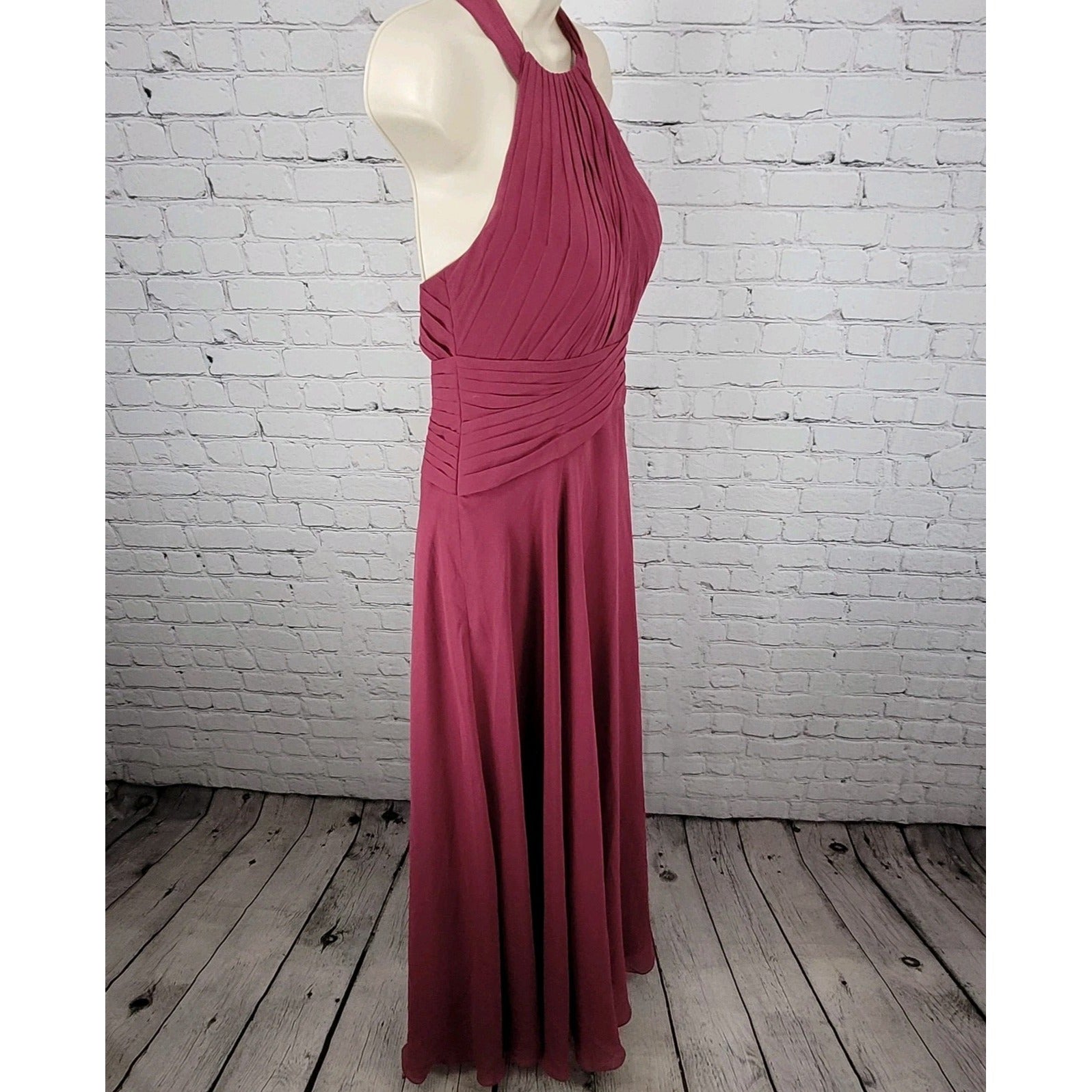Azazie Purple Pleated Halter Strapless Backless Bridesmaid Maxi Dress Gown A6