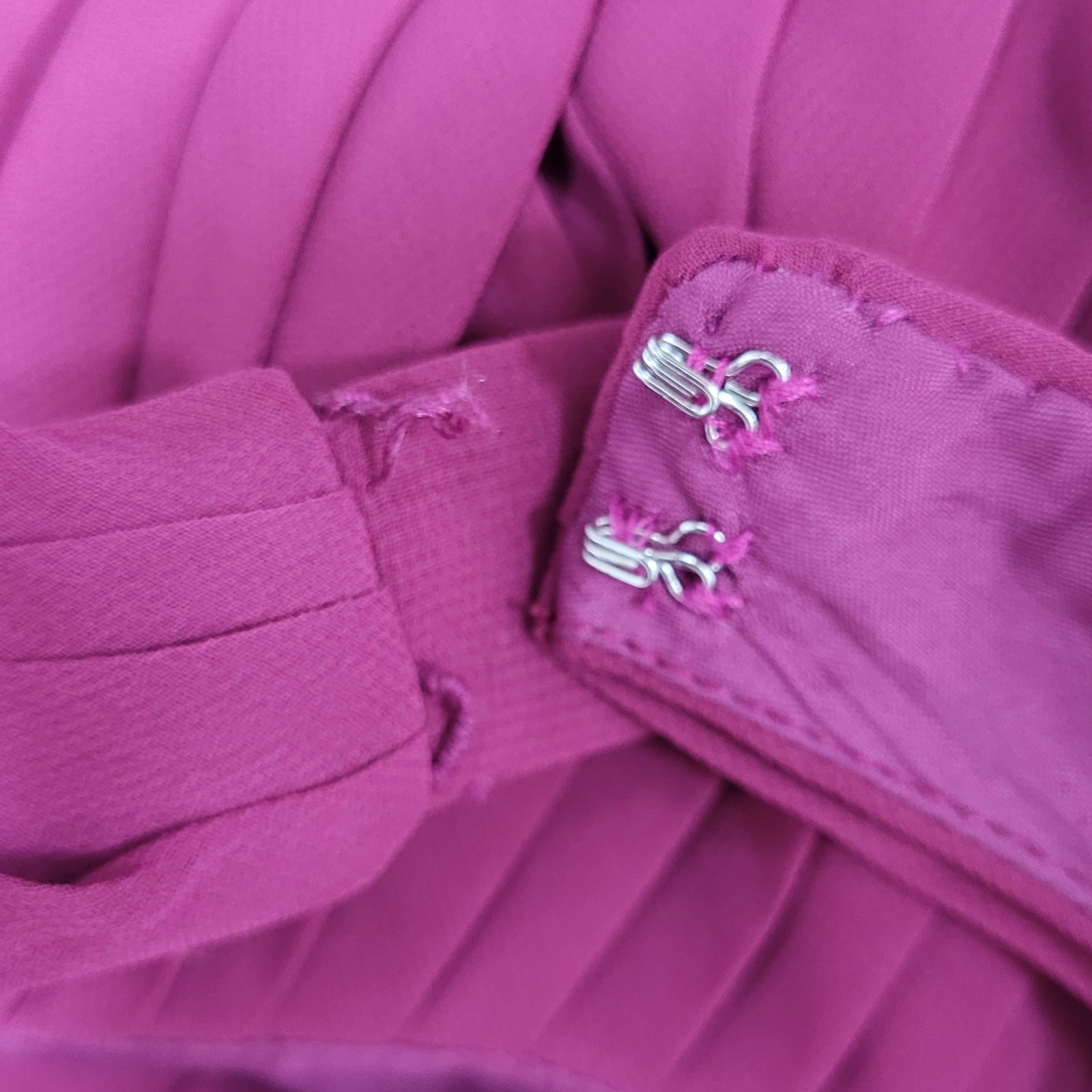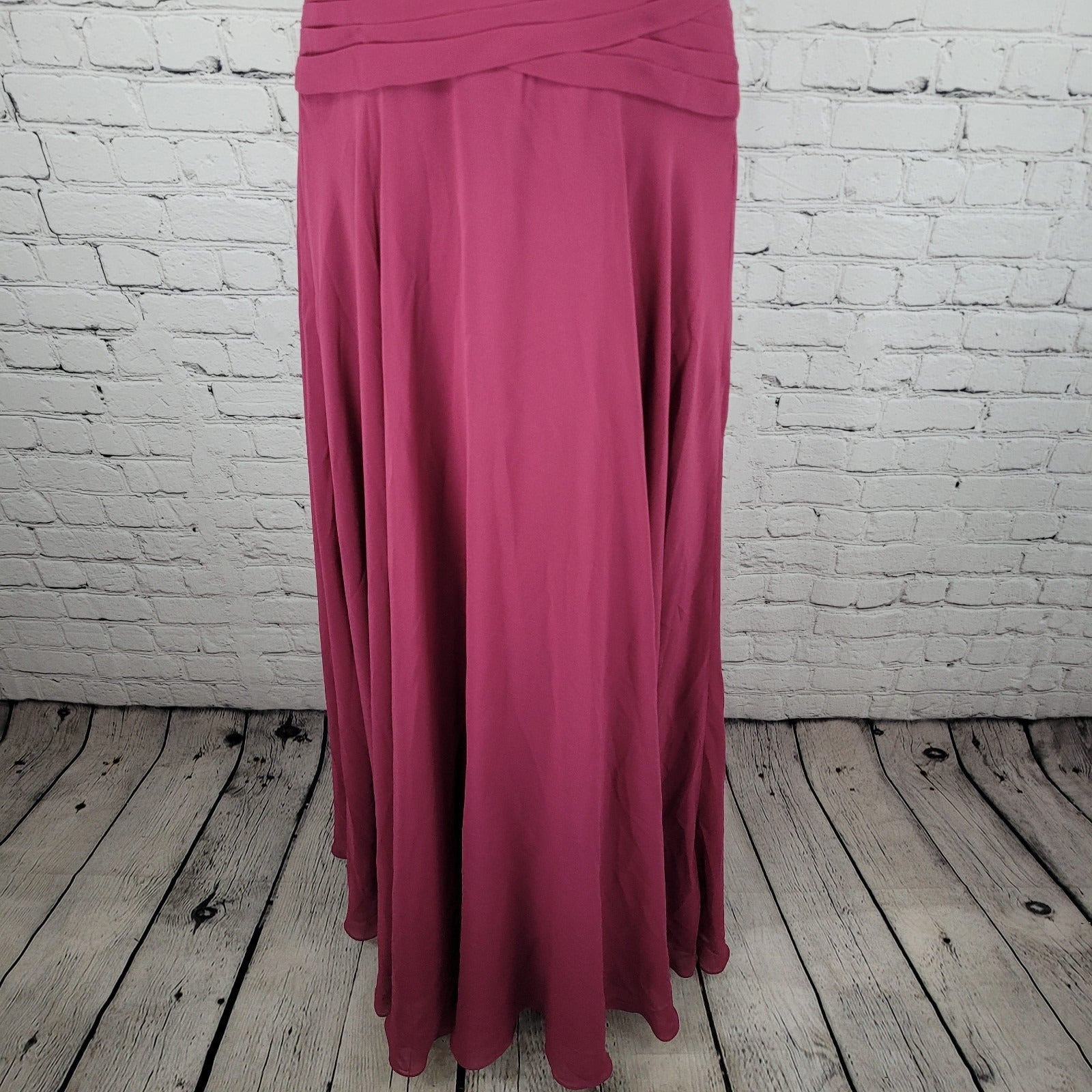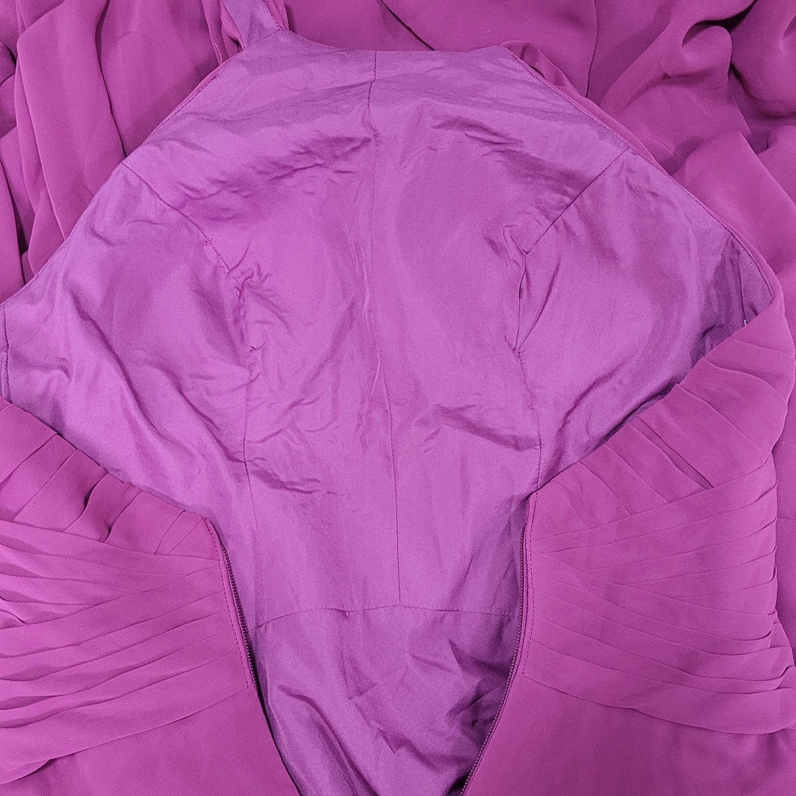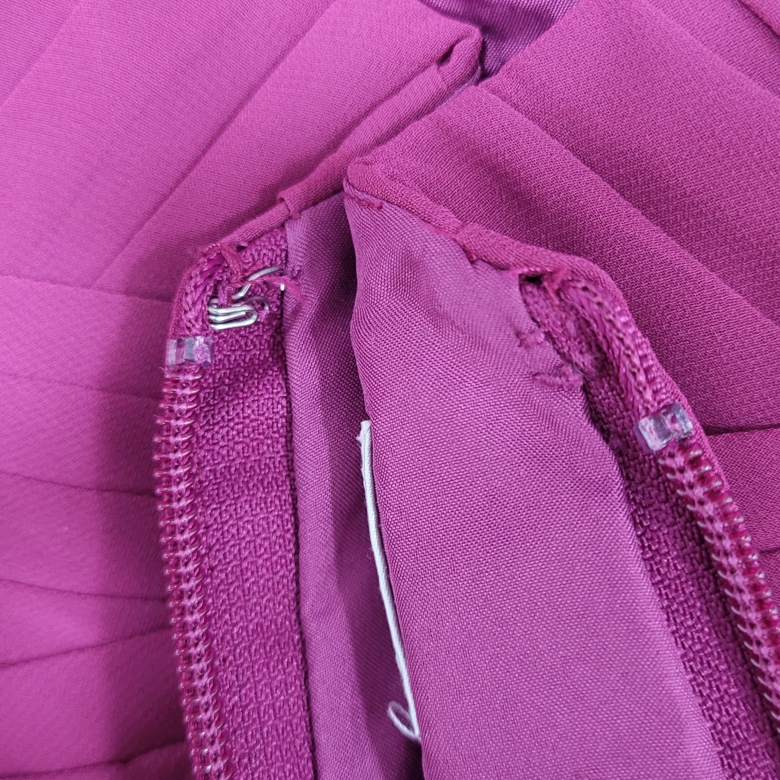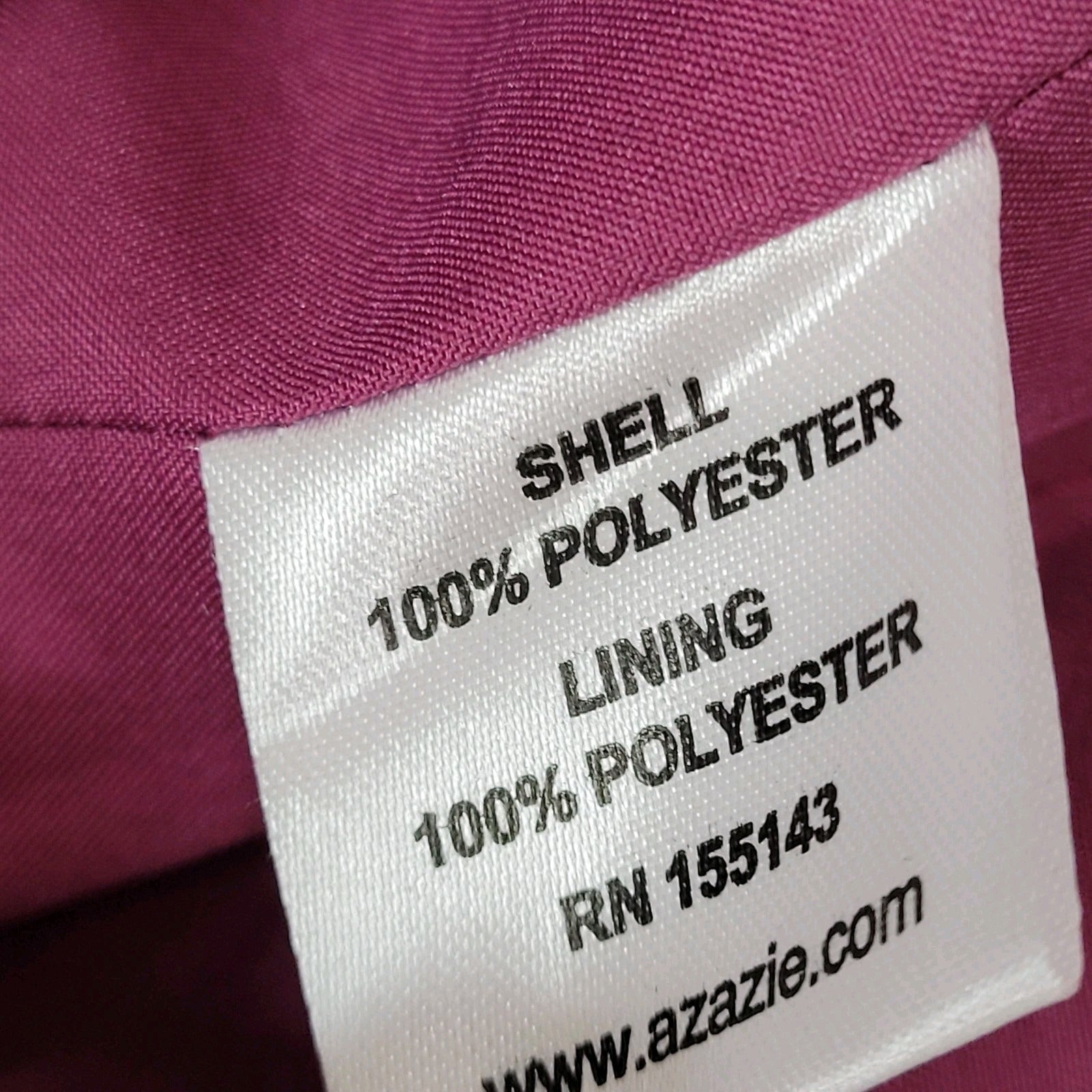 The Azazie Purple Pleated Strapless Backless Bridesmaid Maxi Dress is a stunning gown designed by the brand Azazie. Made of chiffon material in a beautiful purple color, this sleeveless dress features a flattering pleated details and a captivating backless design. The dress comes in size A6, perfect for a formal occasion or as a bridesmaid dress.