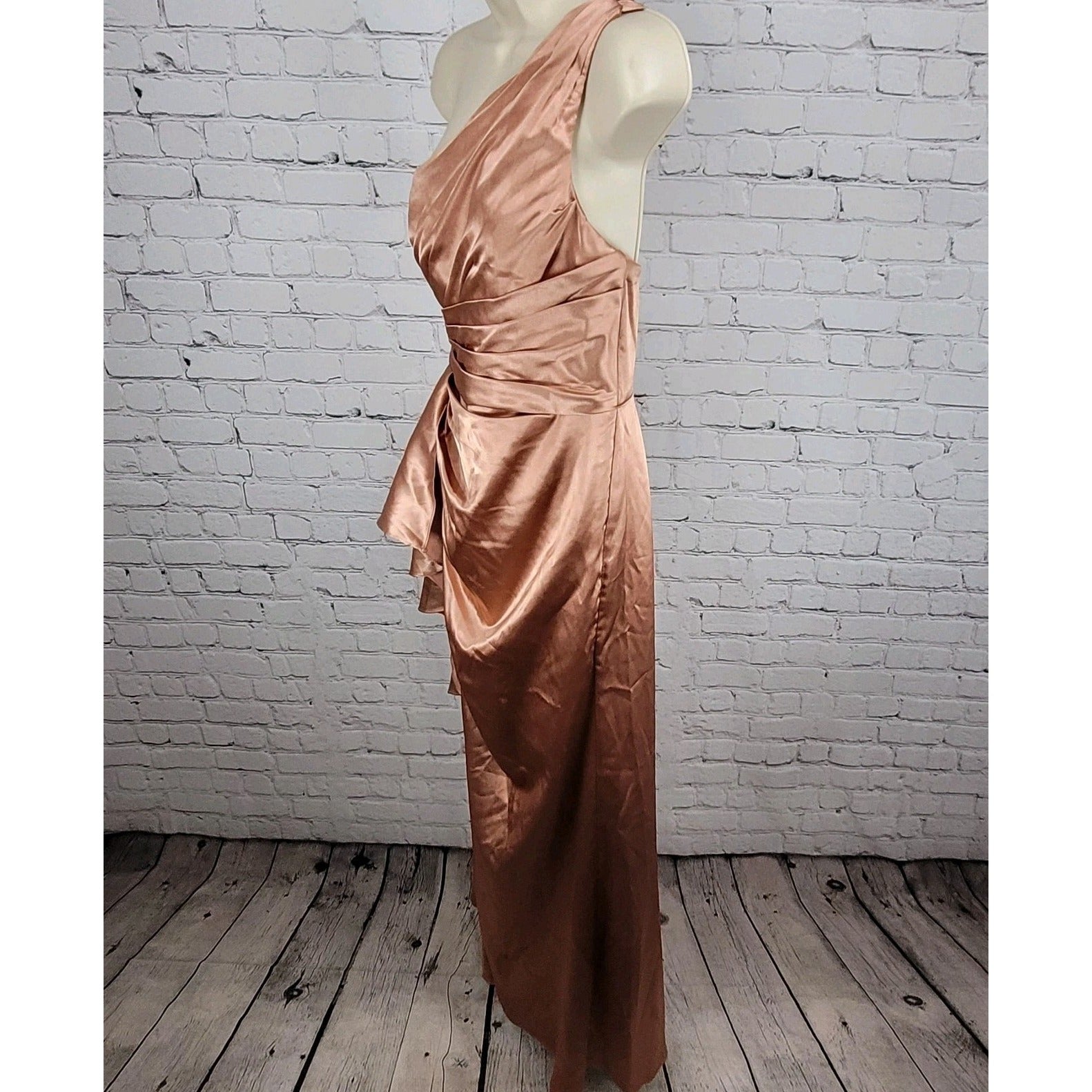 Azazie Rose Gold Pink One Shoulder Pleated Bridesmaid Dress Size C Custom