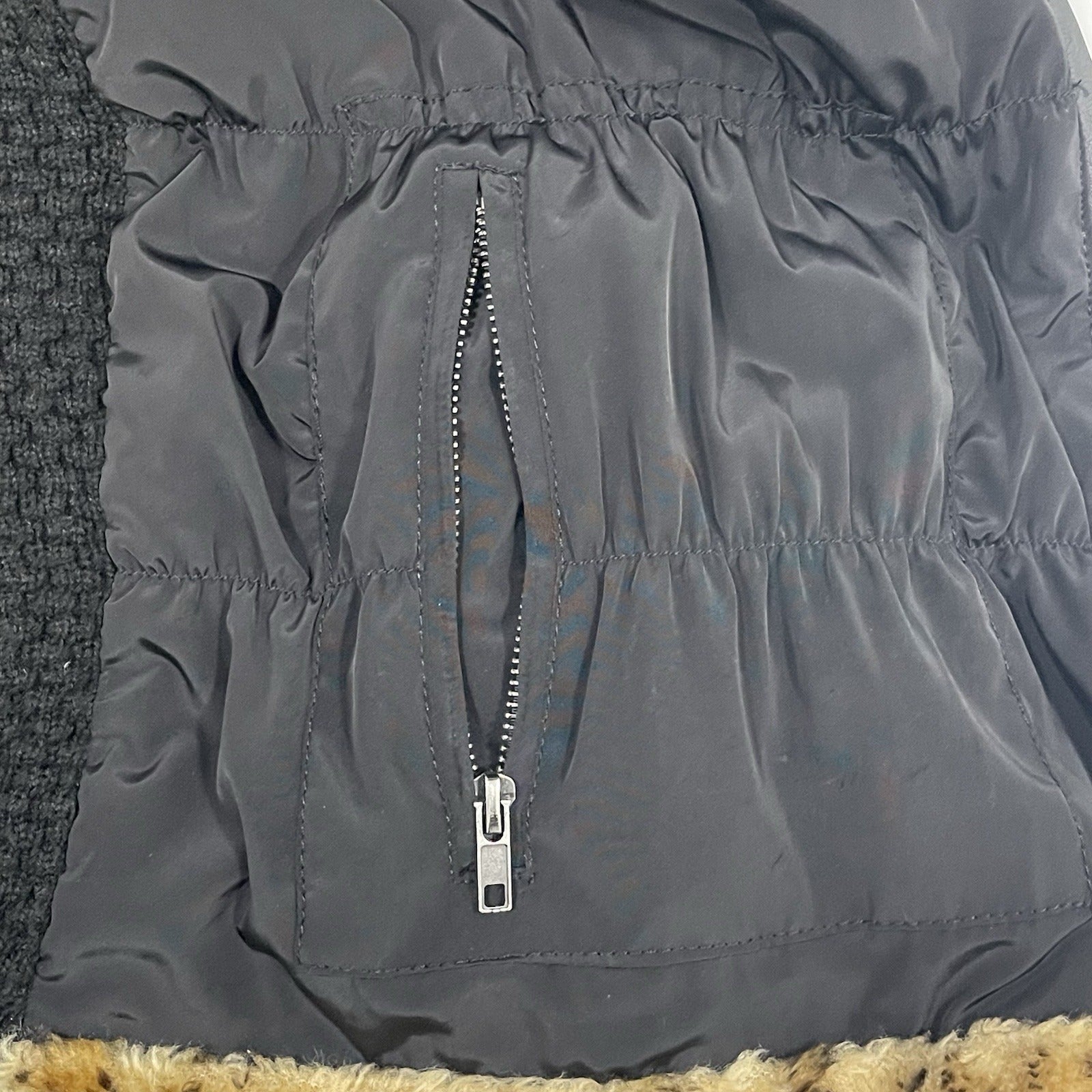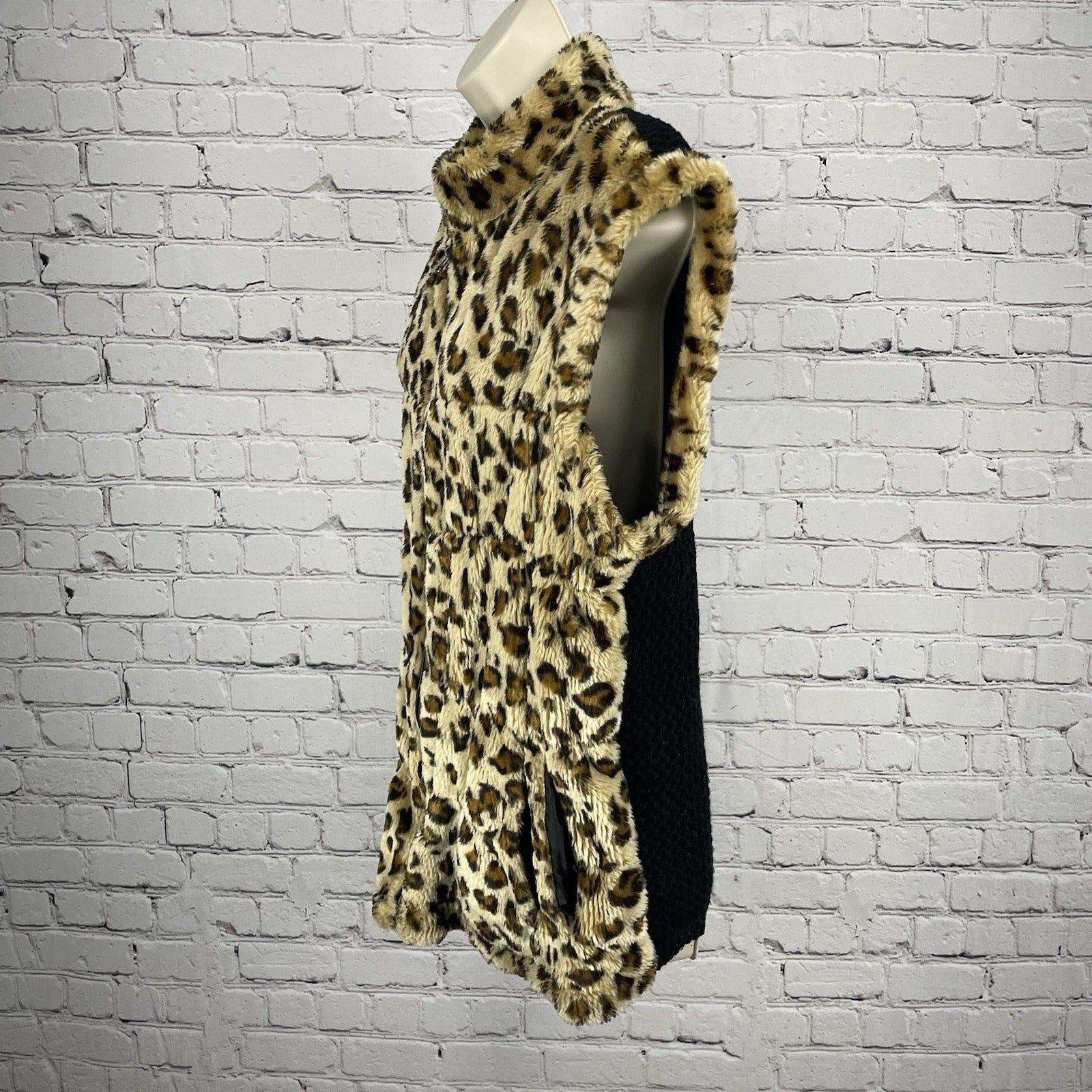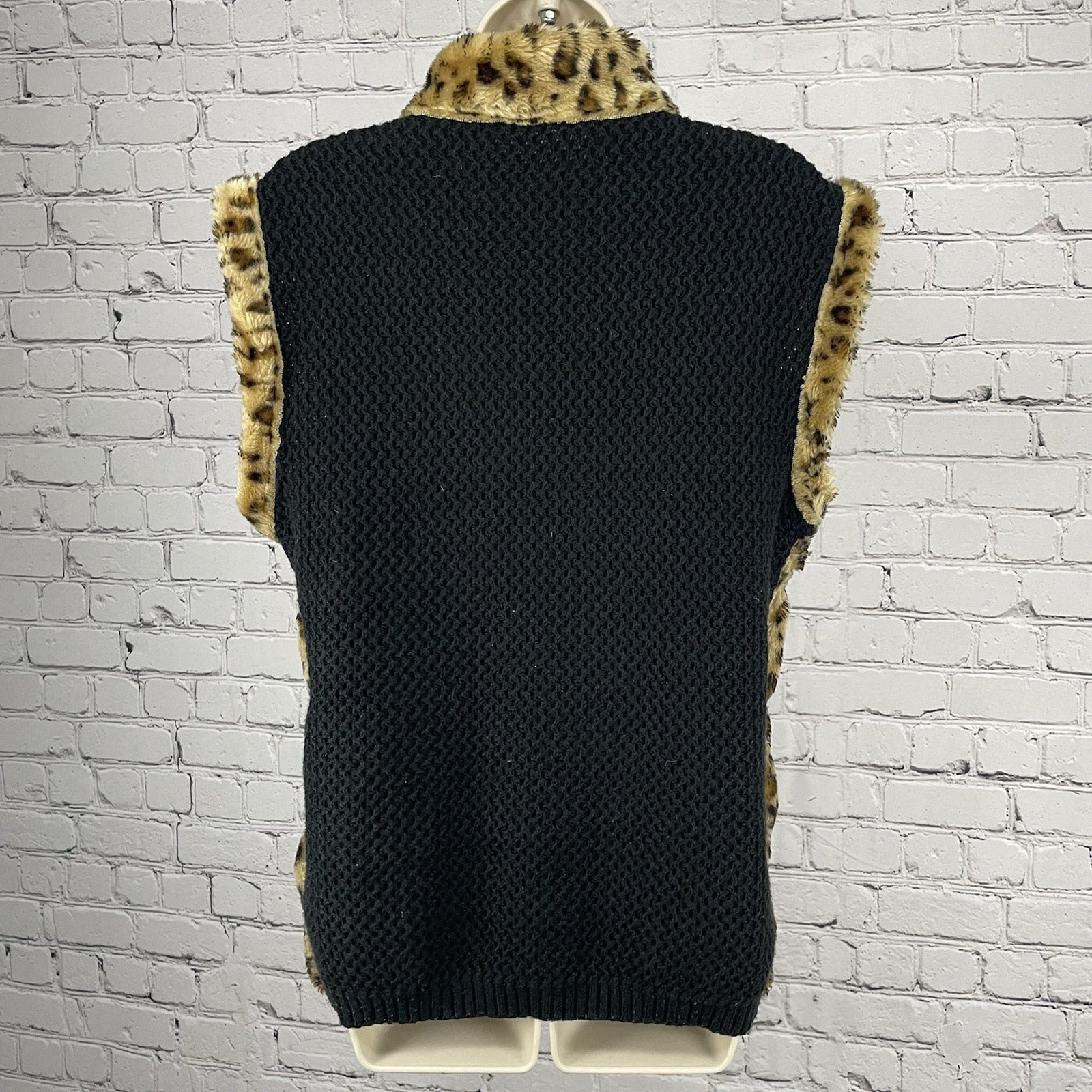 Bagatelle Tan Leopard Faux Fur Zipped Knit Back Vest Pockets Size Medium M