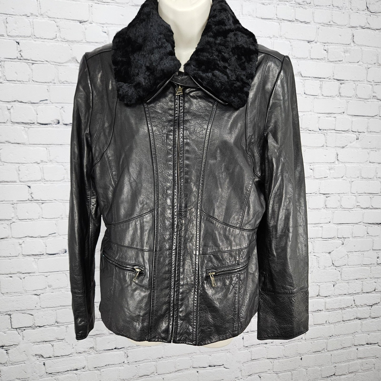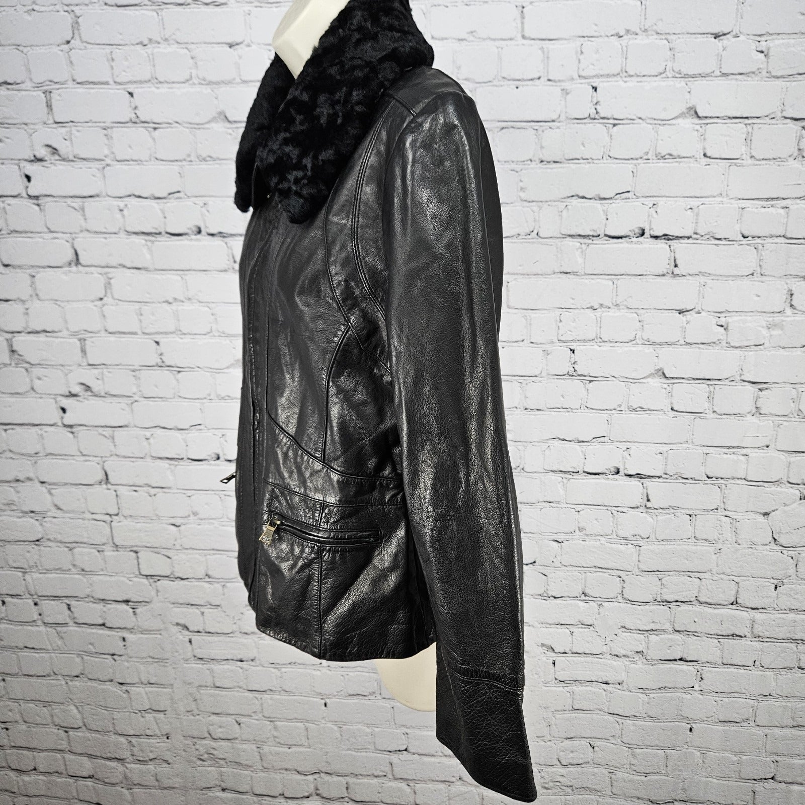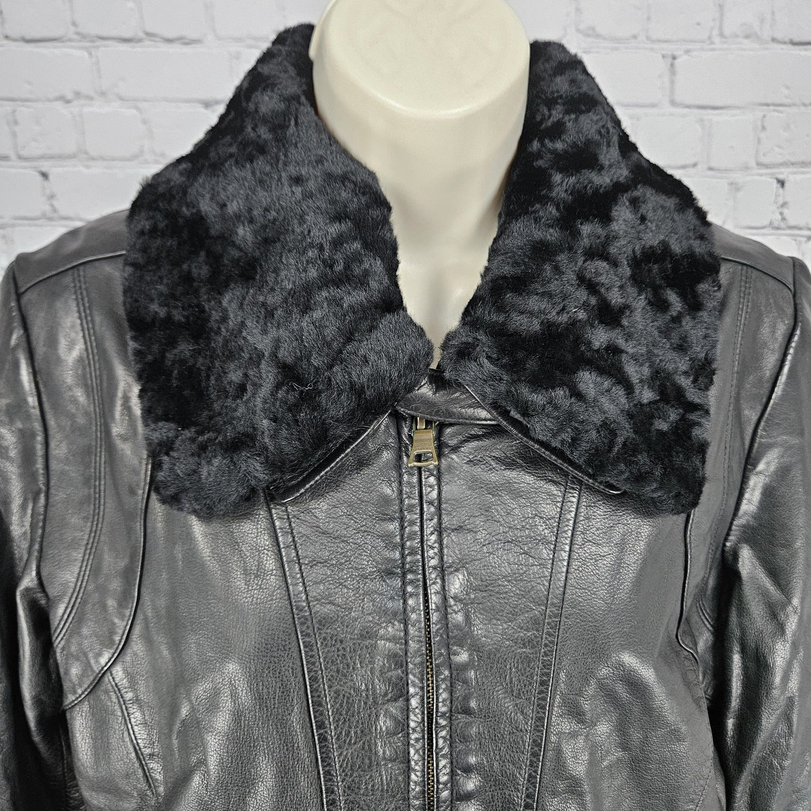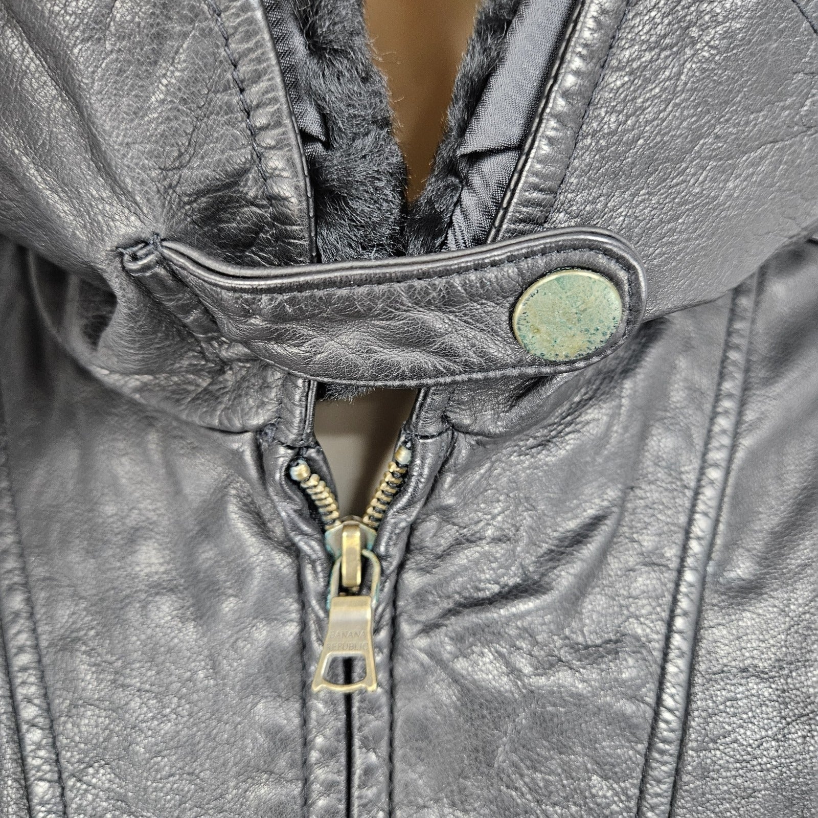 Banana Republic Black Genuine Leather Shearling Lamb Fur Collar Jacket Large L
