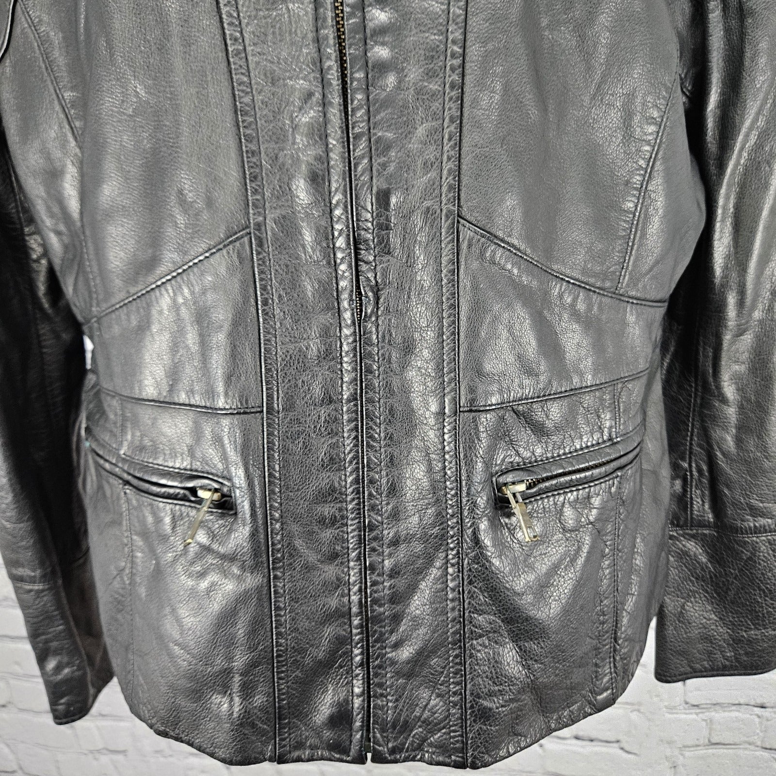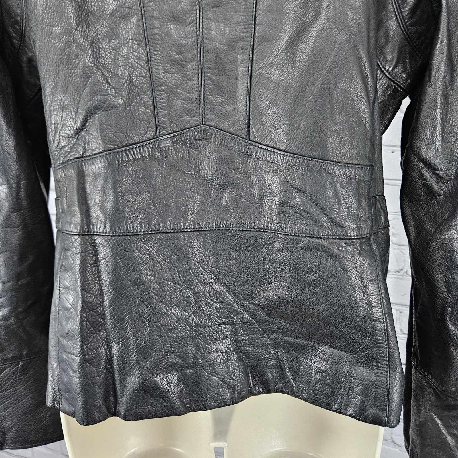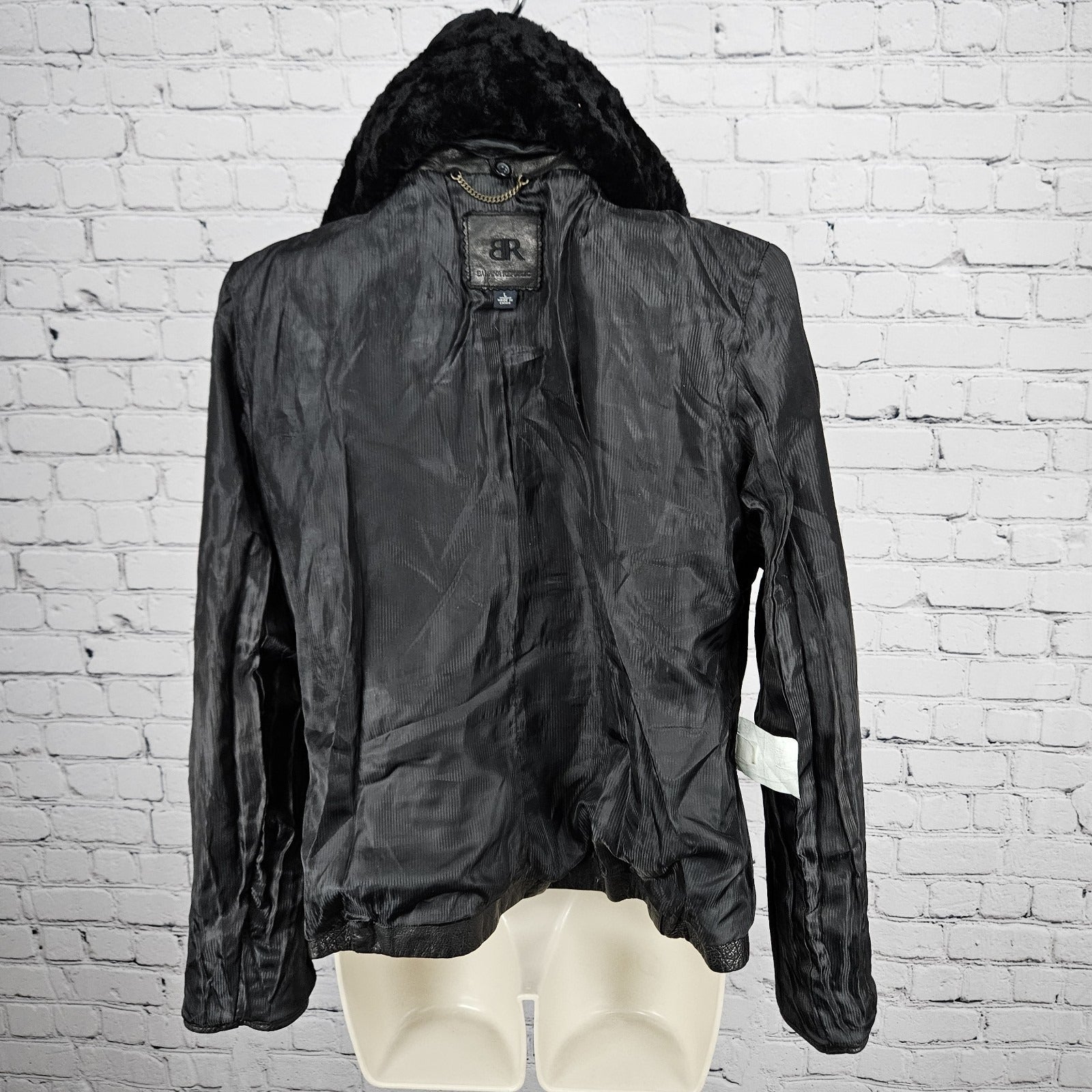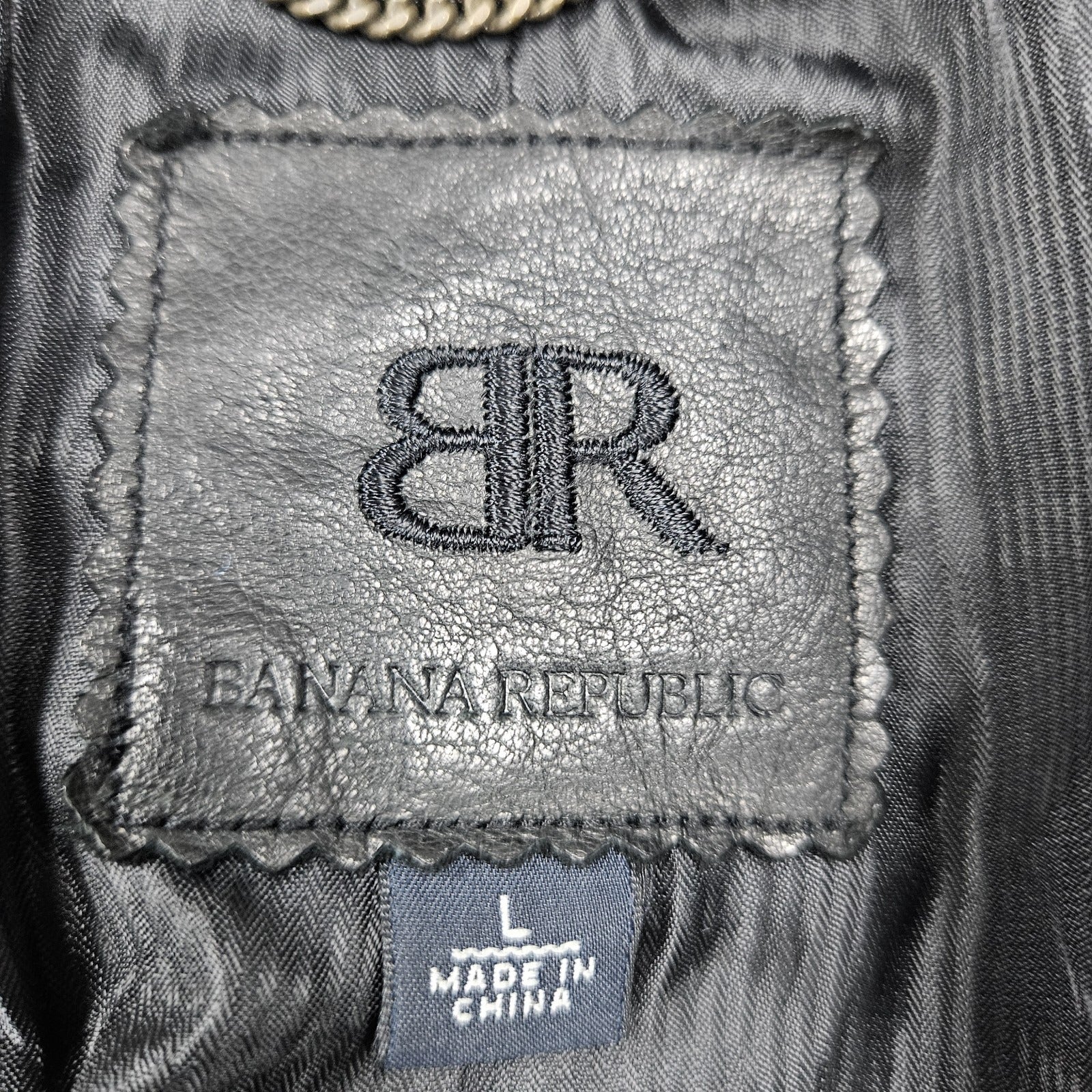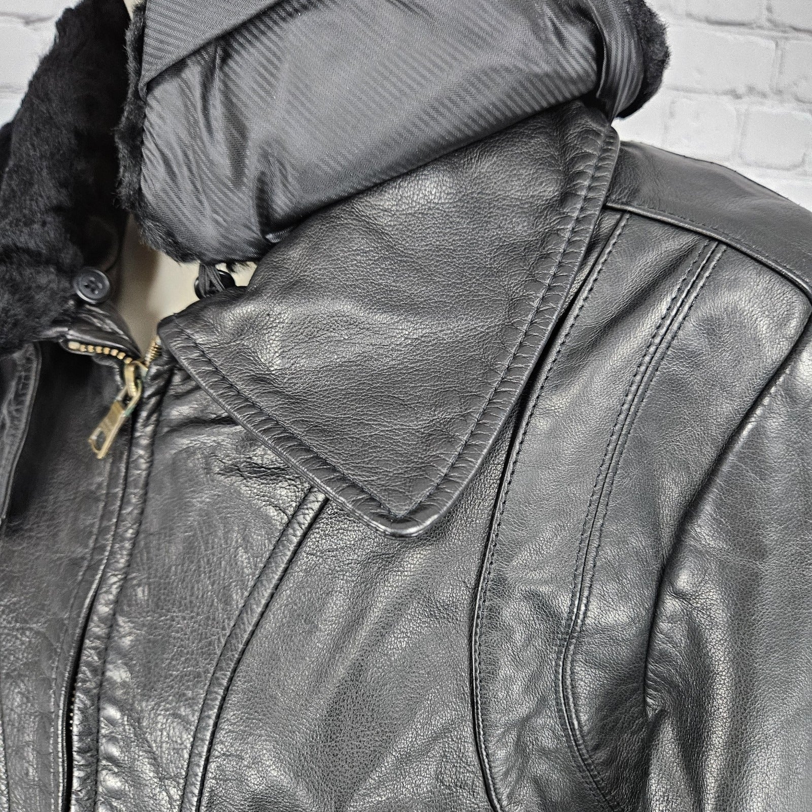 Banana Republic Black Genuine Leather Shearling Lamb Fur Collar Jacket Large L
