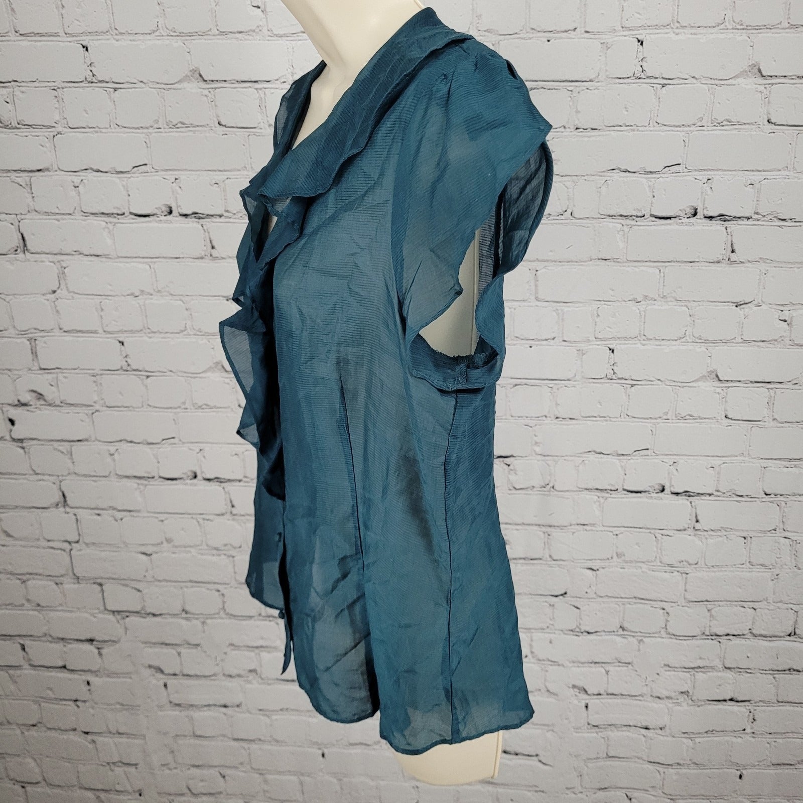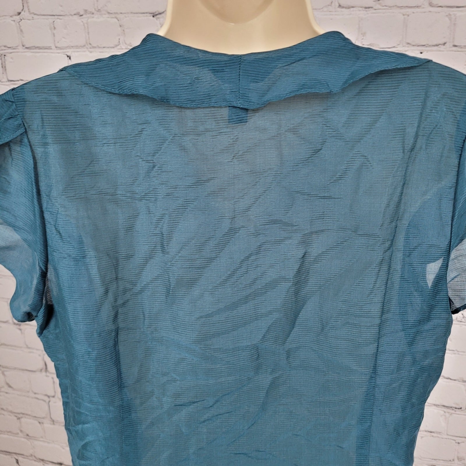 Banana Republic Blue Silk Blend Semi Sheer Buttoned Short Sleeve Blouse Size PL
