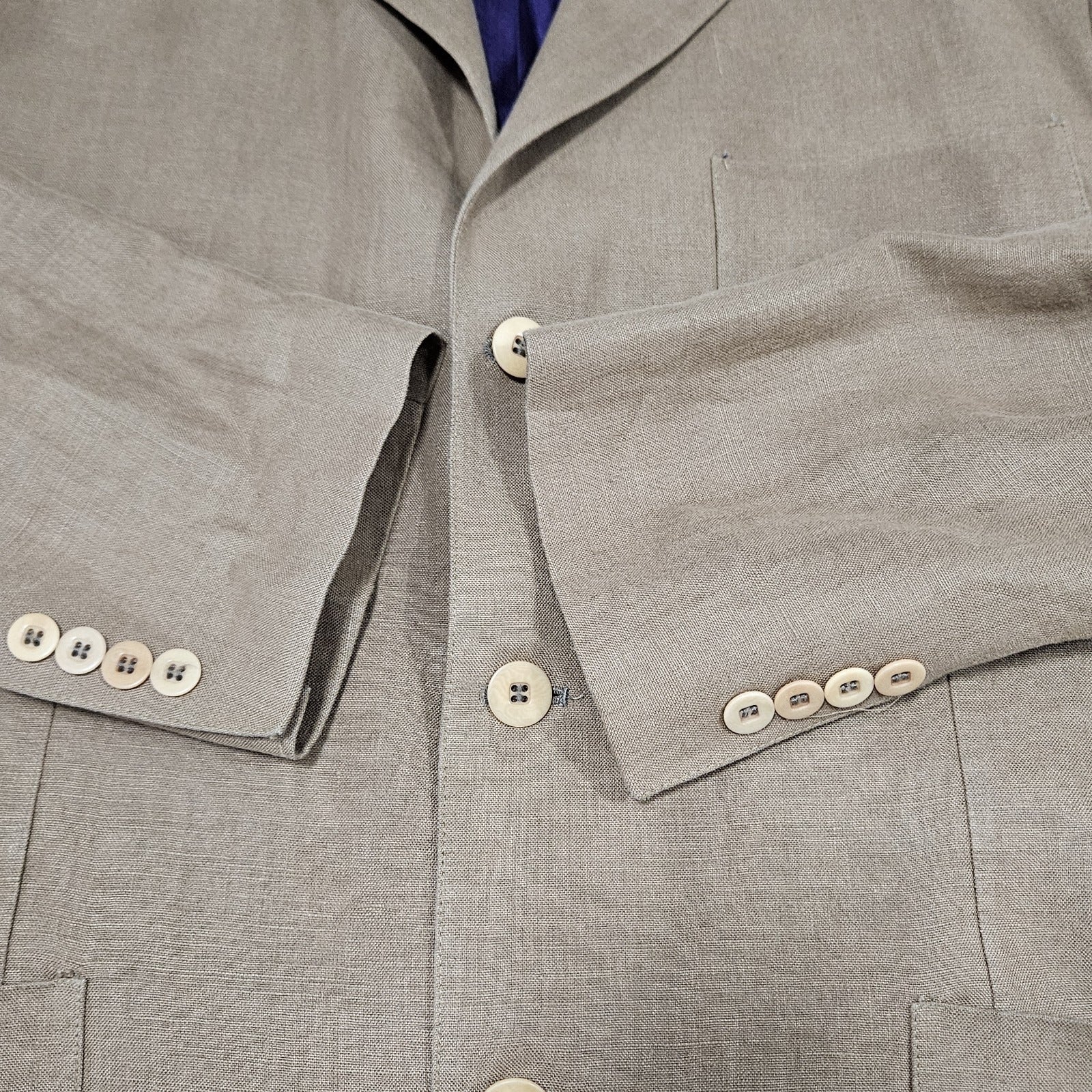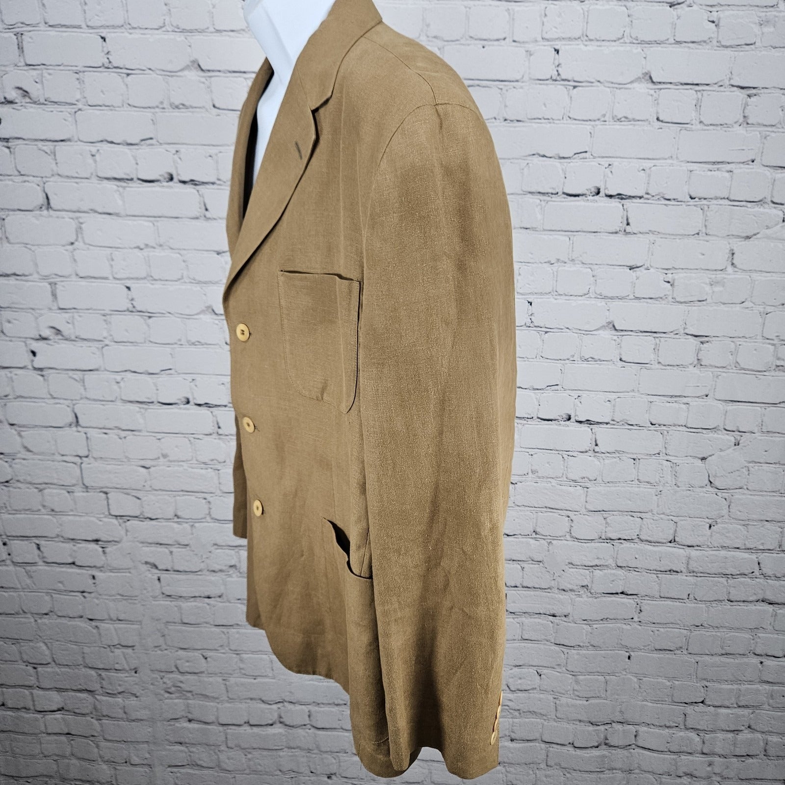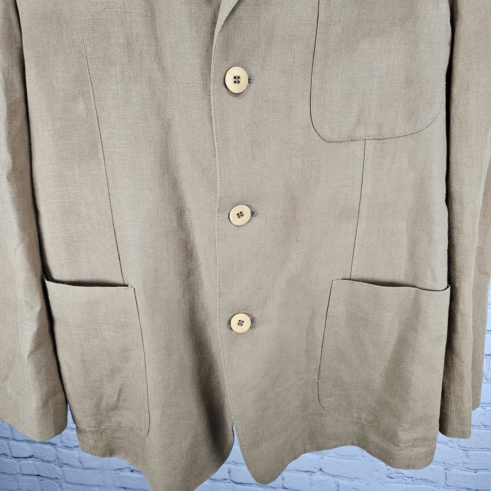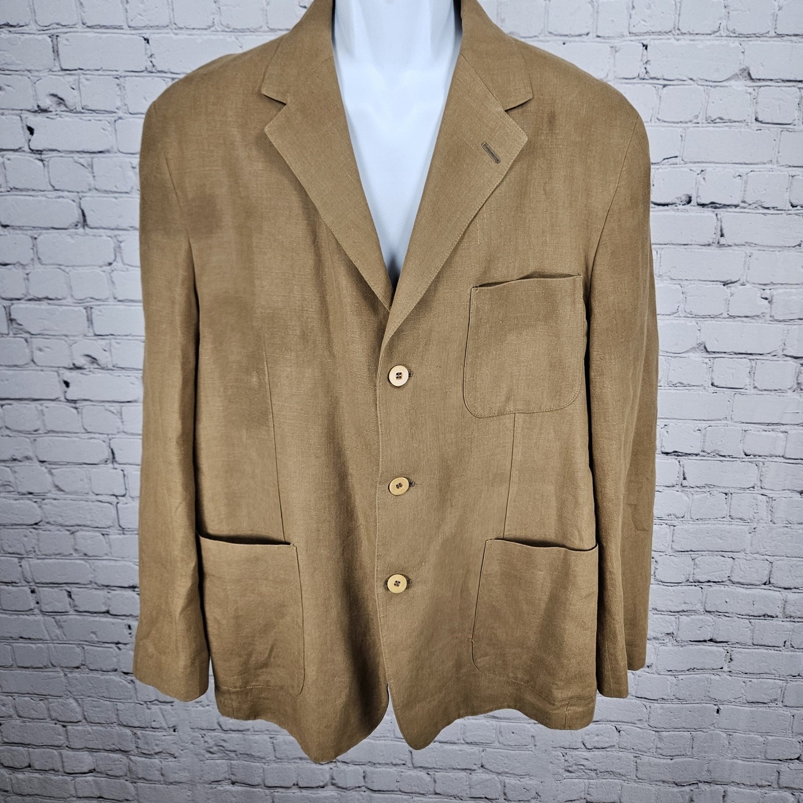 Barry Bricken Weekend Brown 100% Linen 3 Button Vented Blazer Sport Coat 42R