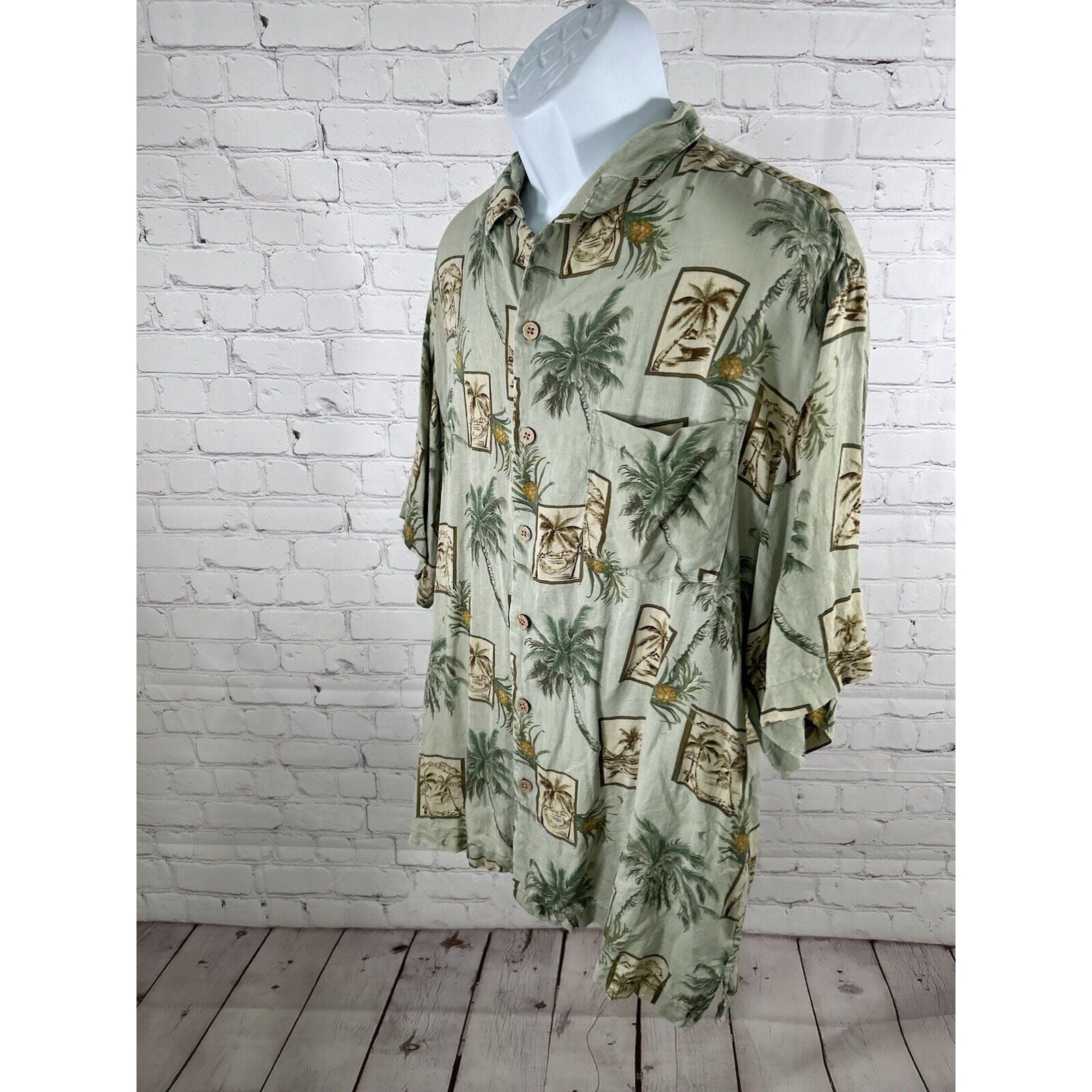 Bermuda Bay 100% Silk Hawaiian Tropical Button Front Shirt Short Sleeves Mens L