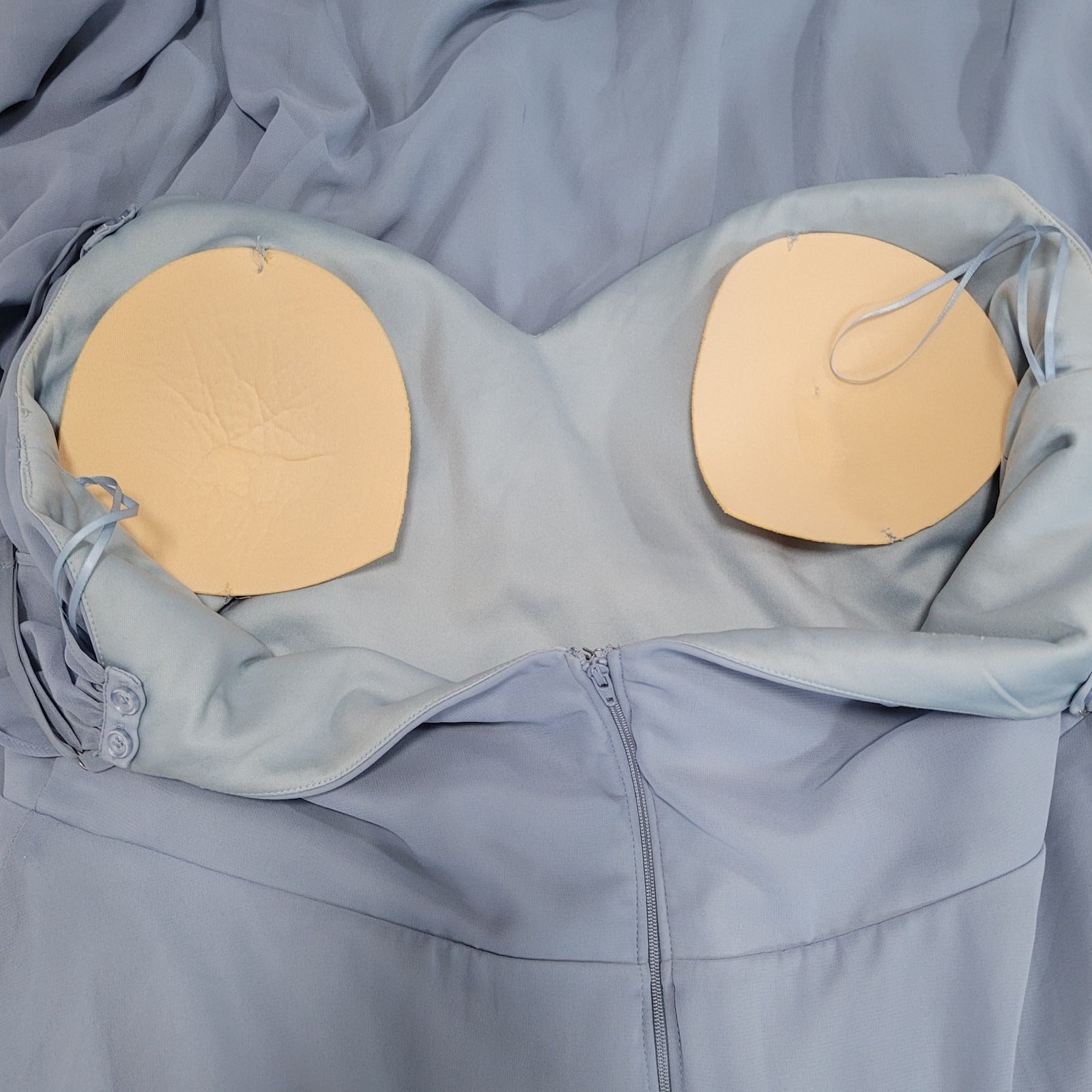 Birdy Grey Blue Chiffon Strappy Removable Sleeves Bridesmaid Dress Size XXL