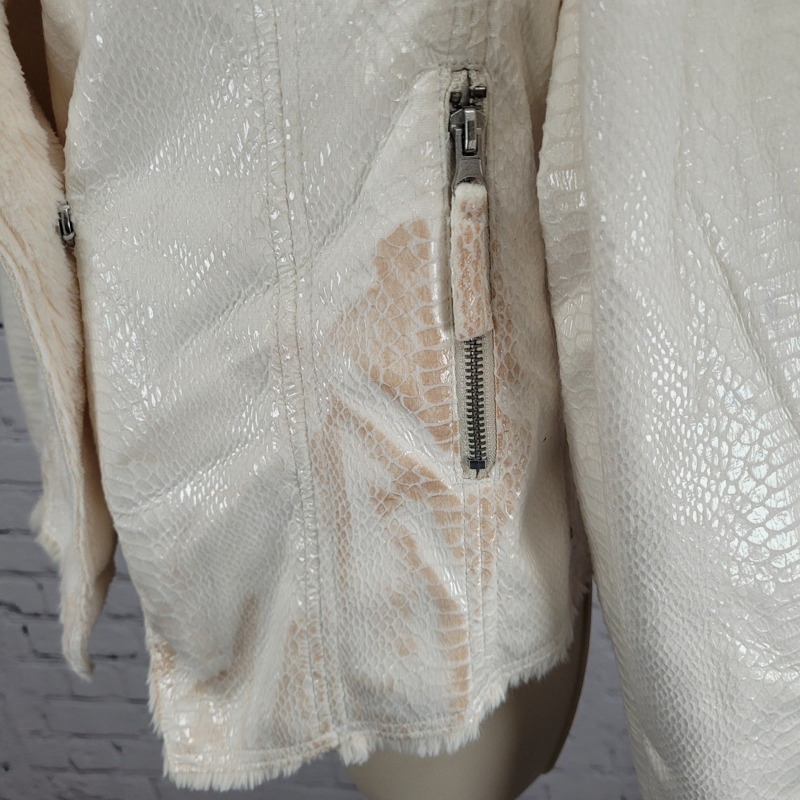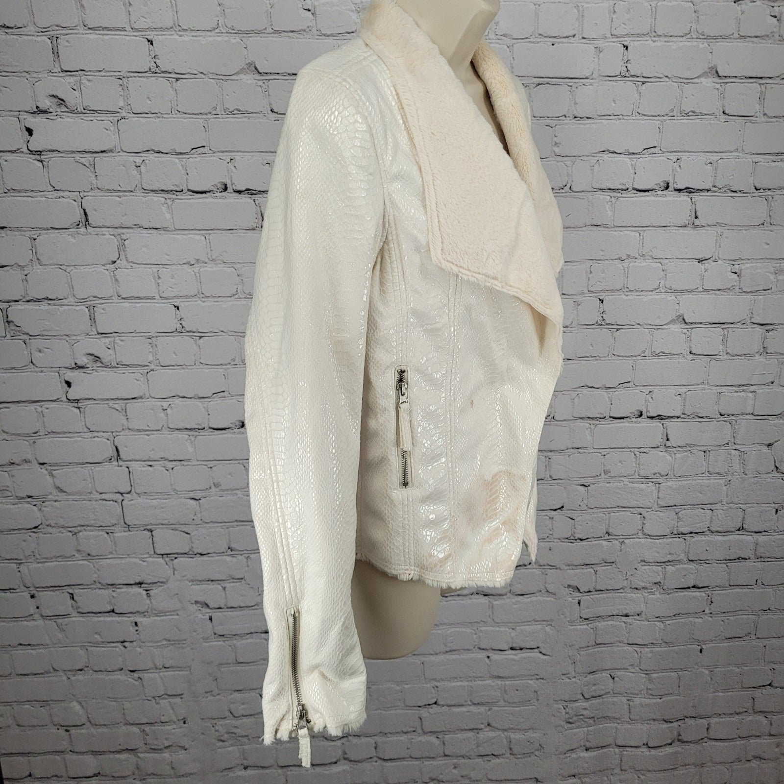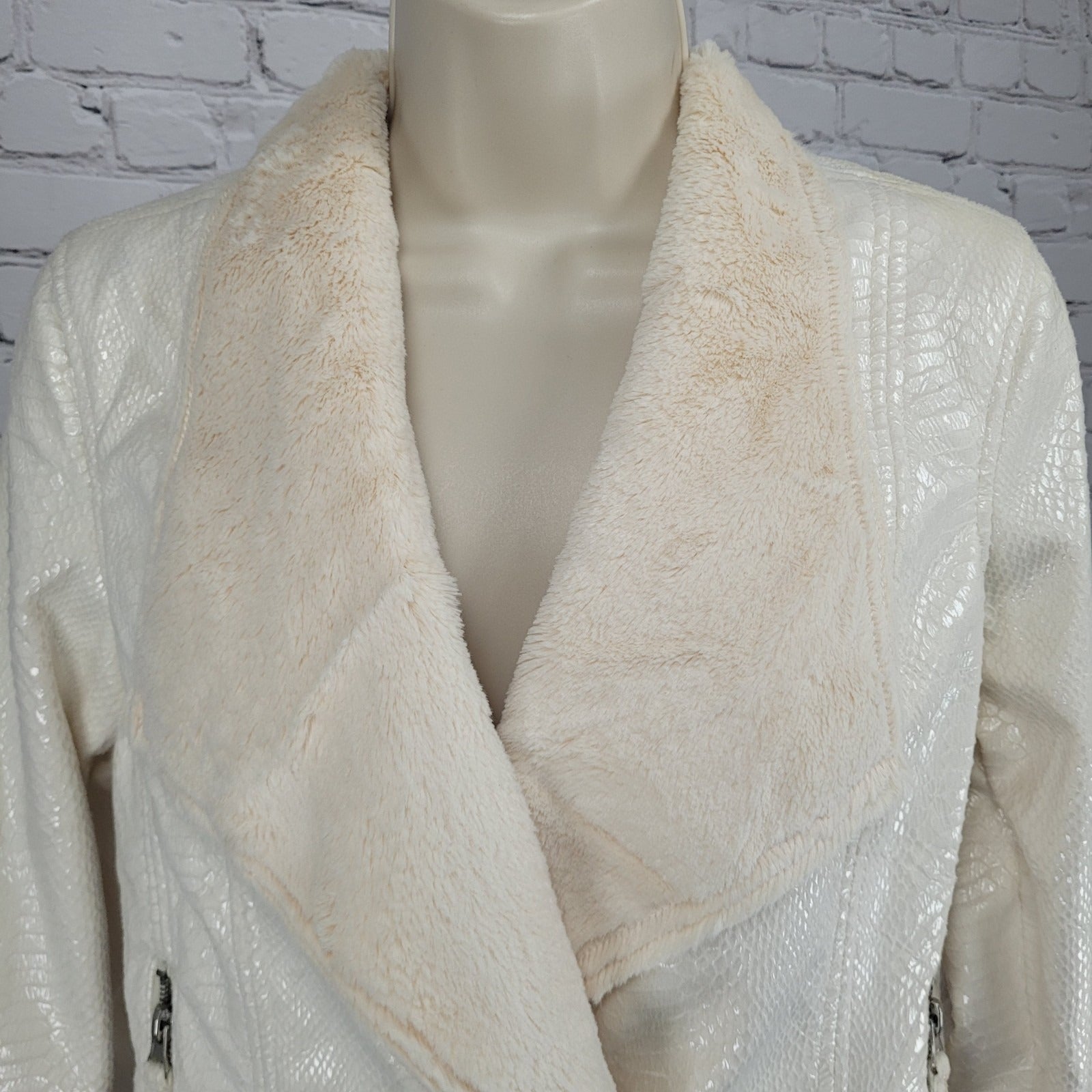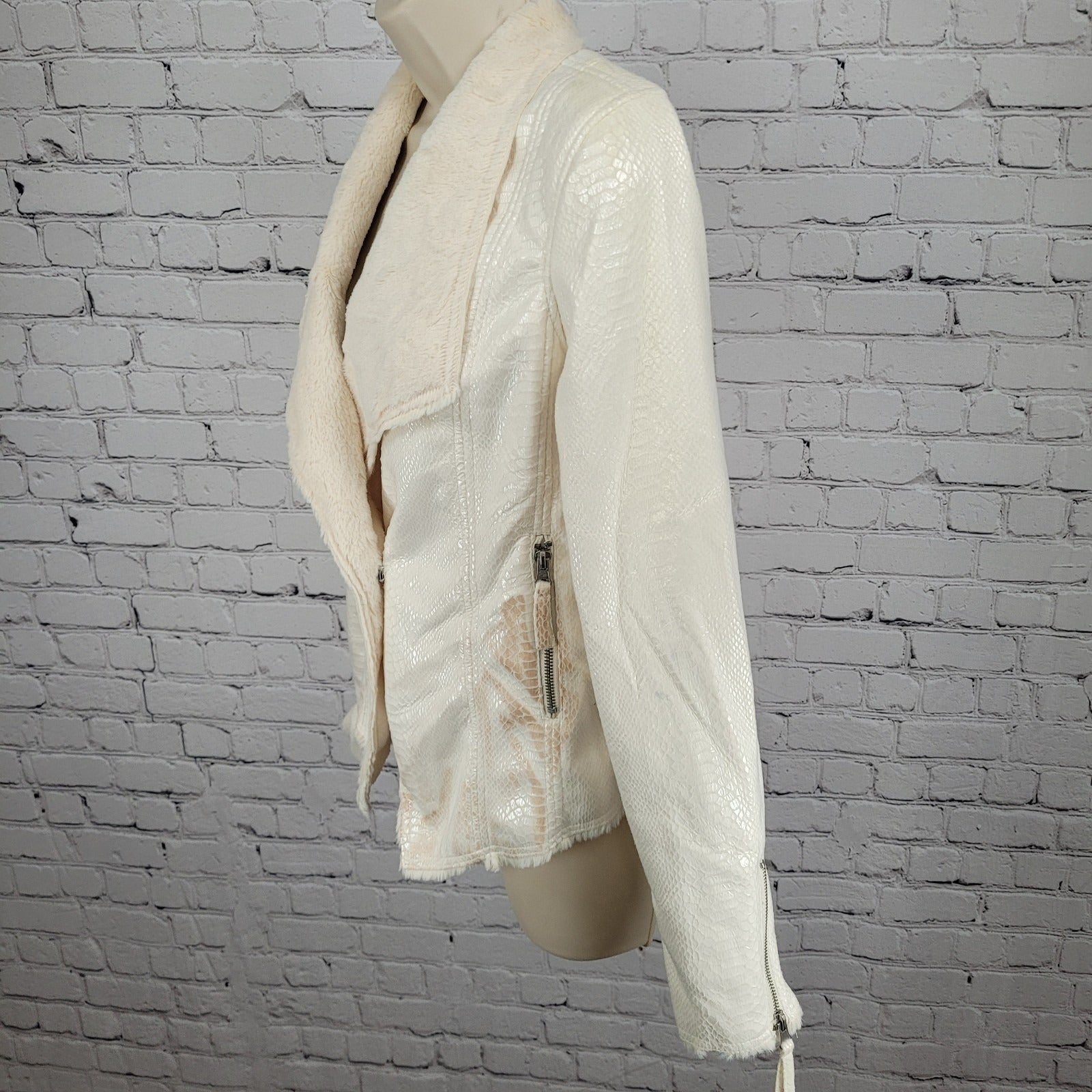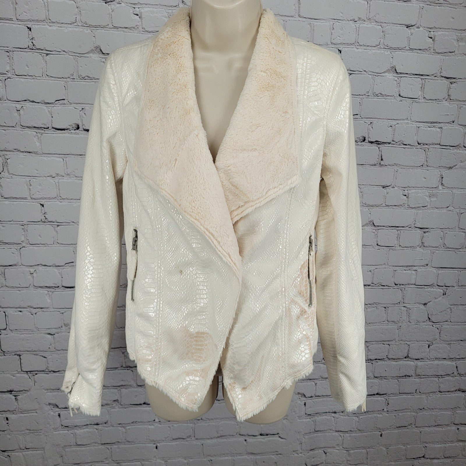 BKE Ivory Animal Print Soft Faux Fur Lined Snap Front Moto Jacket Size Small S