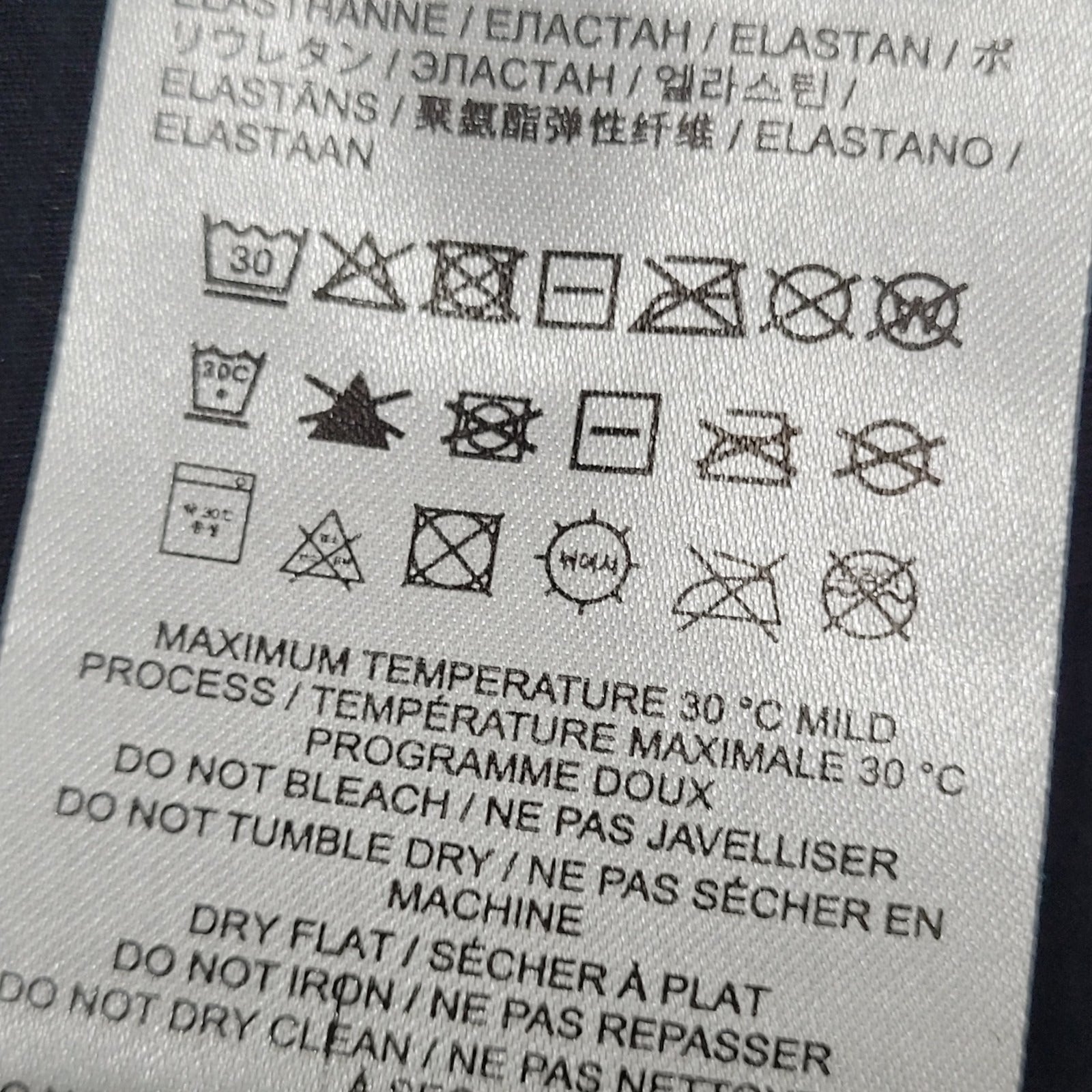 Missing zipper slider, light staining on arm and small pen mark on cuff, as pictured.