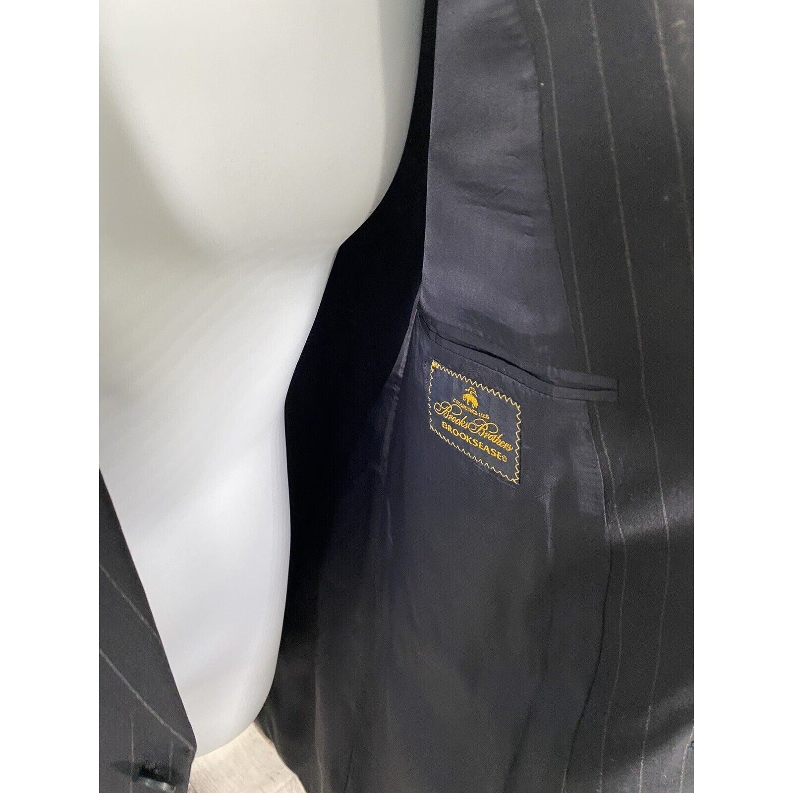 Brooks Brothers Brooksease Black Wool Striped 2 Button Blazer Jacket 43R.