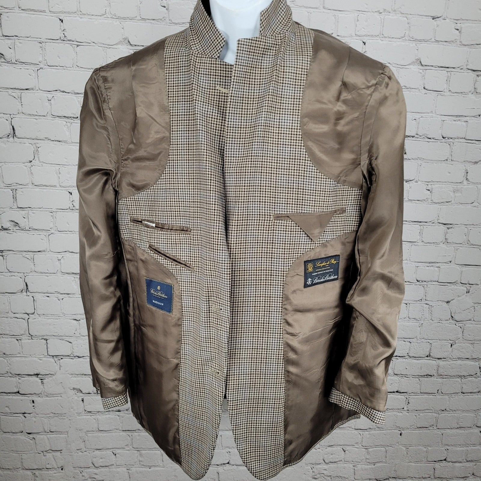 Brooks Brothers Brown Blue 100% Wool Lanificio Madison Fit Blazer Sport Coat 42R