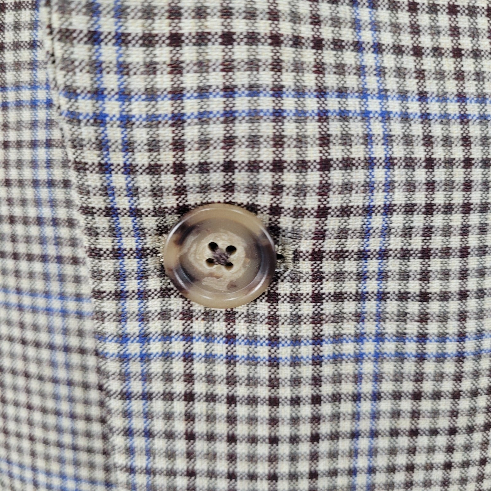This Brooks Brothers Brown Blue 100% Wool Lanificio Di Pra Blazer Sport Coat 42R is a sophisticated and classic addition to any man's wardrobe. Made with high-quality wool and featuring a check pattern, it is perfect for various occasions including travel, weddings, parties, casual outings, and business events. The jacket has a regular length, single vented back, four-button sleeve button style, and a two-button front closure. With a notch lapel and inner pockets, this sport coat exudes timeless style and elegance.