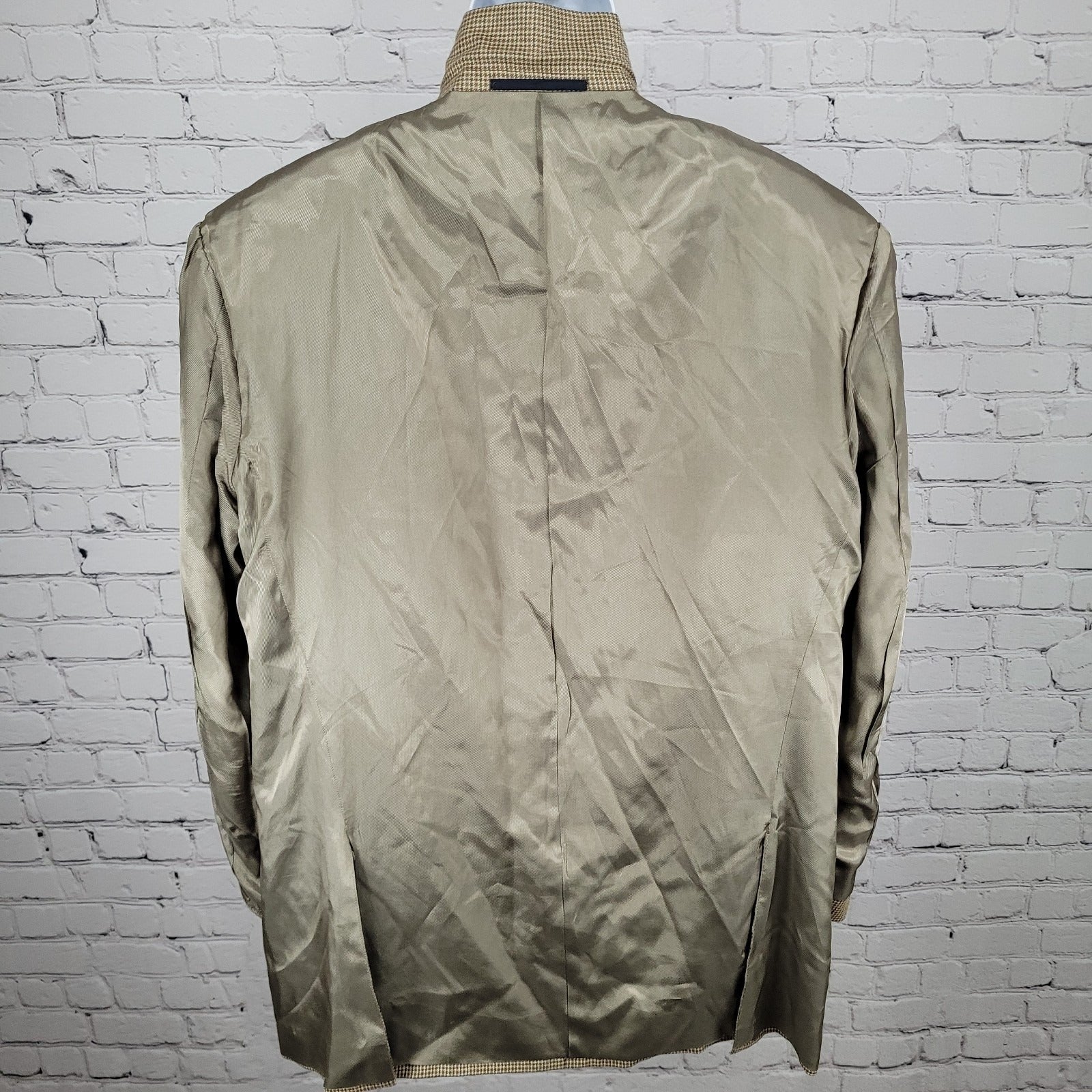 Burberry Tan Silk Wool Houndstooth 3 Button Blazer Sport Coat USA Made Size 44L