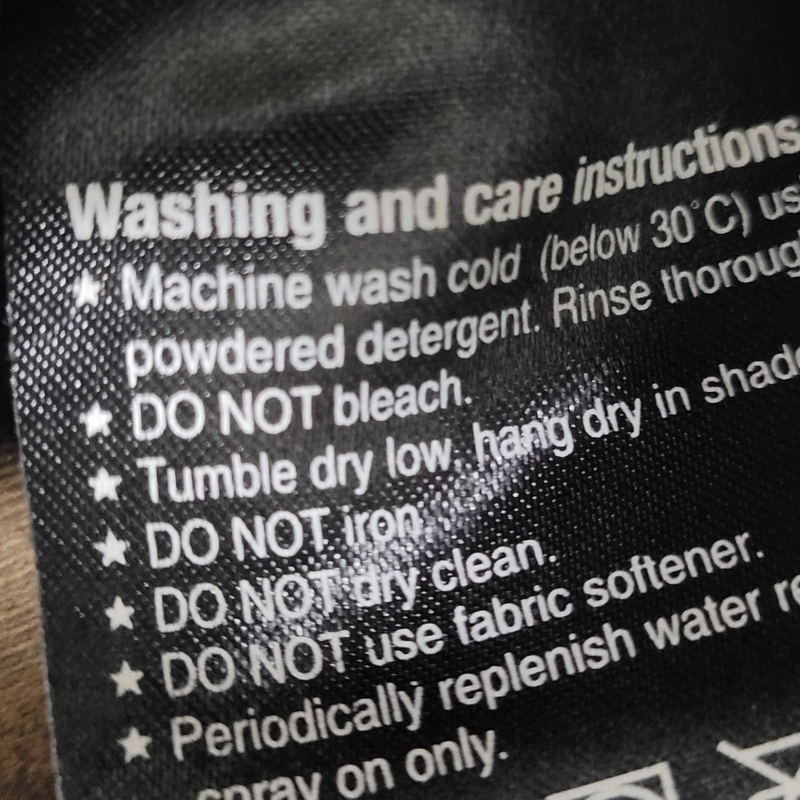 Scuffing on upper front near pocket, tear on front lower left leg, and wear to back bottom hem, as pictured.