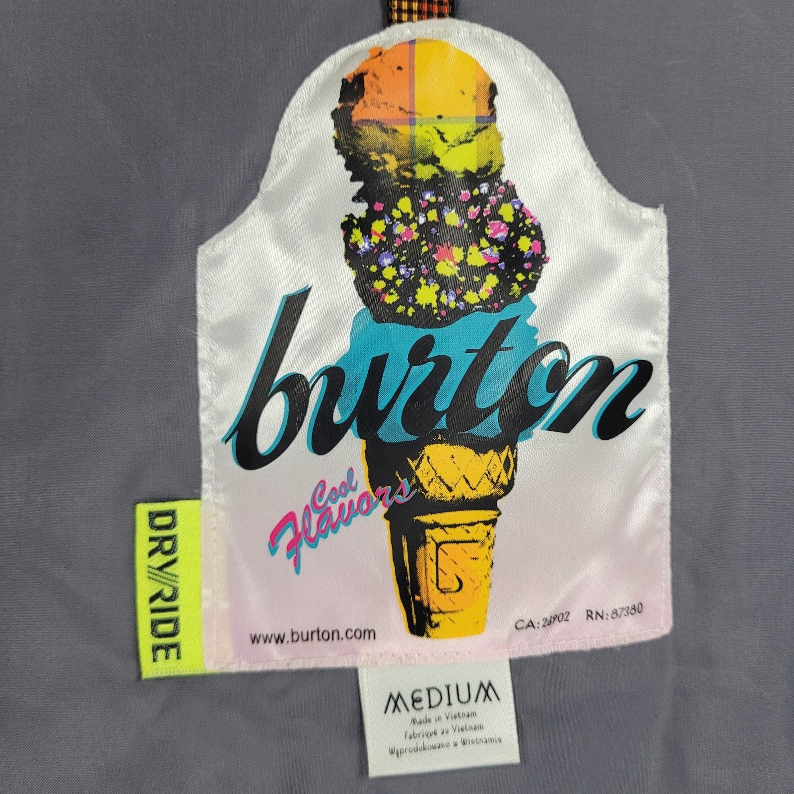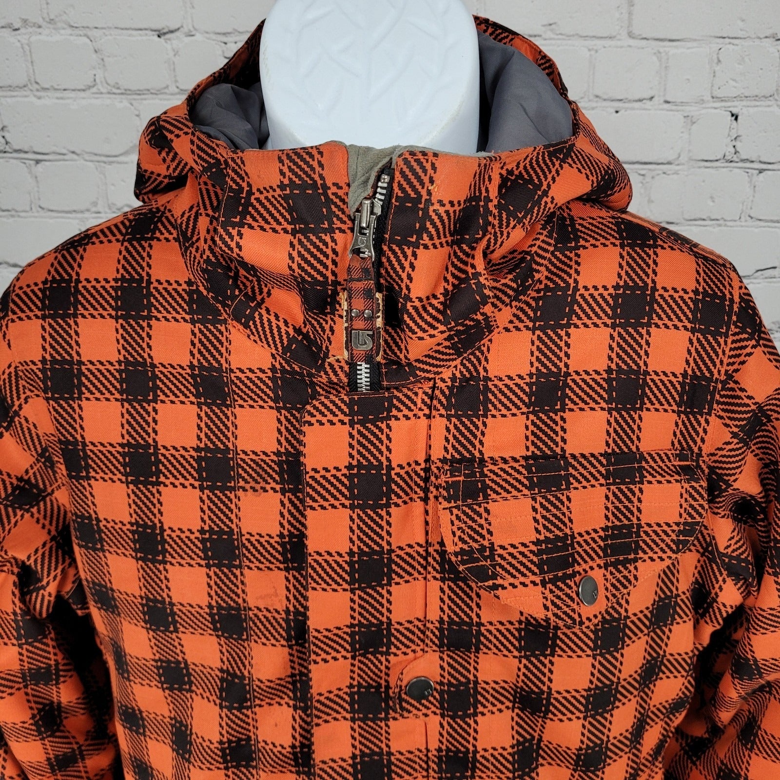 Burton DryRide Orange Check Hooded Insulated Full Zip Snowboard Jacket Medium M