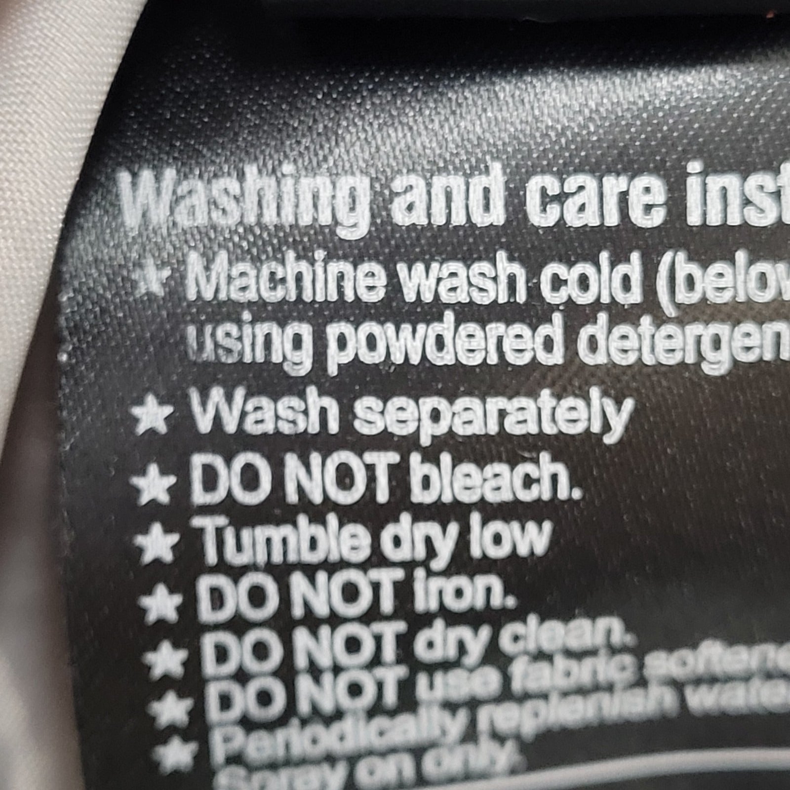 Light discoloration & staining throughout, heavier on front left thigh & knee, back pockets and back bottom hem, as pictured.
