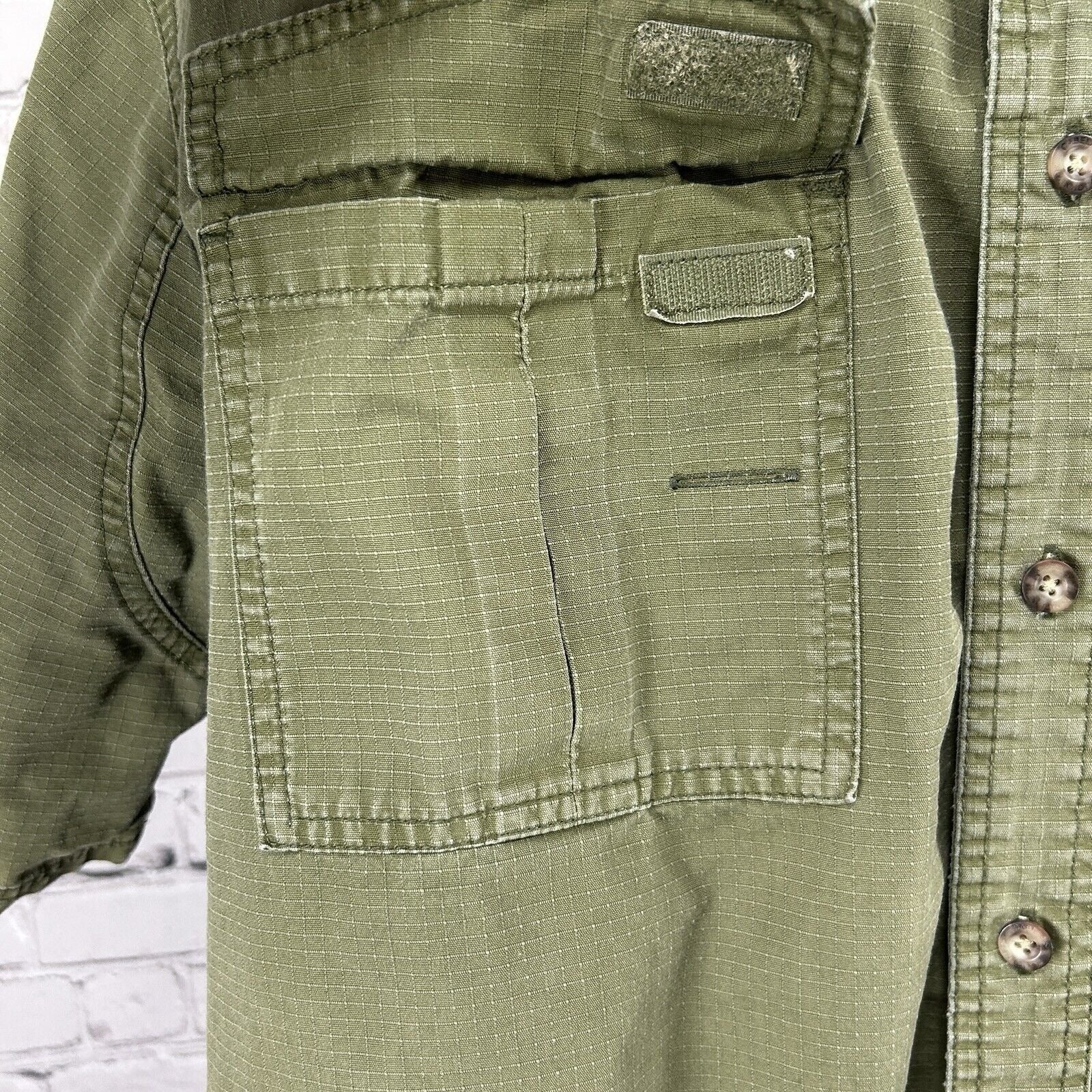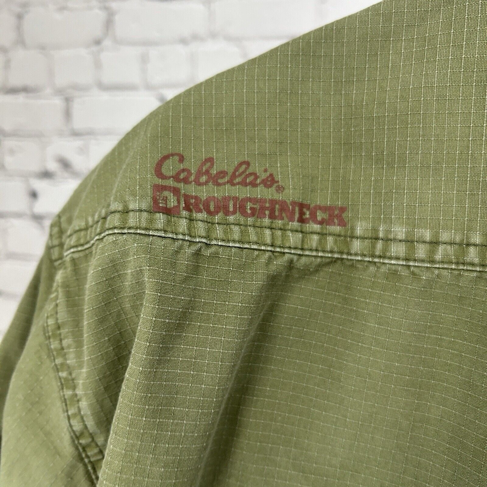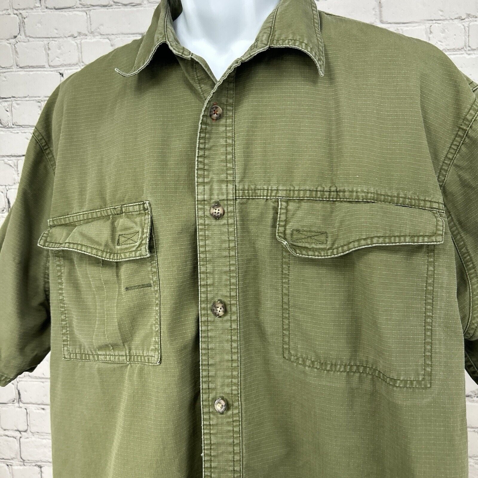 Cabelas Green Roughneck Button Up Pocket Outdoor Short Sleeve Shirt Mens Size XL