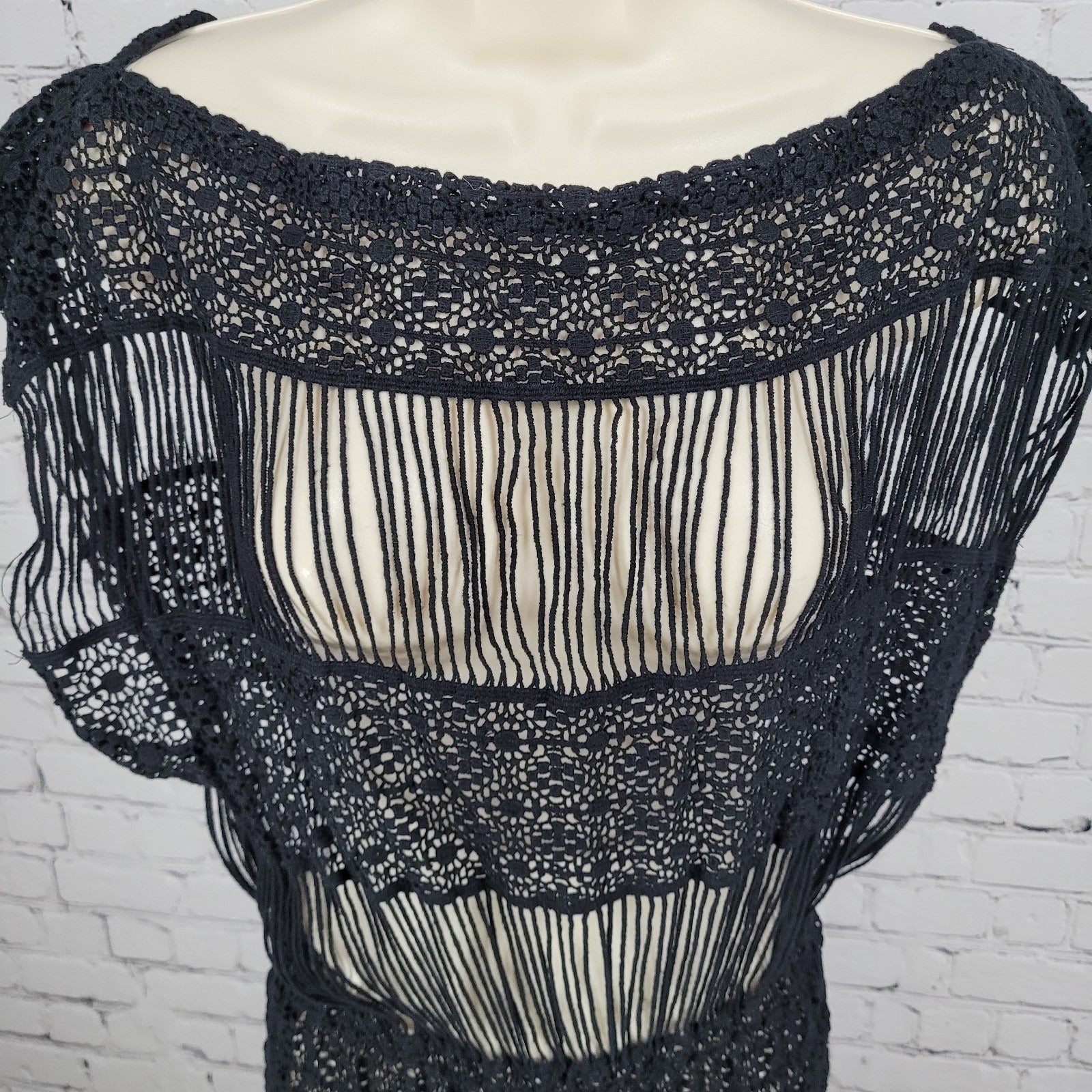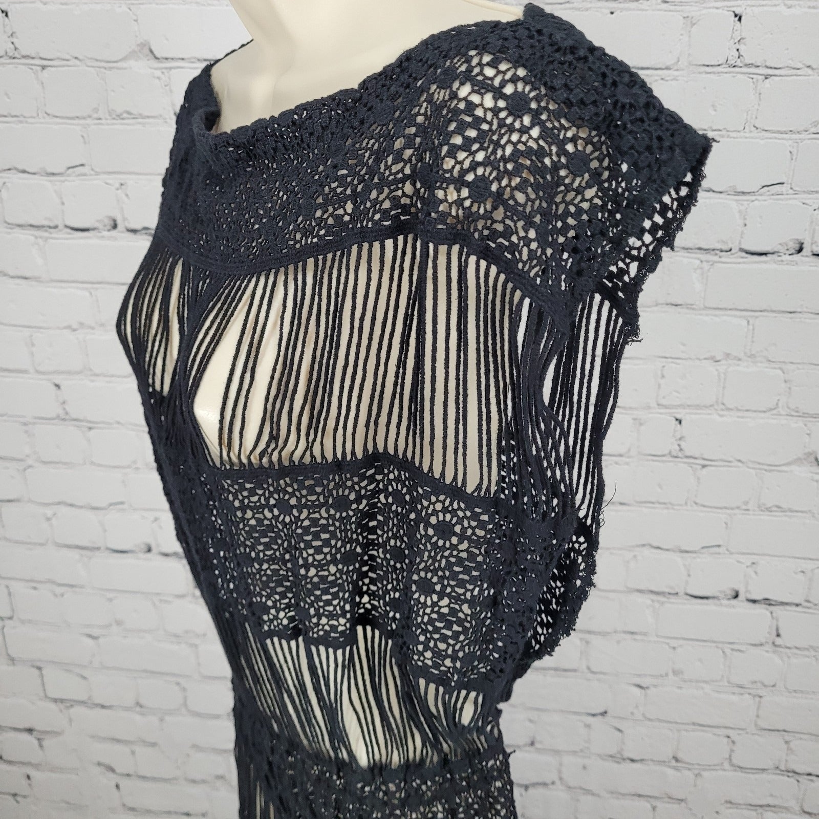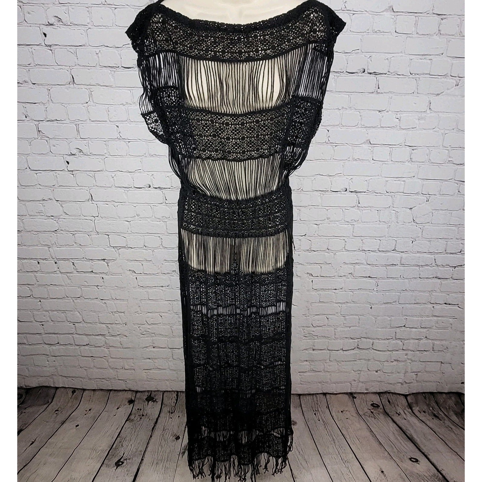 Callahan x Anthropologie Black Crochet Sheer Boho Maxi Cover Up Dress Small S