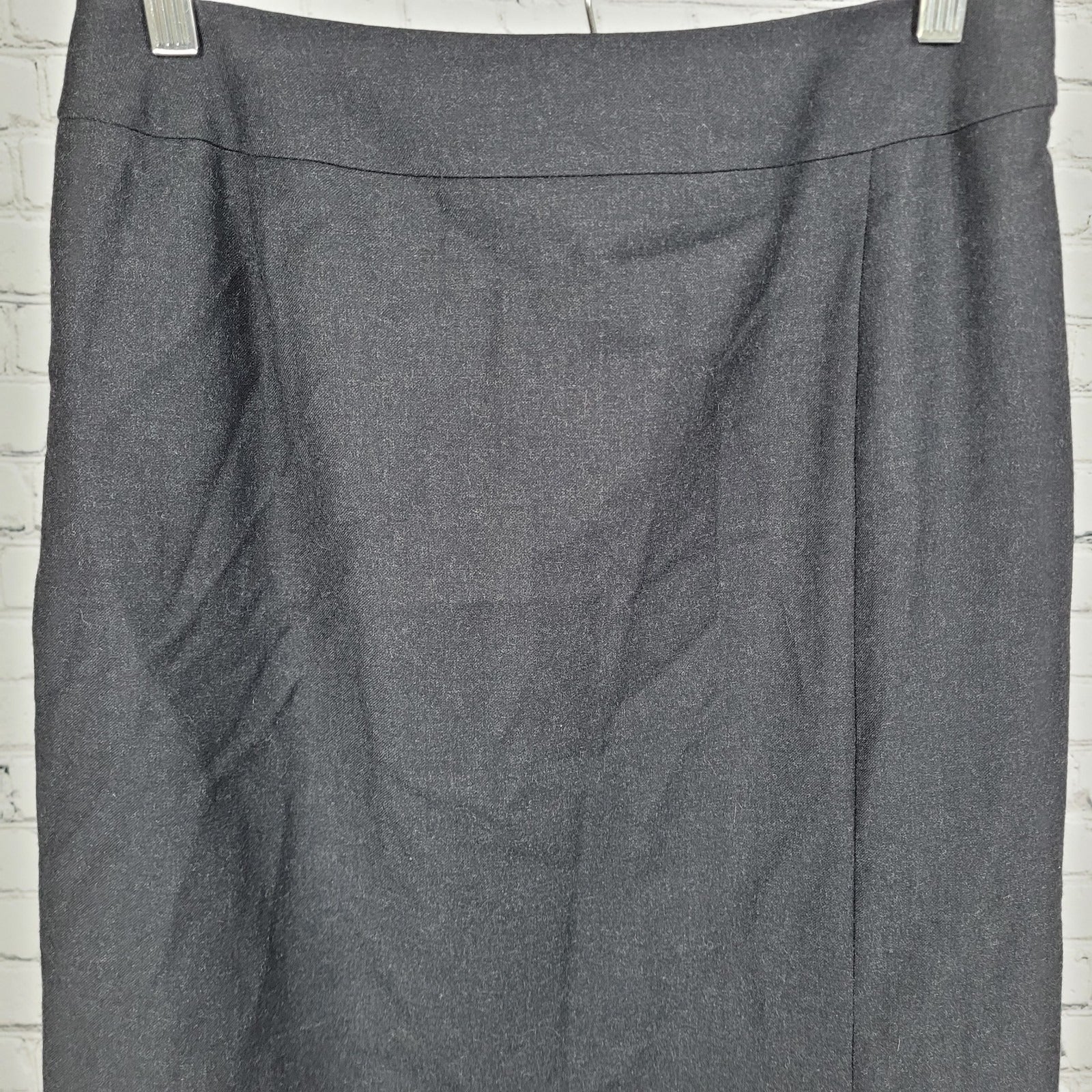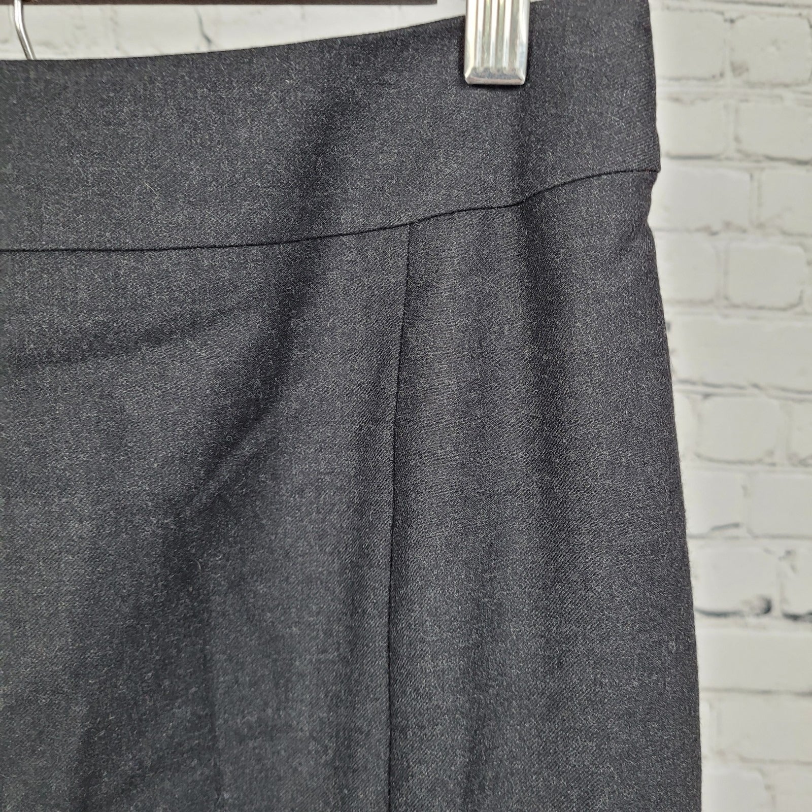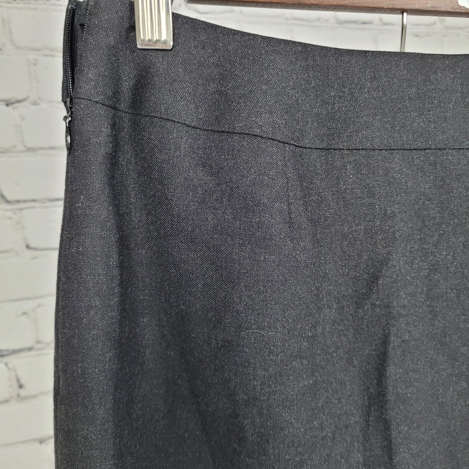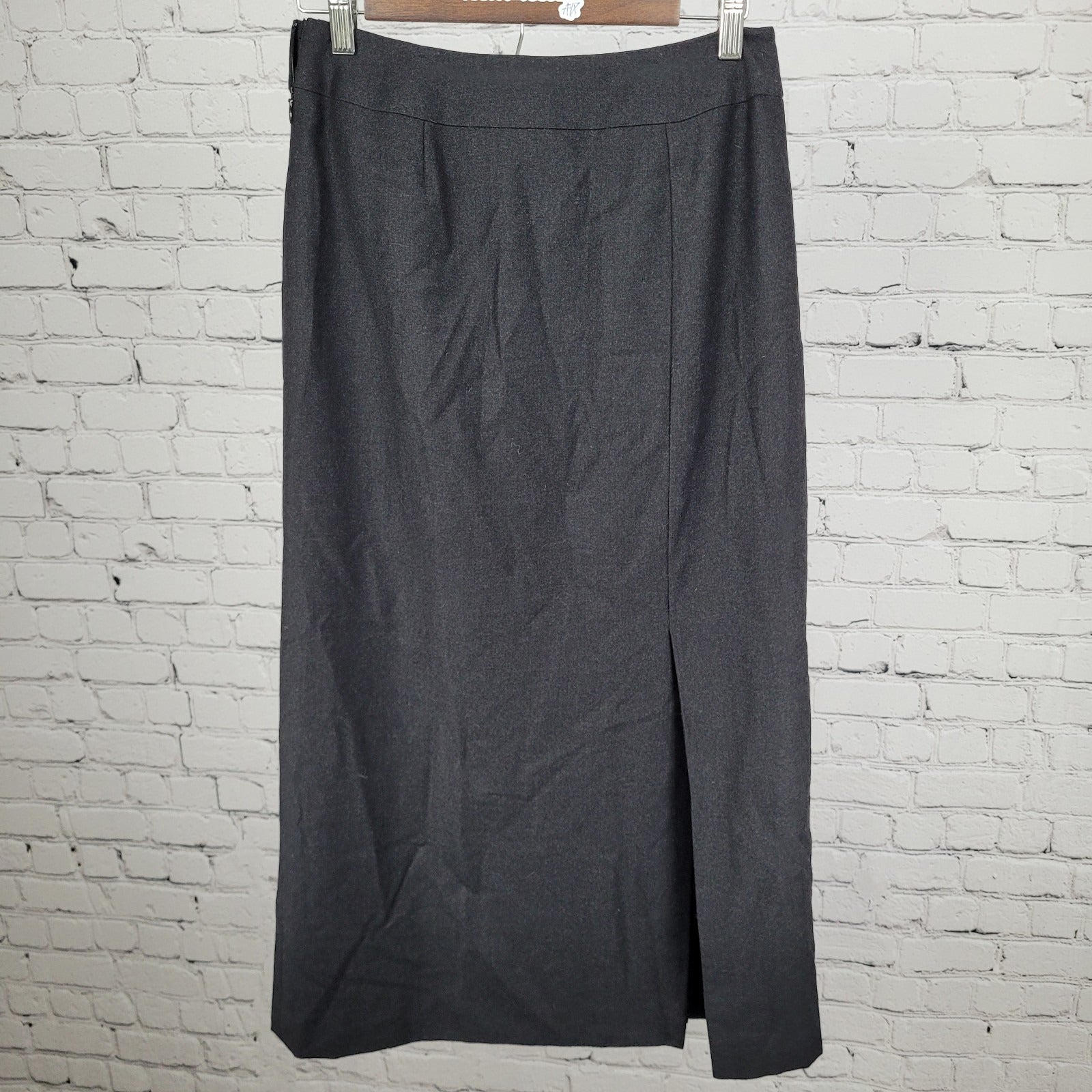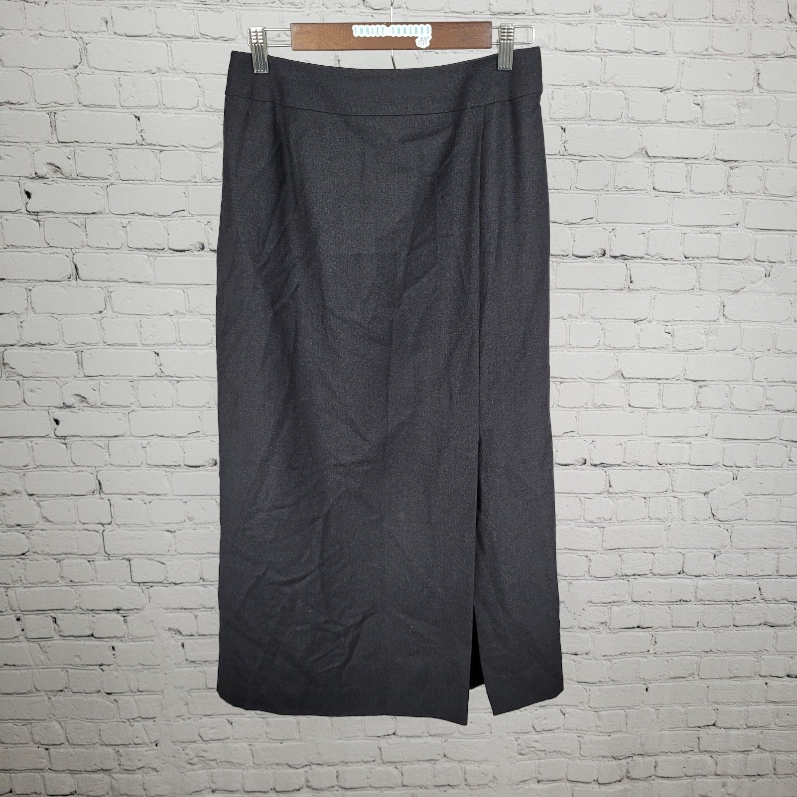Carlisle Grey 100% Wool Lined Side Zip Buttoned Slit Midi Straight Skirt Size 4