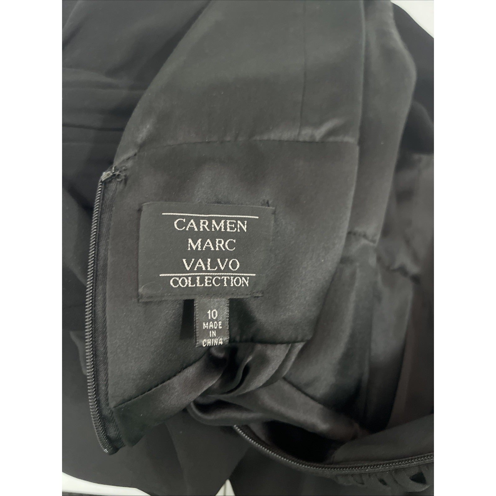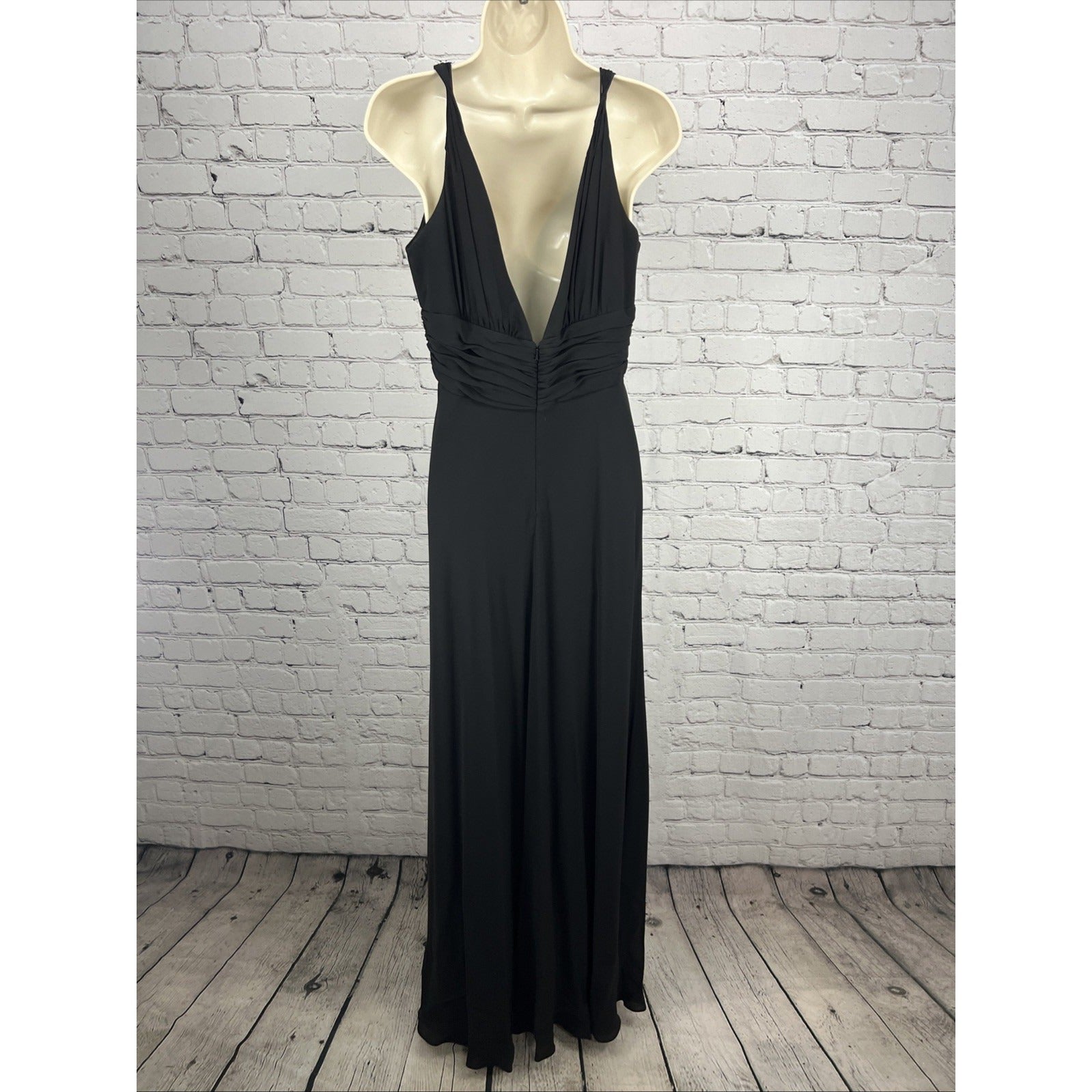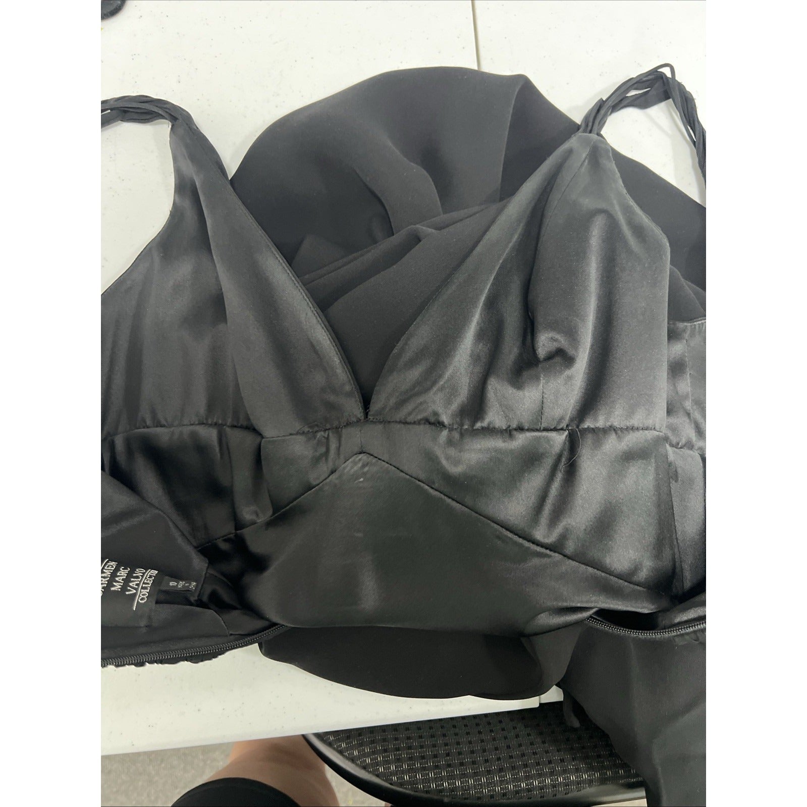 Carmen Marc Valvo Collection Black Silk Strappy Maxi Gown Long Mermaid Dress 10