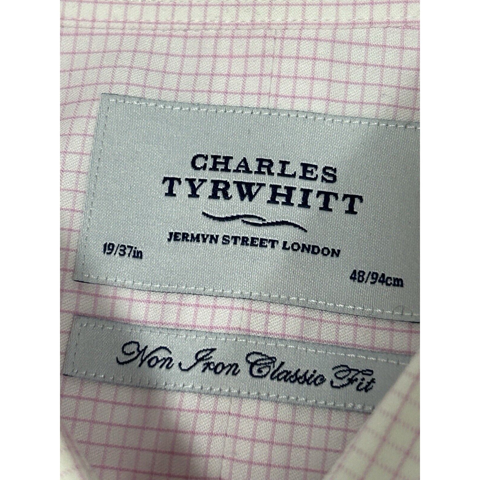 This Charles Tyrwhitt dress shirt is a stylish addition to any formal or workwear outfit. The light pink check pattern and embroidered accents add a touch of color and classic style. The shirt is made of 100% cotton and is machine washable for easy care.