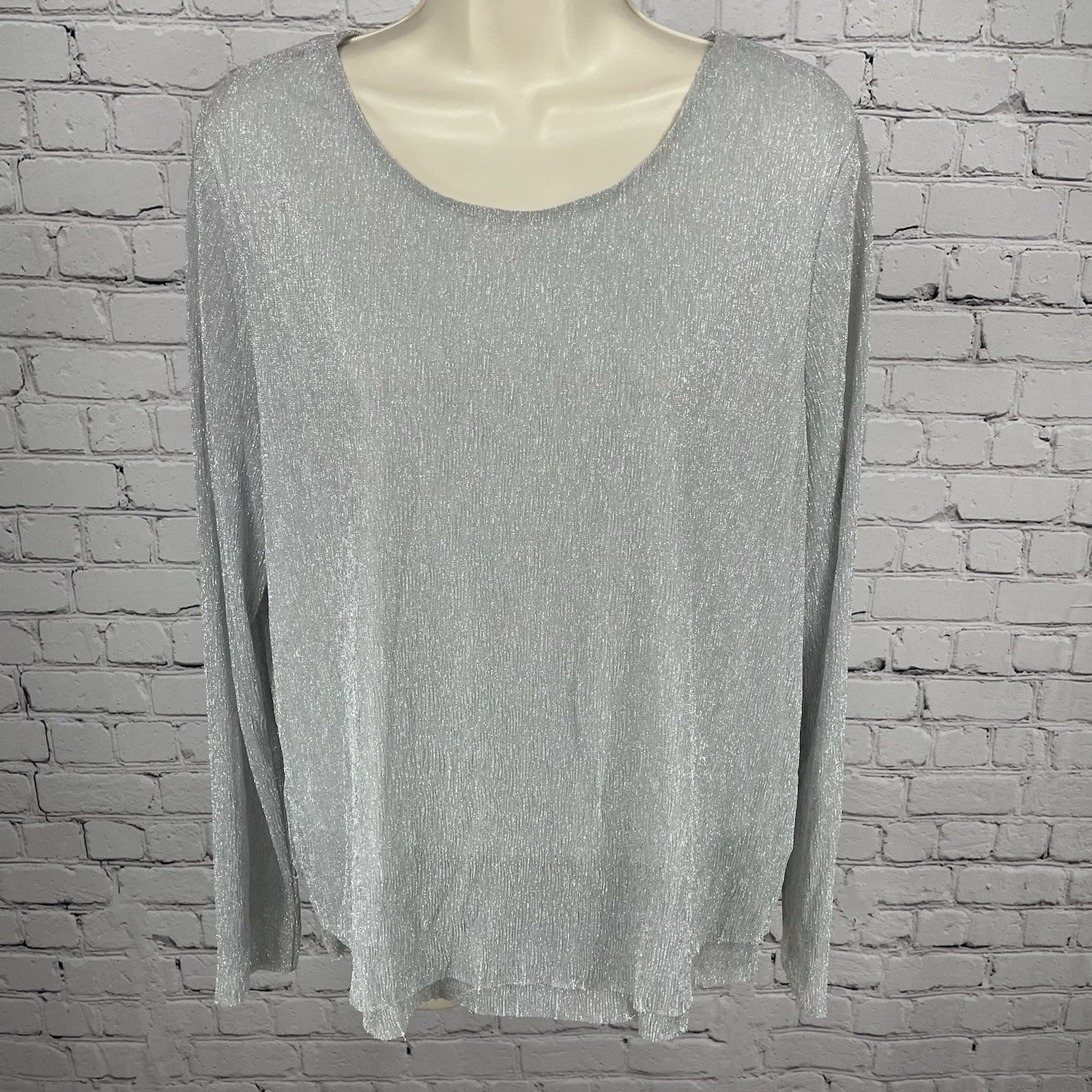 Chico’s Grey Metallic Shimmer Lightweight Lined Blouse Top Size 2 (US 12)